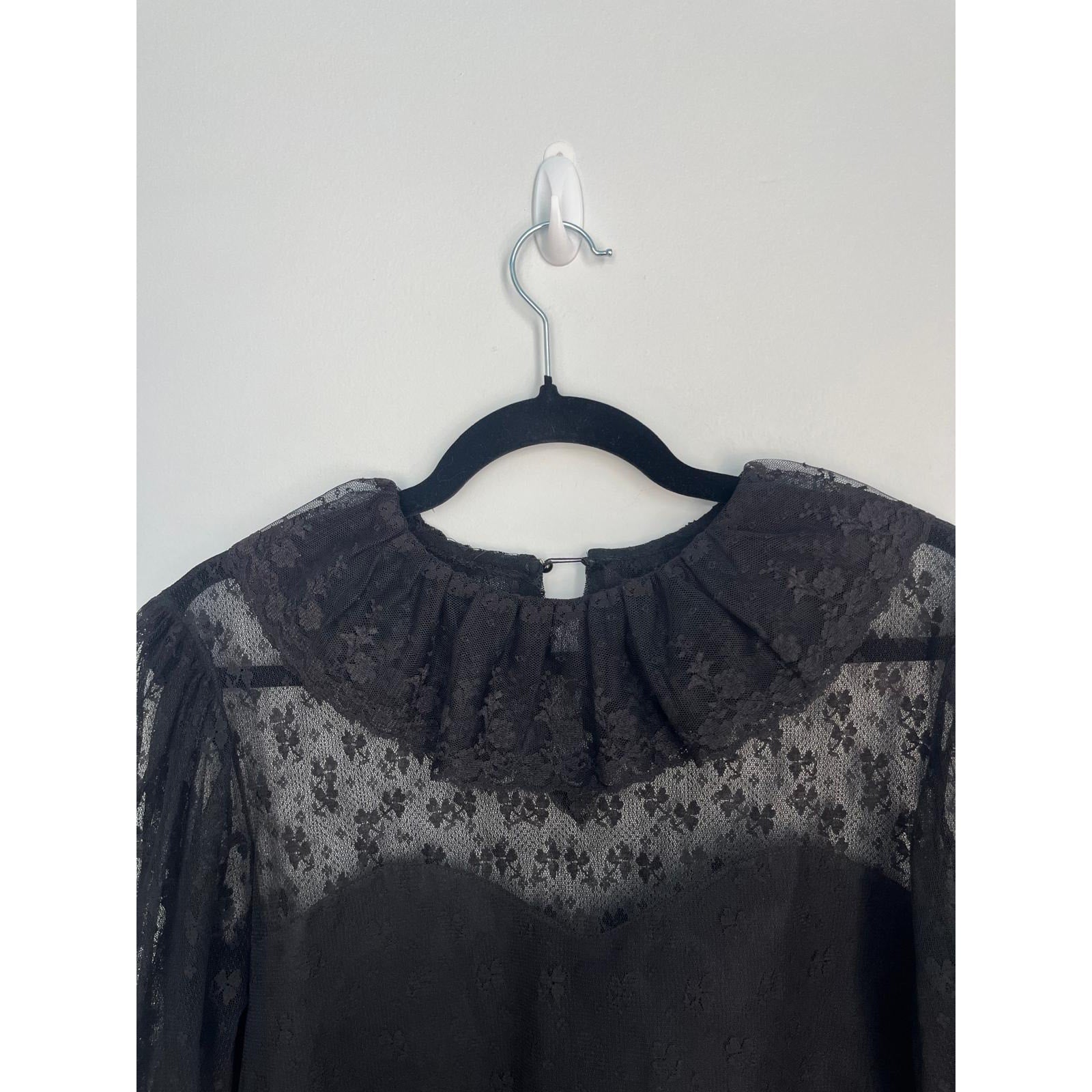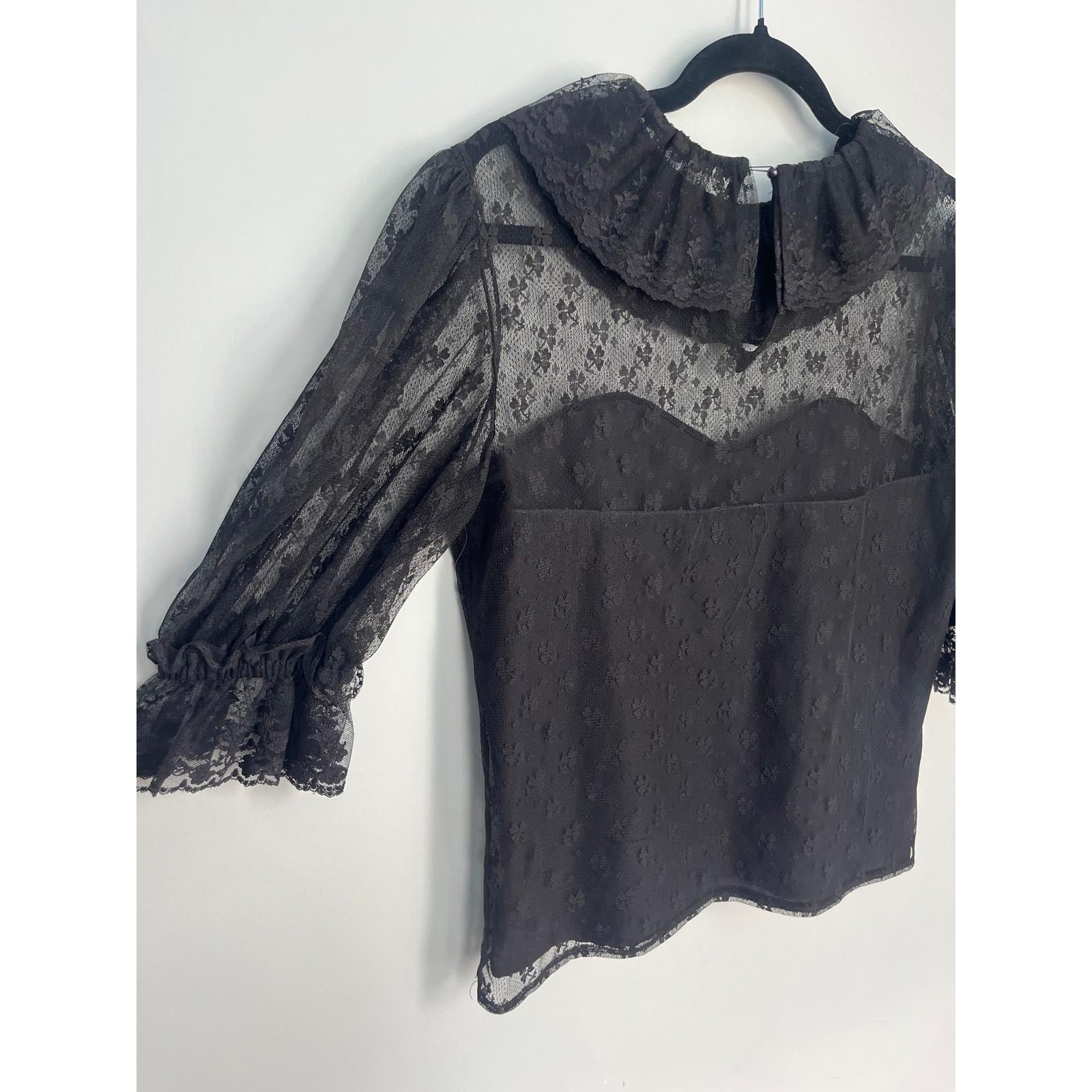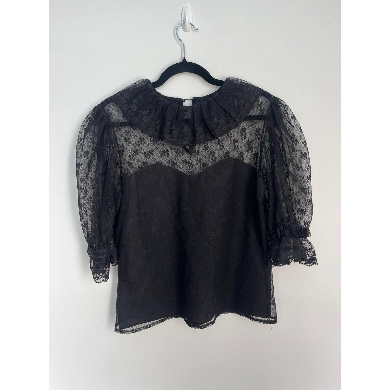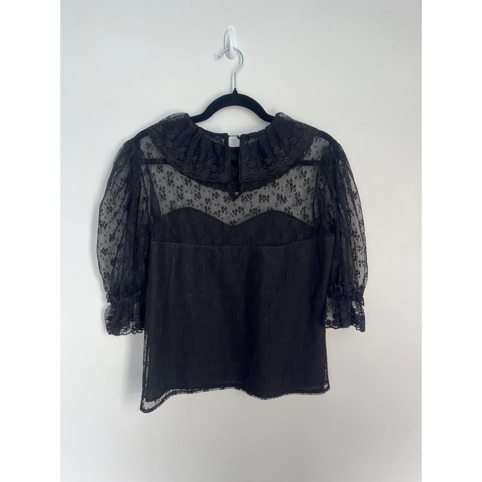 Jean for Joseph Le Bon Sheer Lace Blouse Women 8 Black Victorian Puff Sleeve