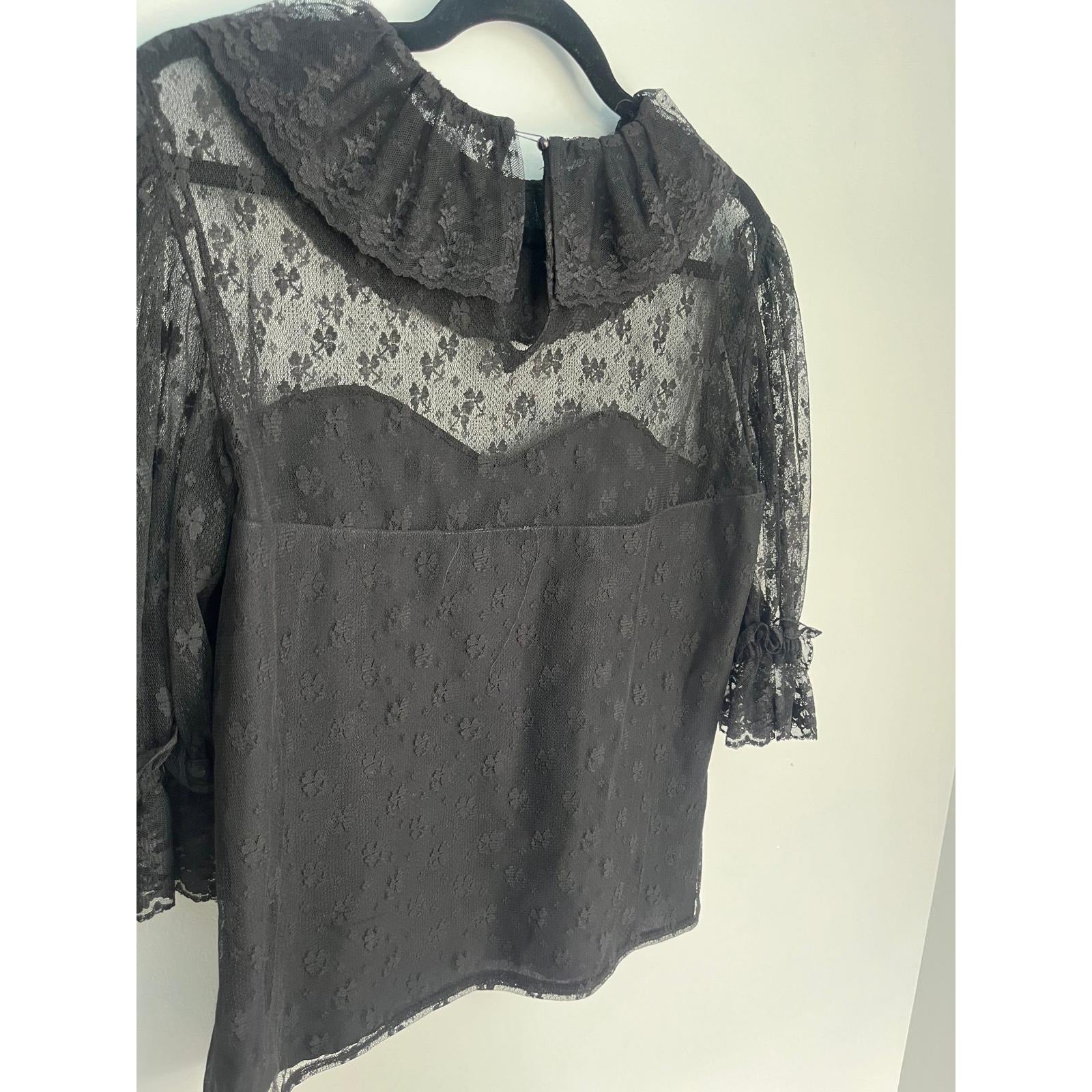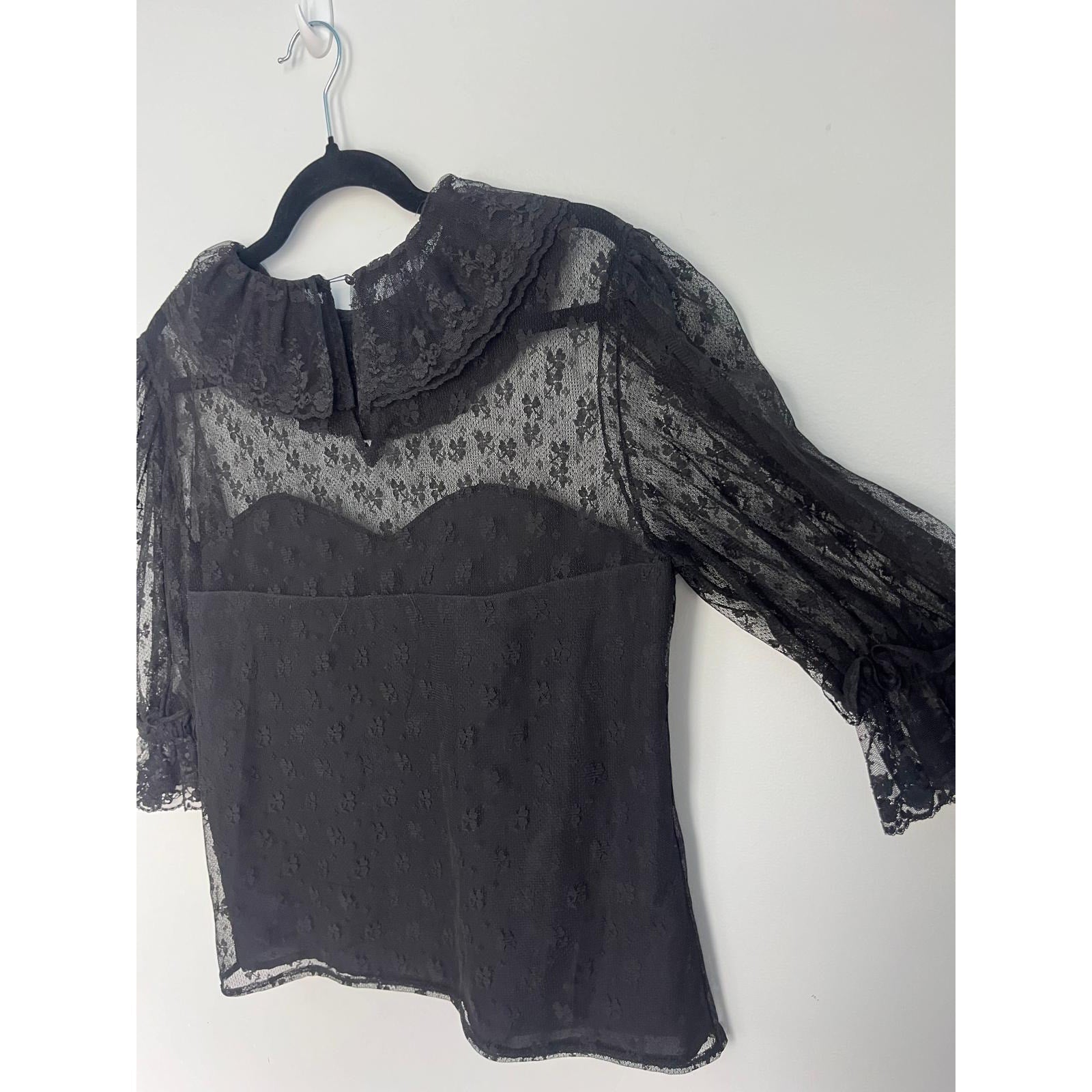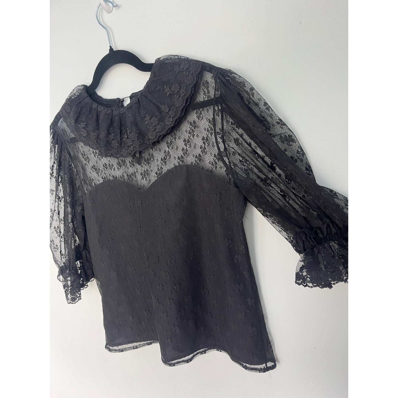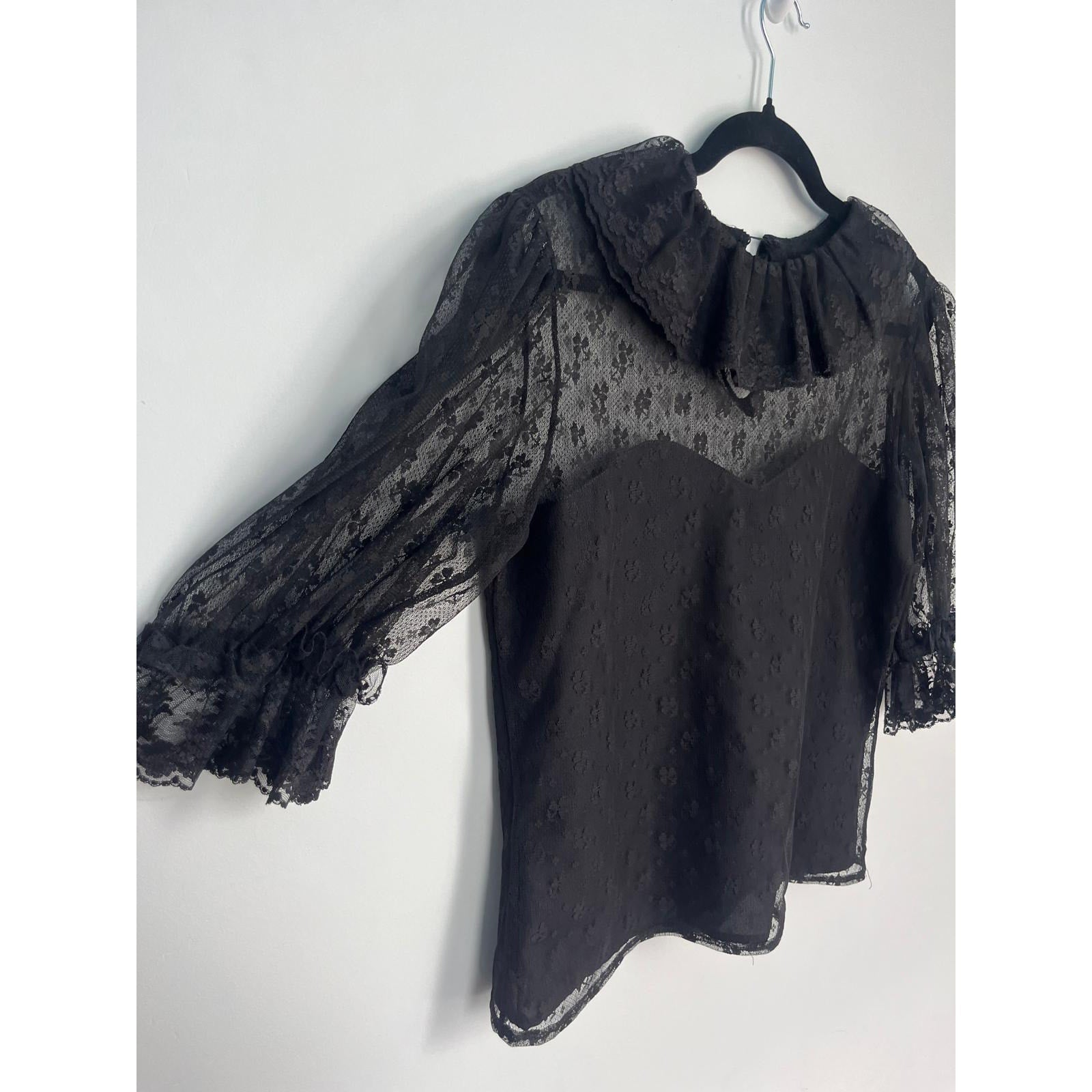 Jean for Joseph Le Bon Sheer Lace Blouse Women 8 Black Victorian Puff Sleeve