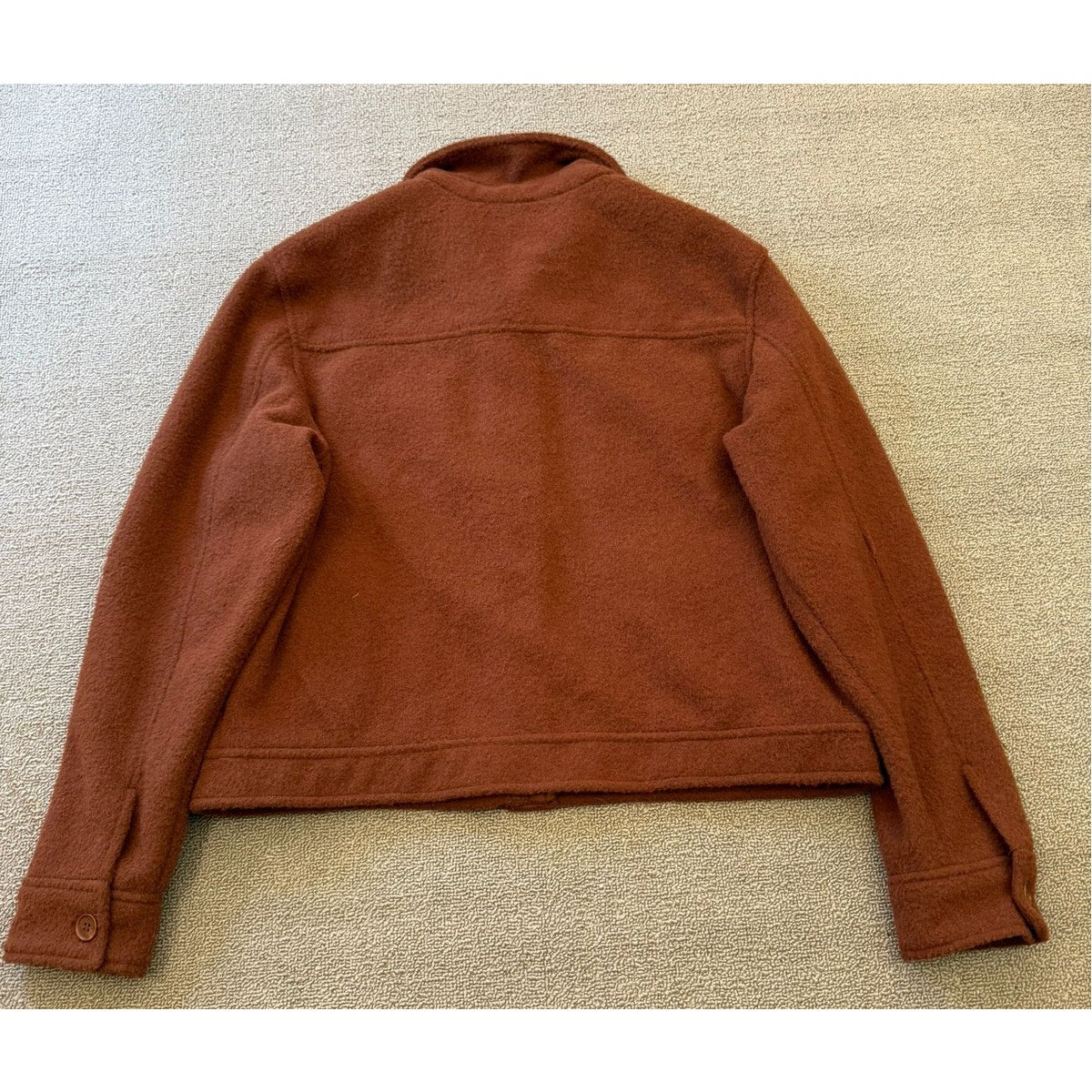 Cropped button‑front wool‑blend jacket by Joie in a rich chocolate‑brown tone. Features include a classic collar, front flap pockets, and soft textured finish—offers elevated cozy style and seamless layering for fall. Cropped at the hip for a flattering, modern silhouette.
