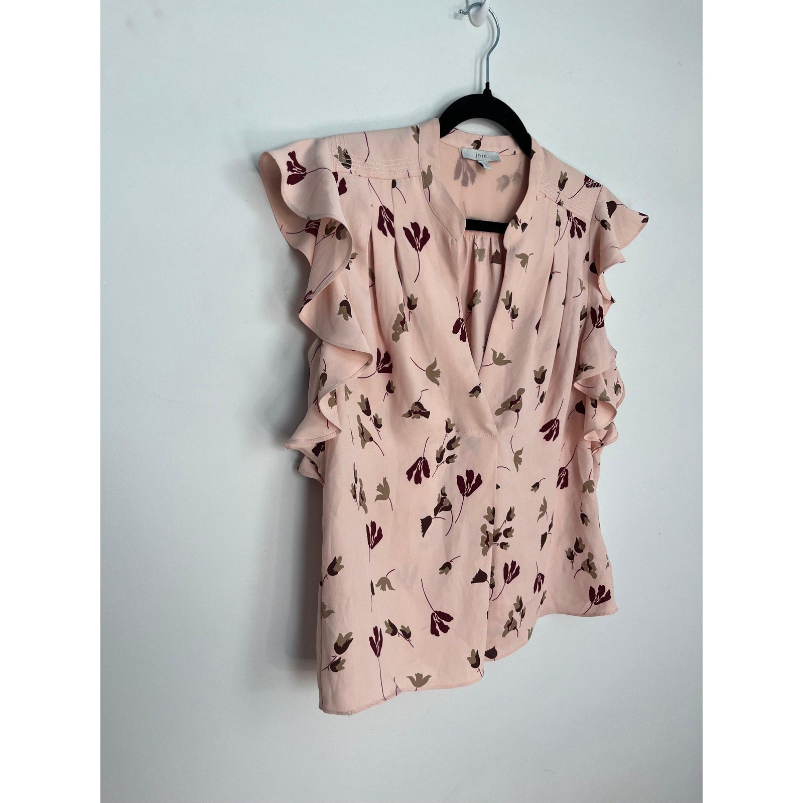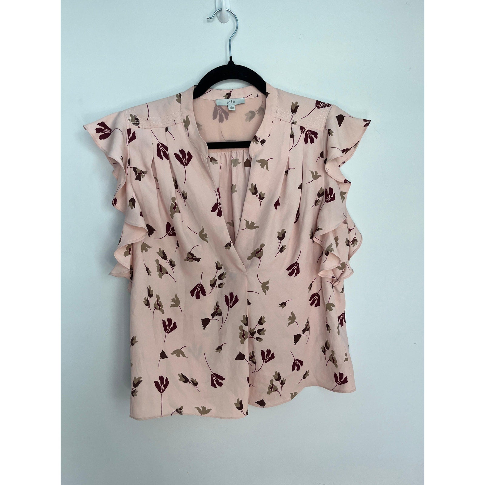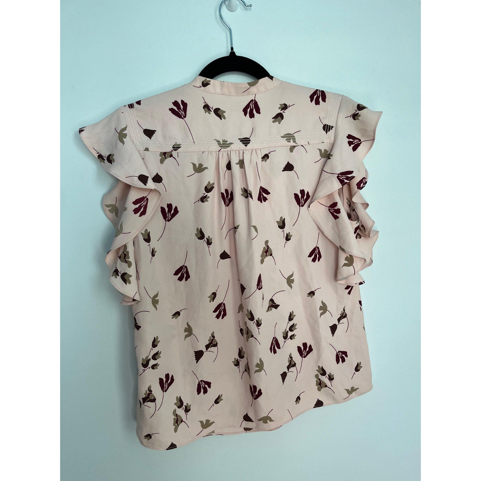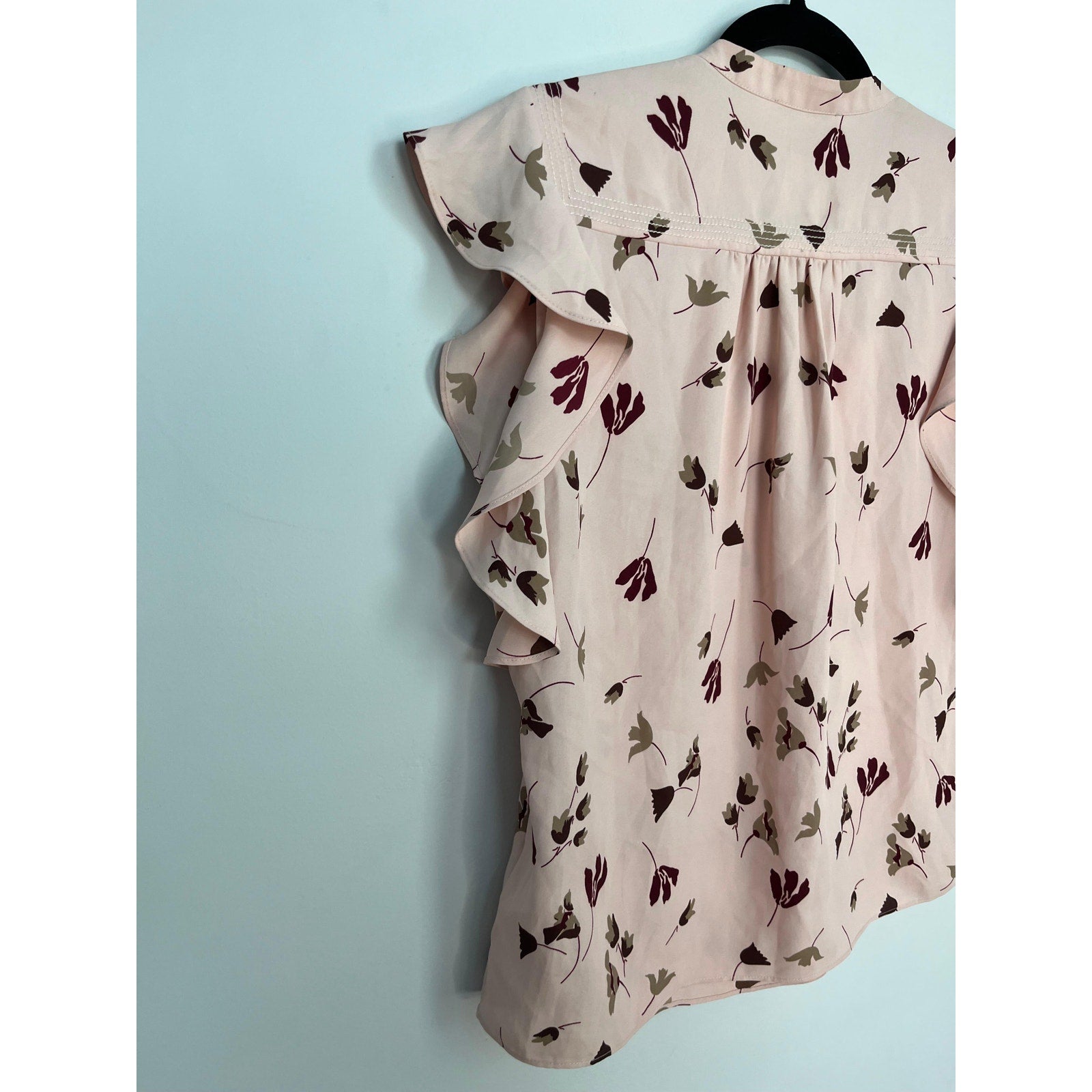 Joie Floral Ruffle Sleeve Blouse Women Small Pink Burgundy Leaf Print Top
