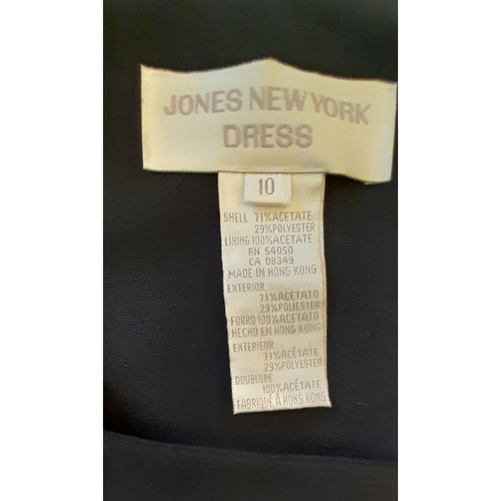 A classic little black dress from Jones New York featuring structured short sleeves, a fitted bodice, flattering A‑line skirt, and full acetate lining—sleek and timeless.