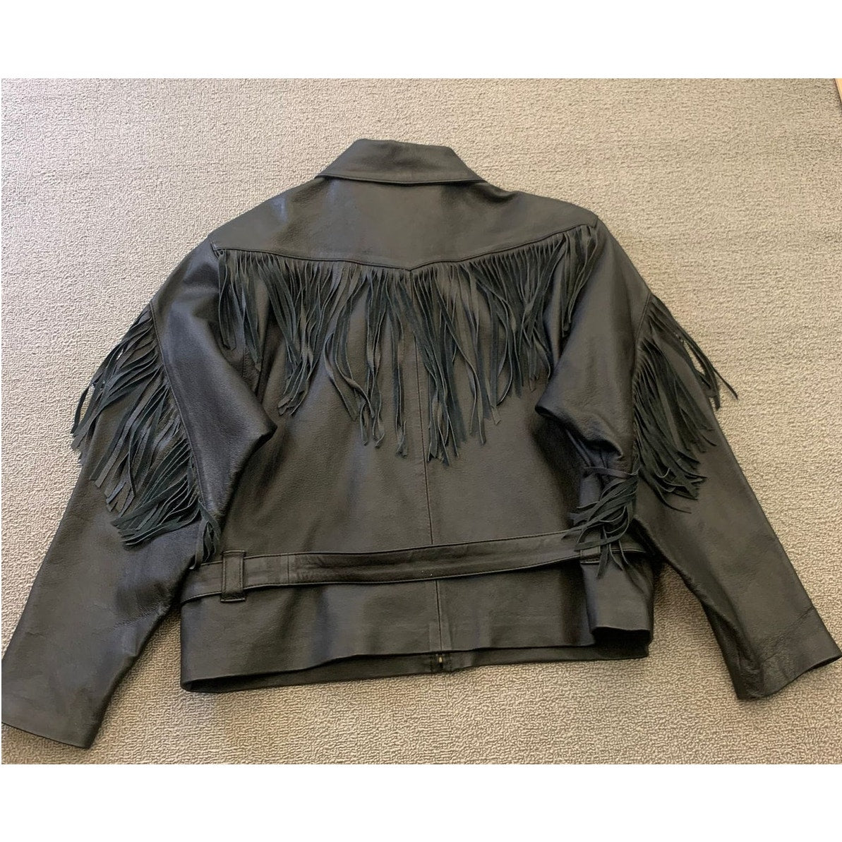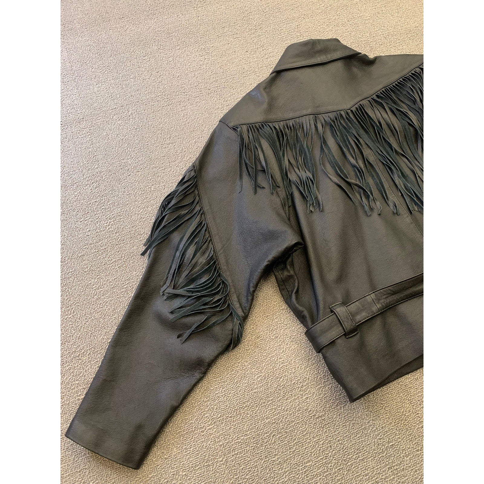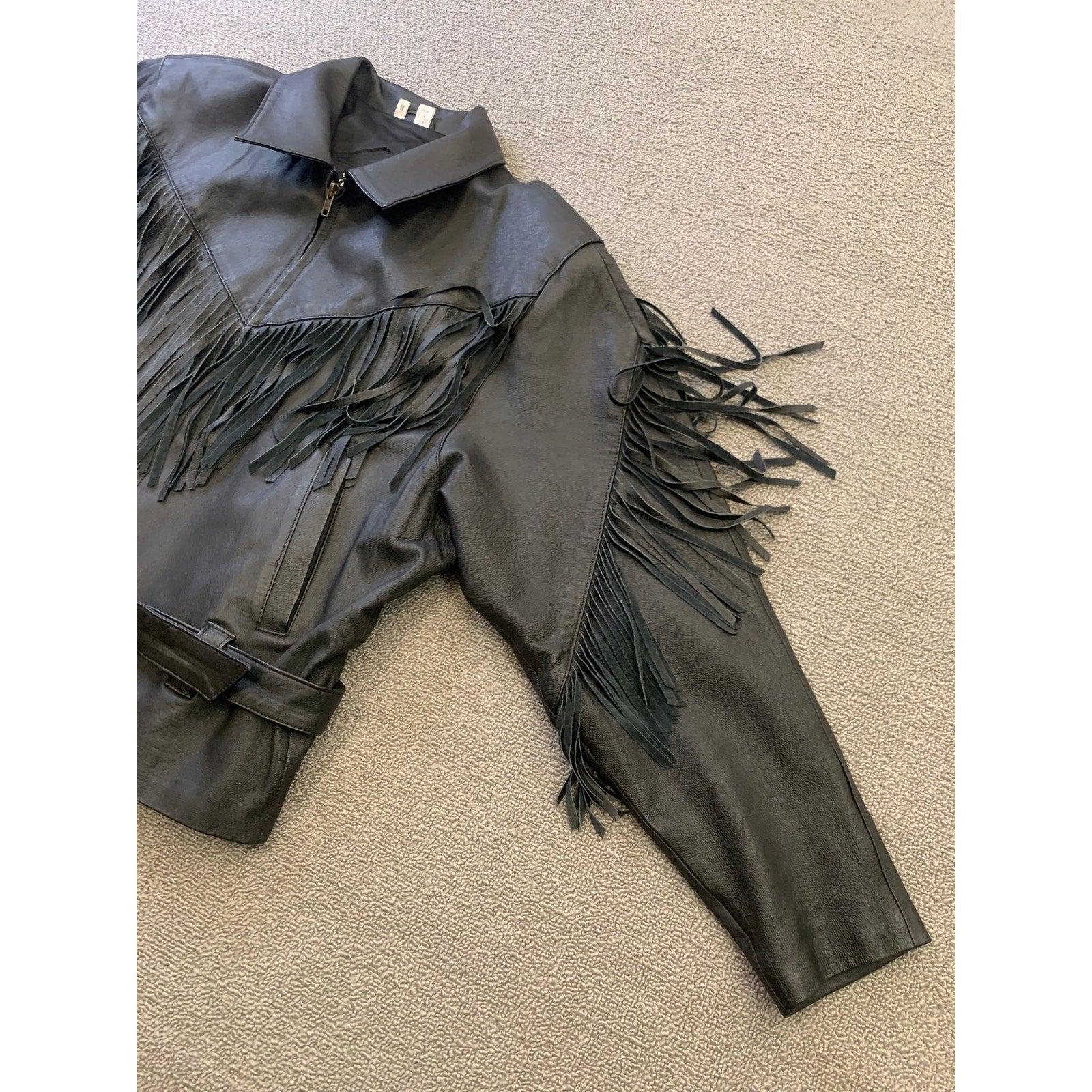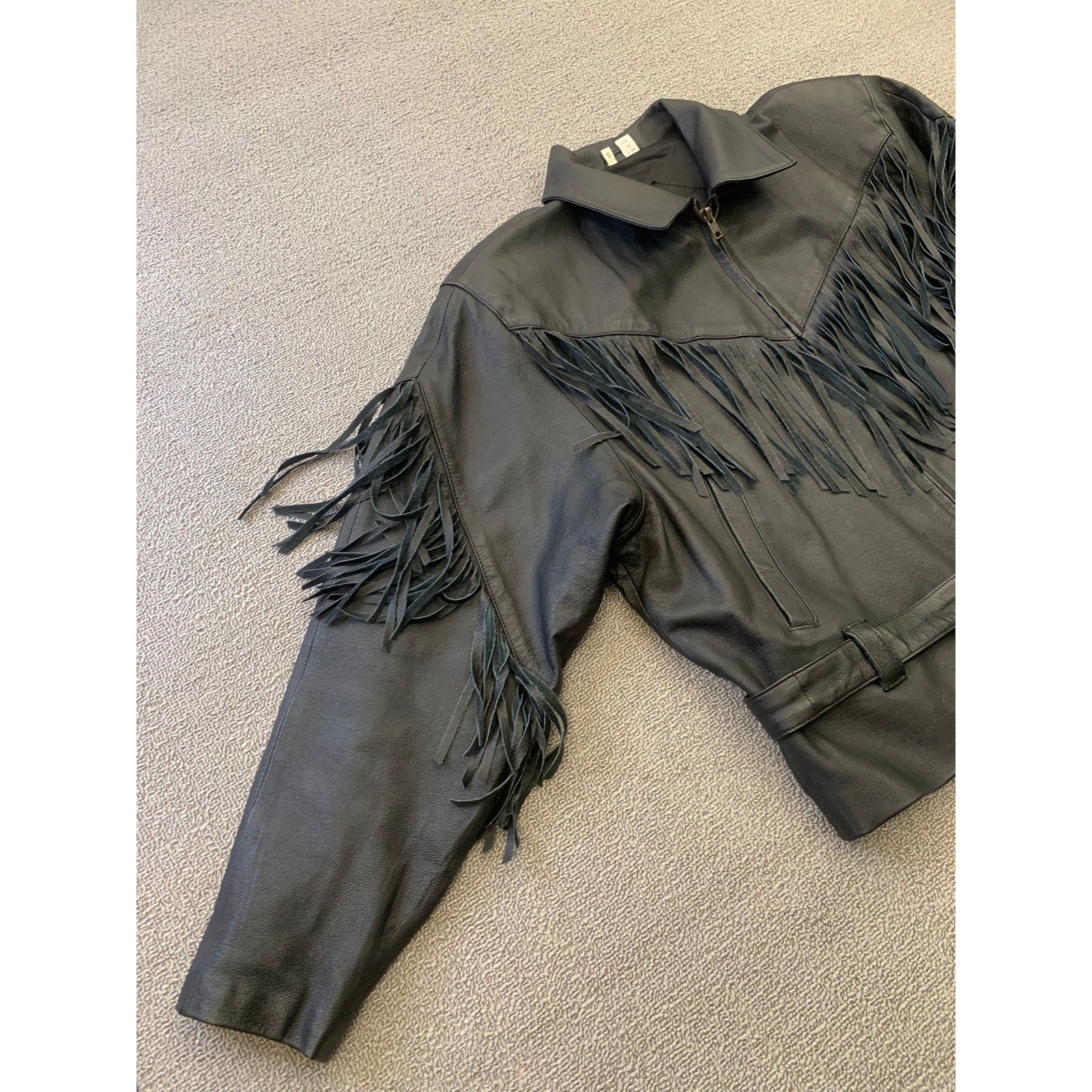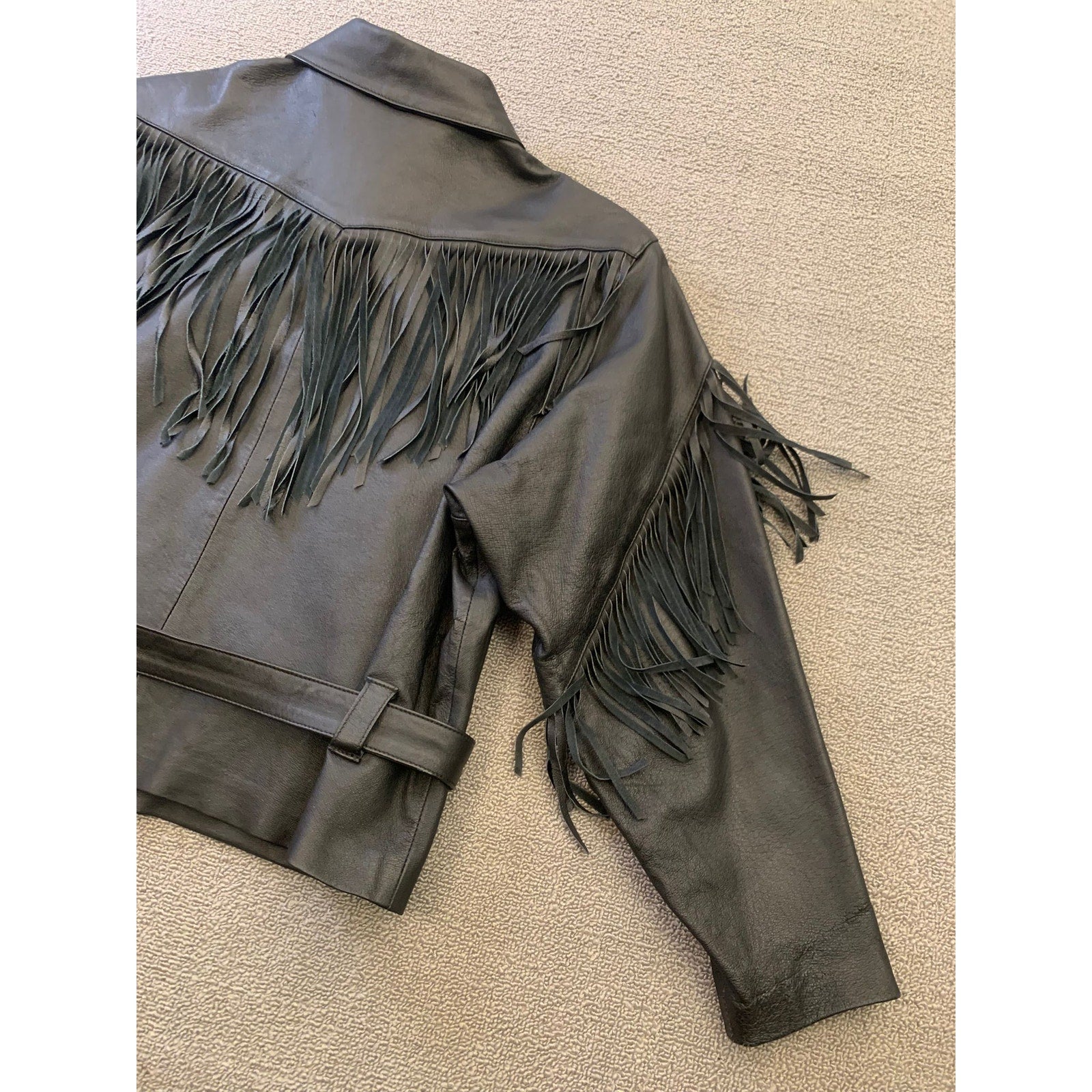 JUST JOSHUA Women's Small Black Leather Fringe/Biker Jacket