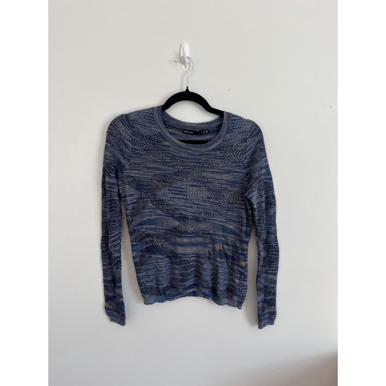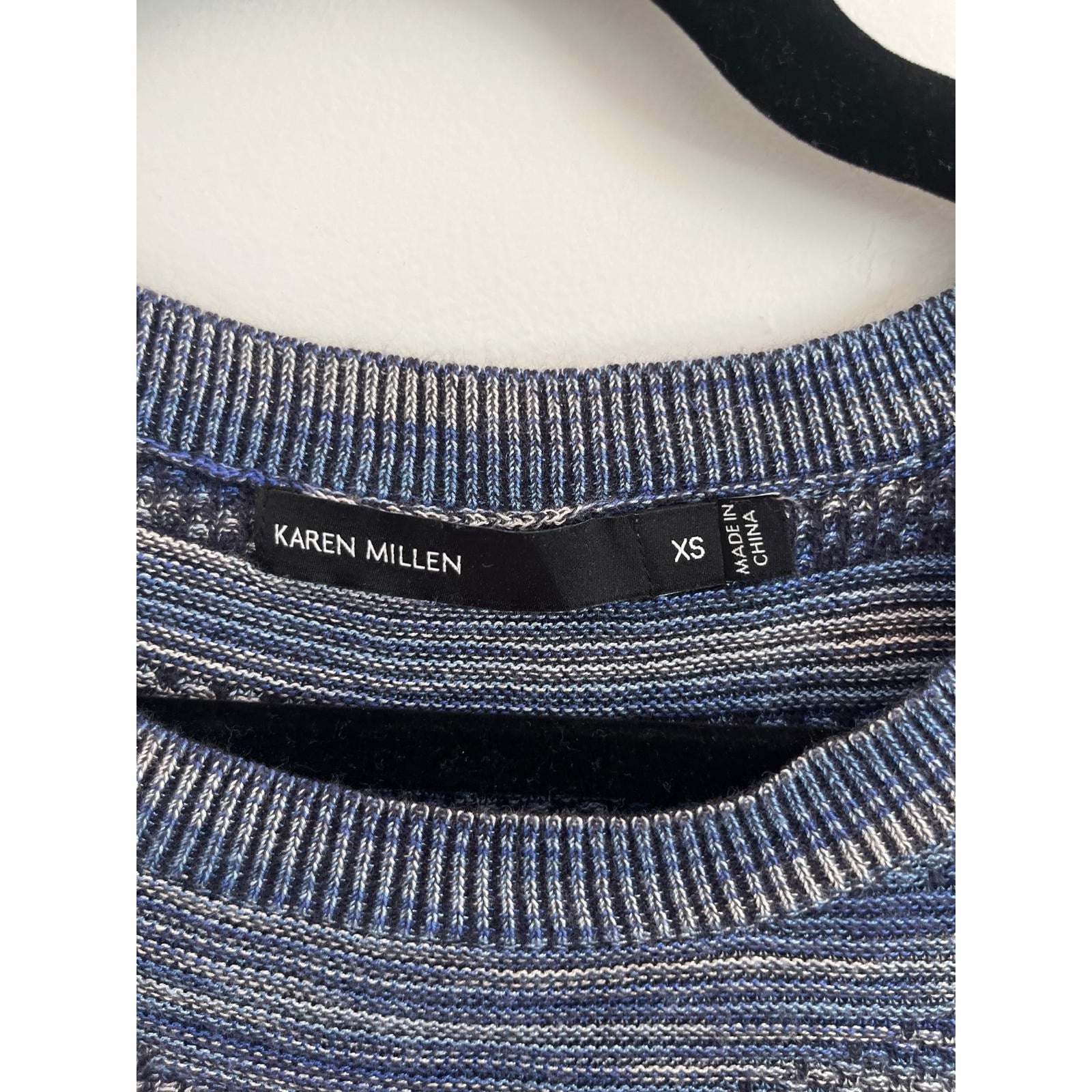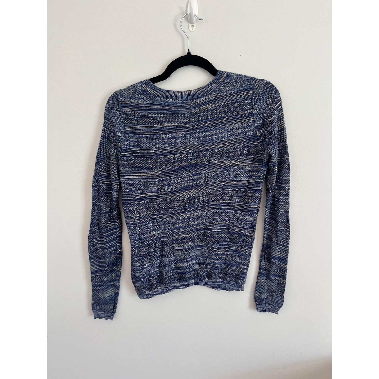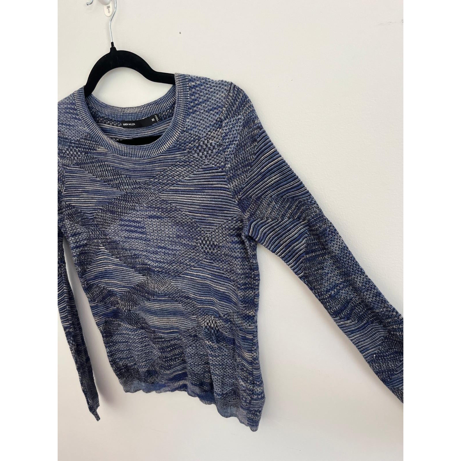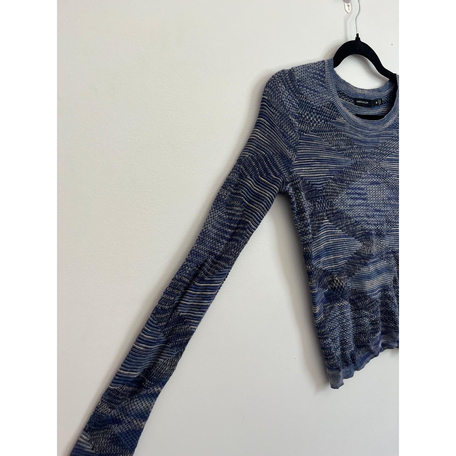 Karen Millen Knit Sweater Women XS Blue Textured Striped Pullover Lightweight