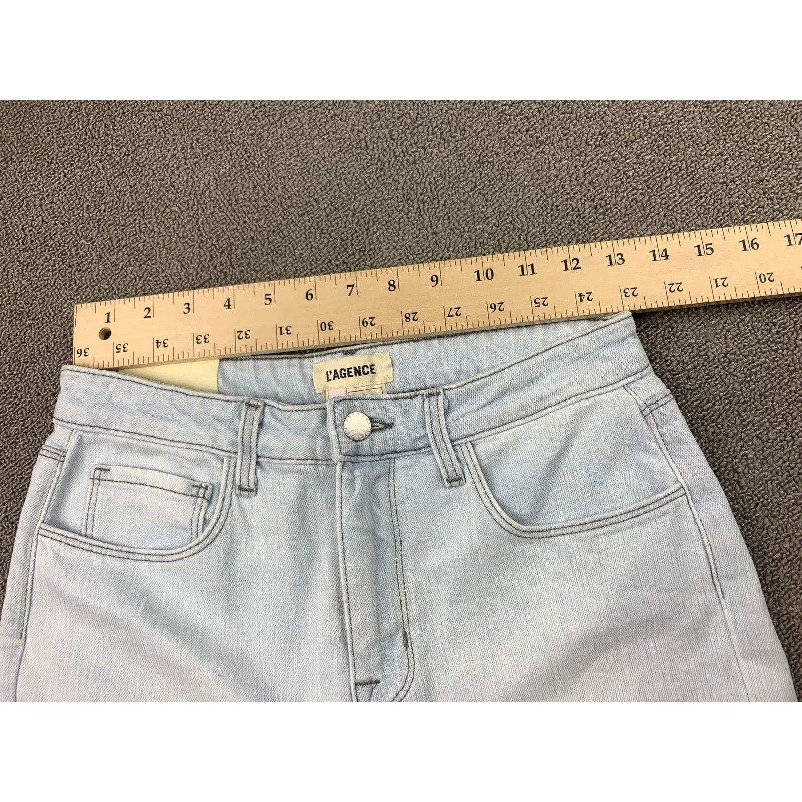 Premium L’AGENCE denim—light wash with intentional knee distressing and dramatic frayed raw hems. Modeled after the Ruth straight-leg fit, these jeans combine edgy streetwear flair with signature, structured quality. High-rise silhouette with a relaxed leg from knee down.