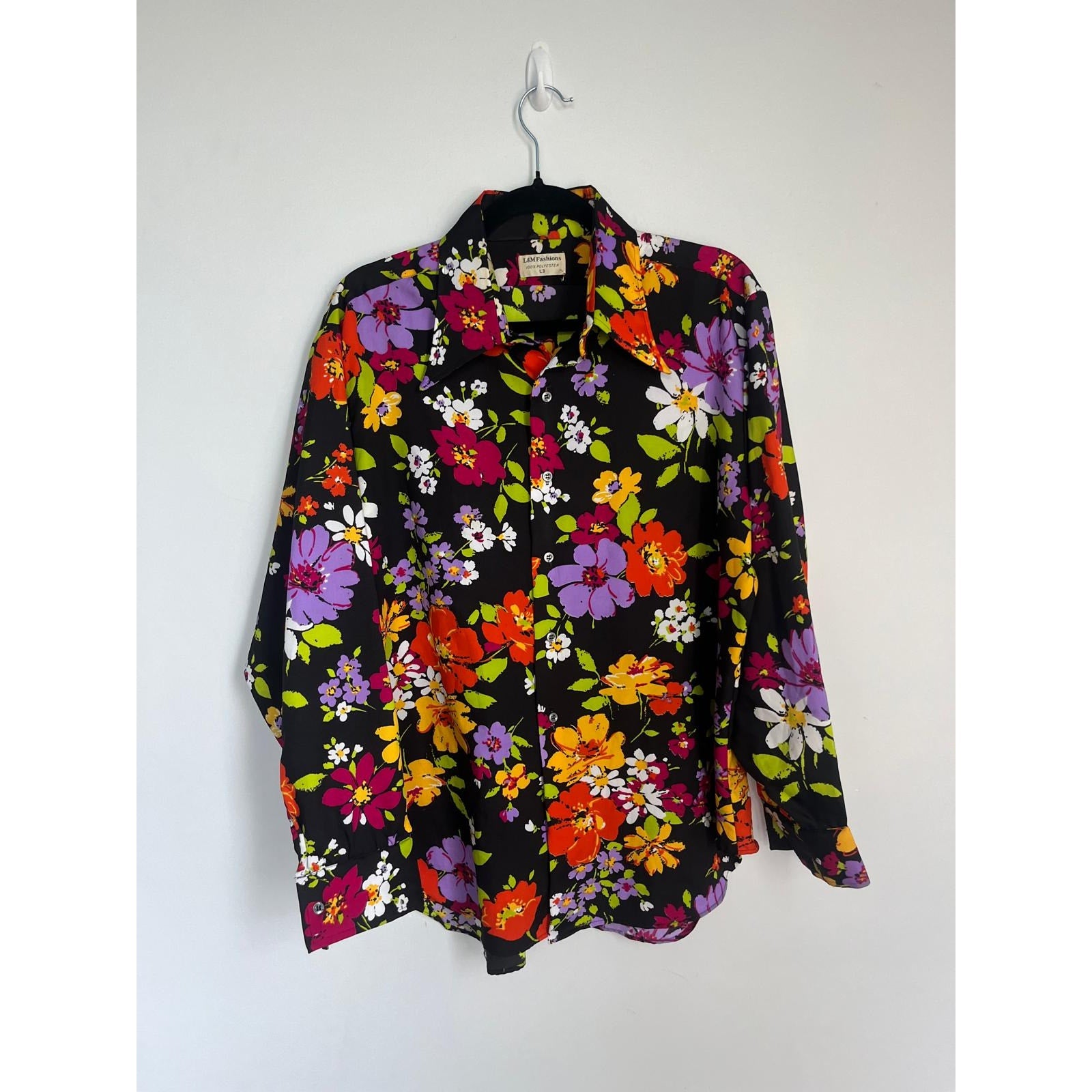 L&M Fashions Floral Shirt Men L Multicolor Long Sleeve Button Up 70s Style