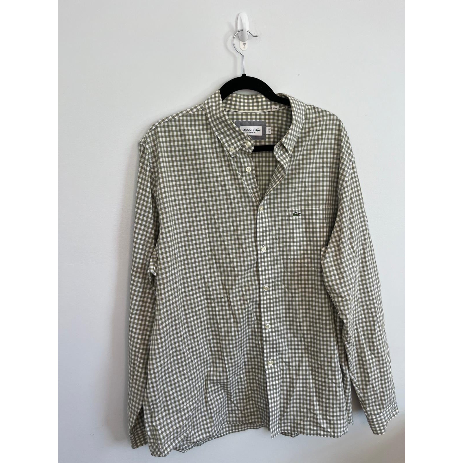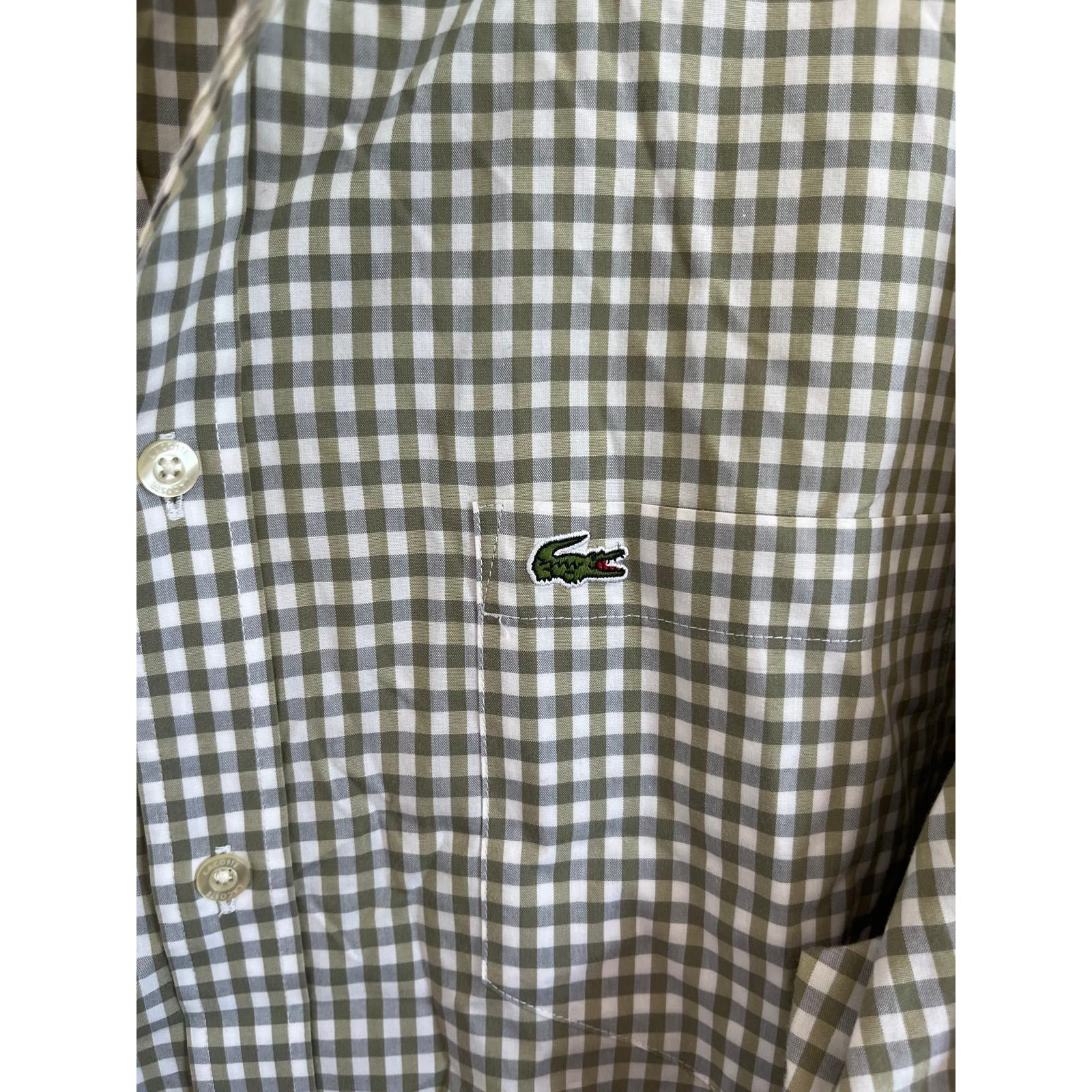 Lacoste Button Down Shirt Men 2XL Green White Check Long Sleeve Casual