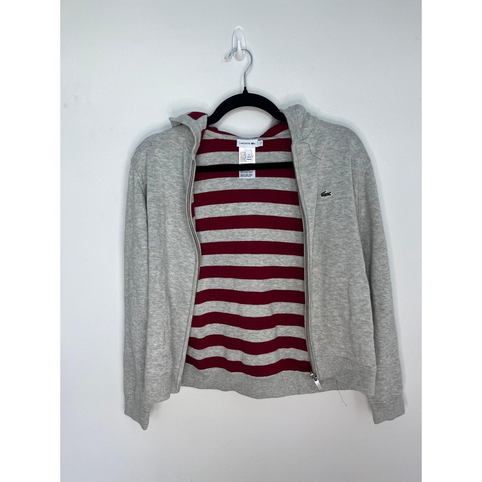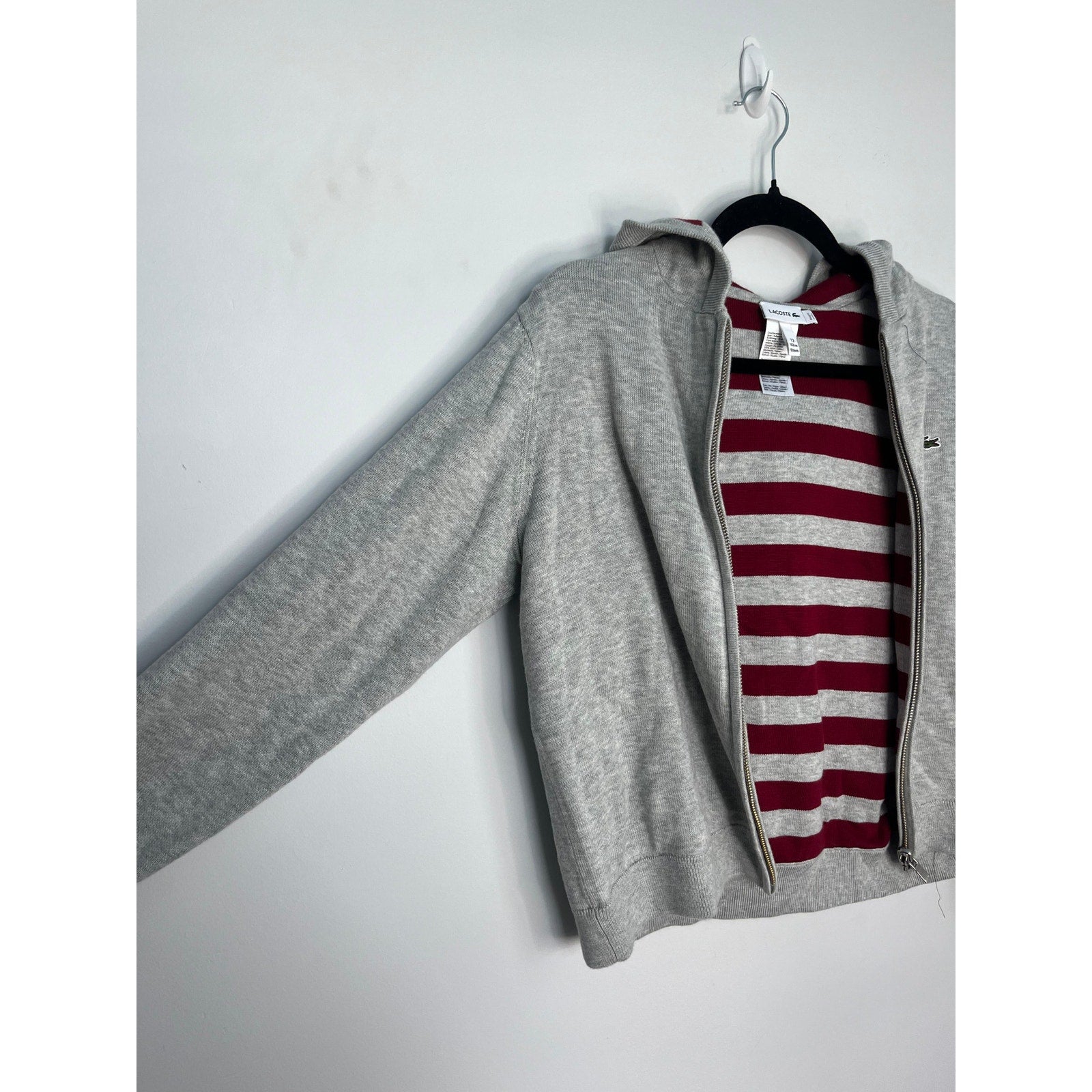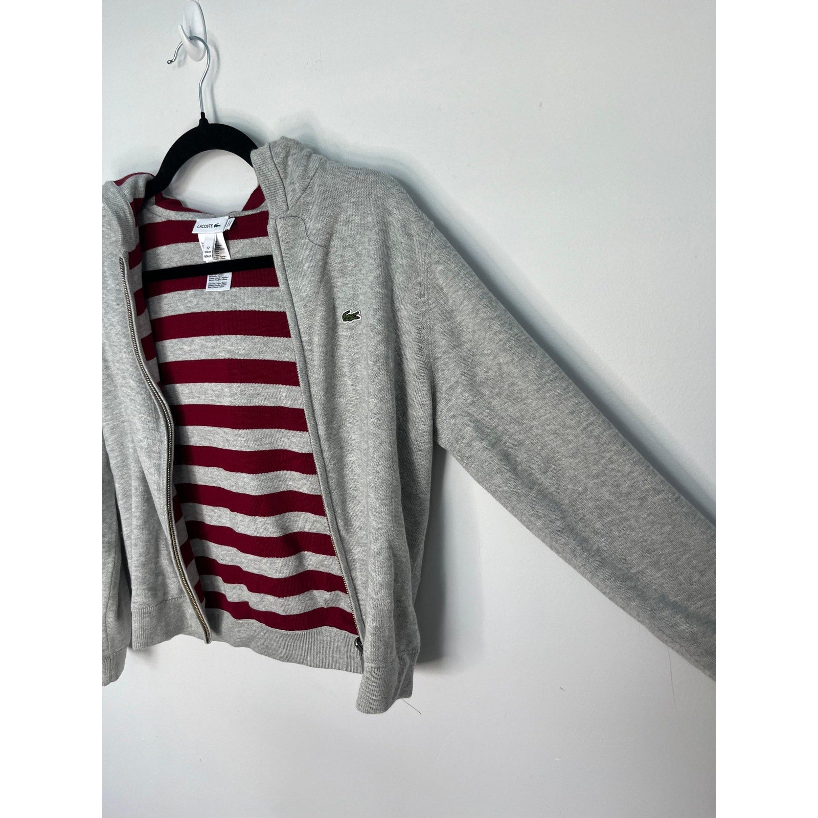 Lacoste Zip Hoodie Teen/Boy Size 12 Grey Red Cropped Cotton Blend Lightweight