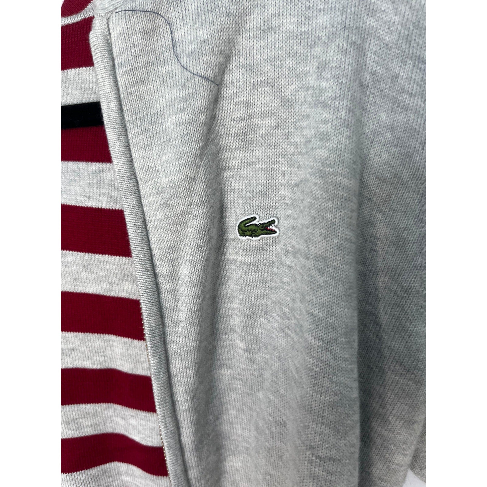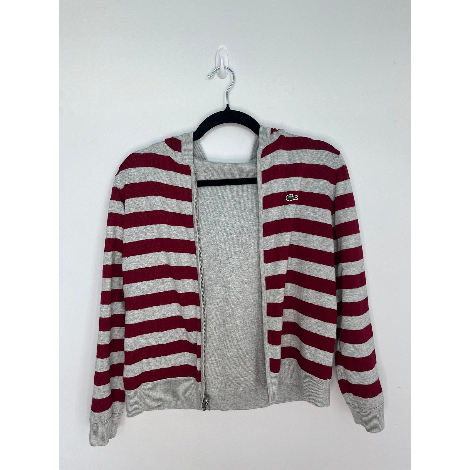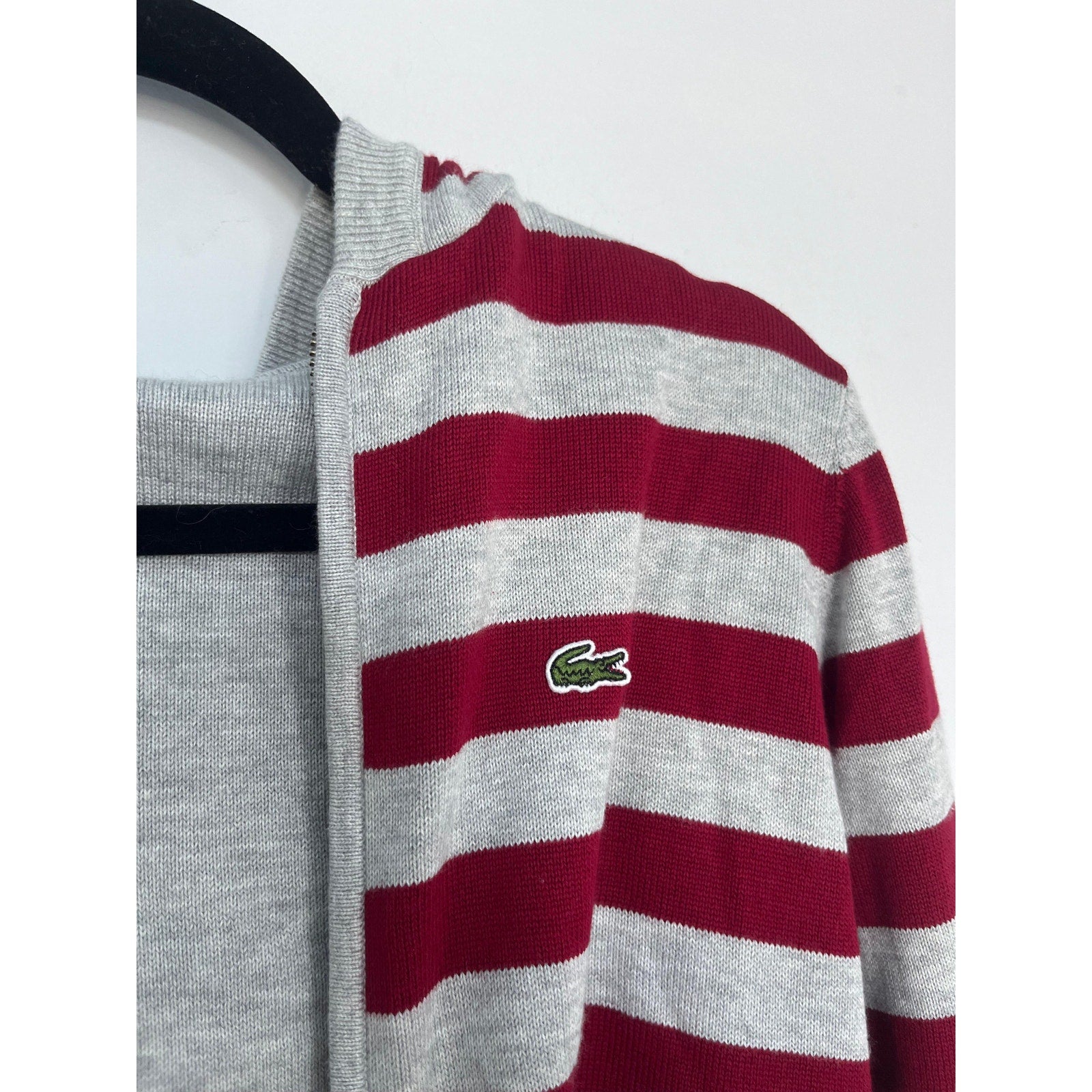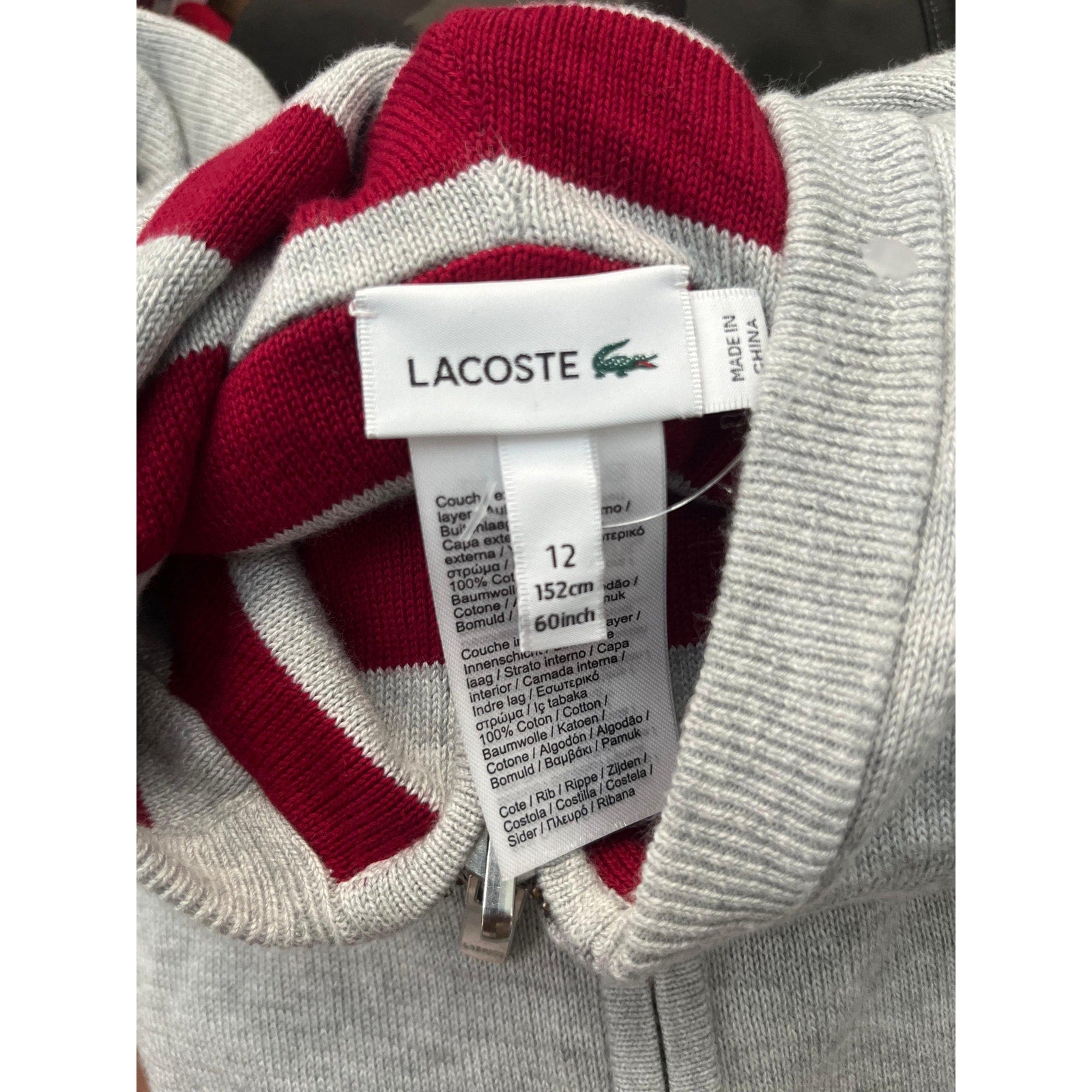 Lacoste Zip Hoodie Teen/Boy Size 12 Grey Red Cropped Cotton Blend Lightweight