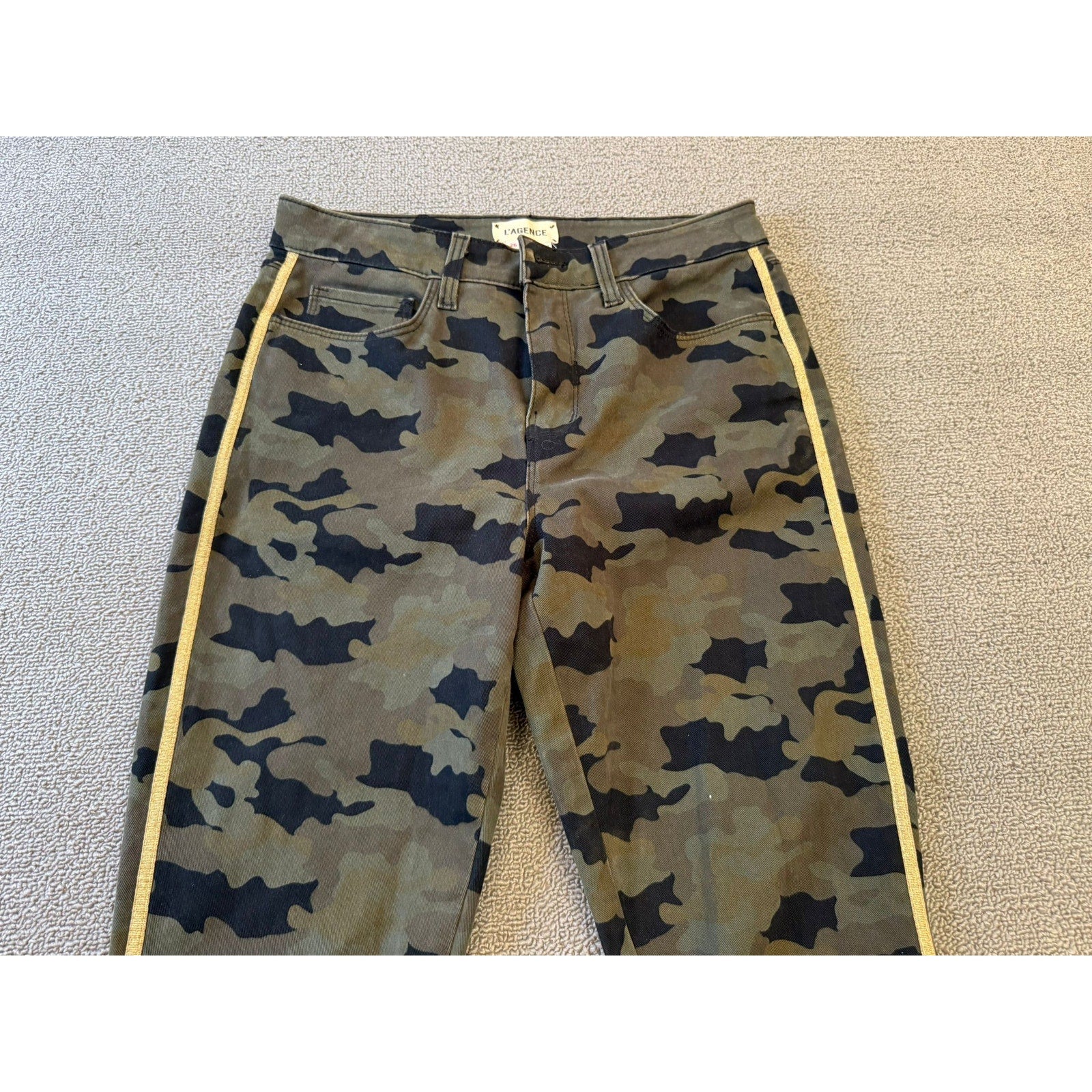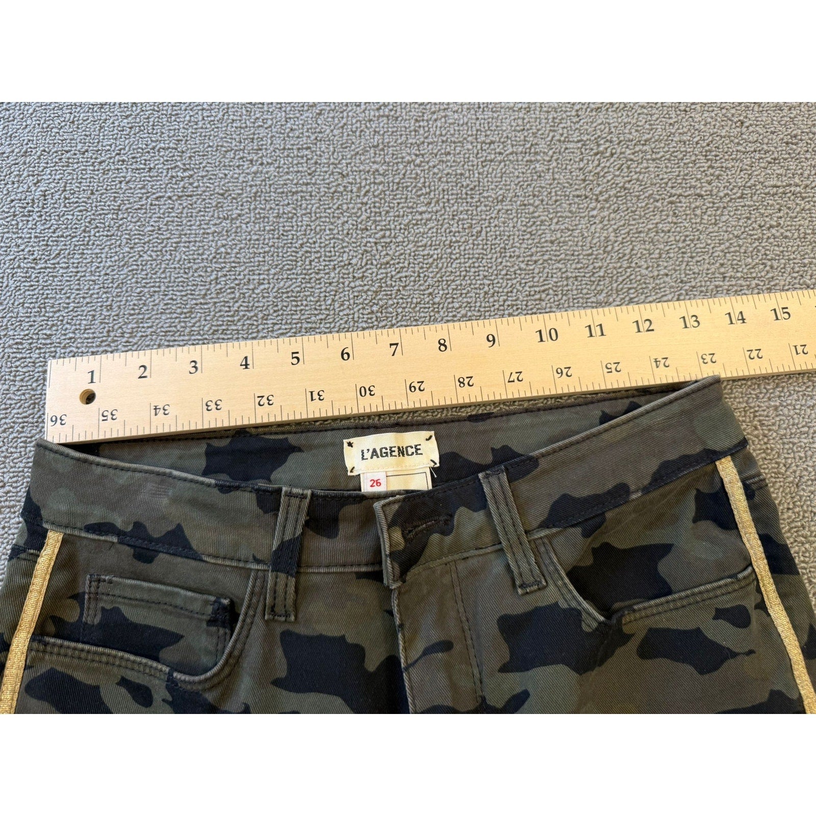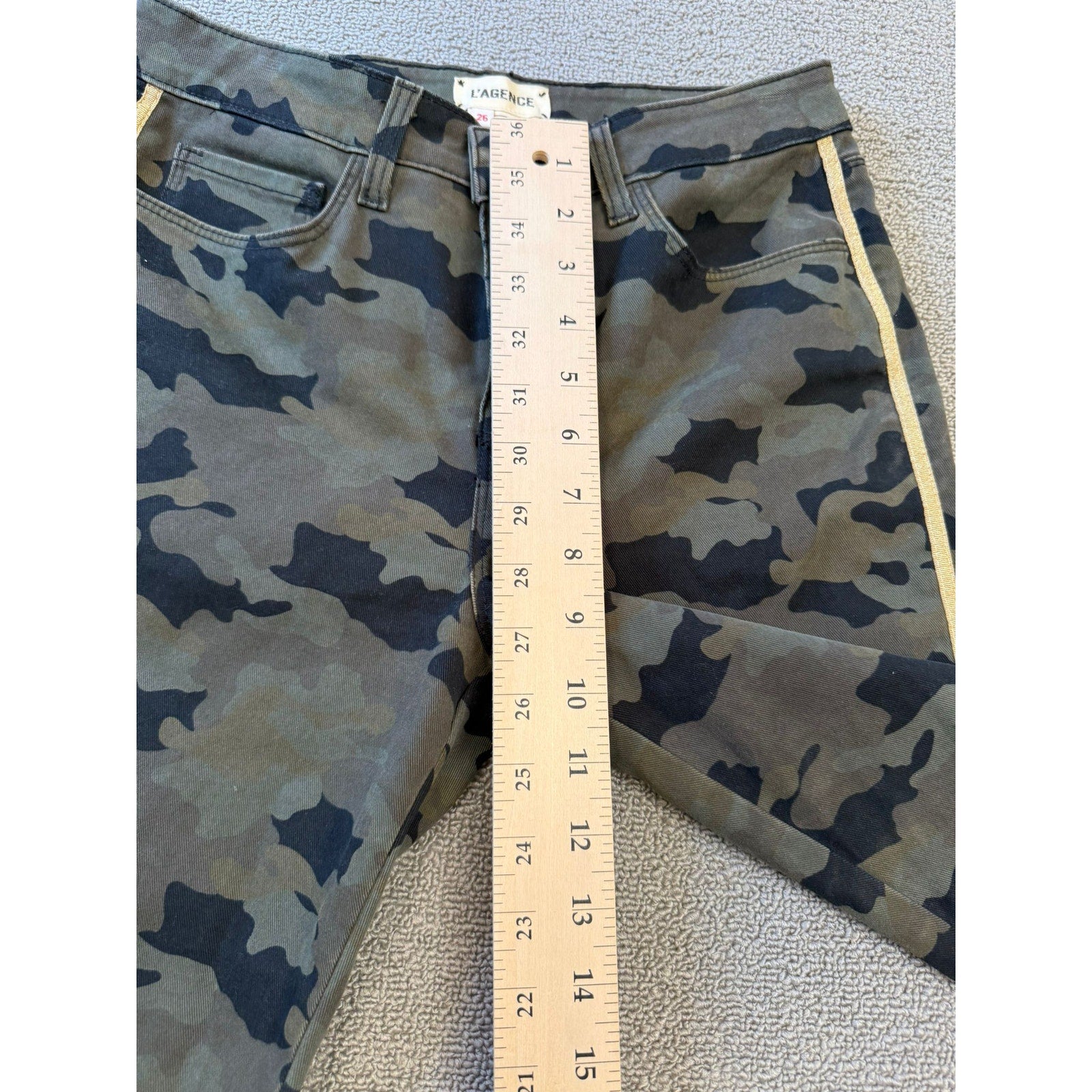 L'AGENCE Women's Camouflage Skinny Jeans 26 Green Black Yellow Side Stripe