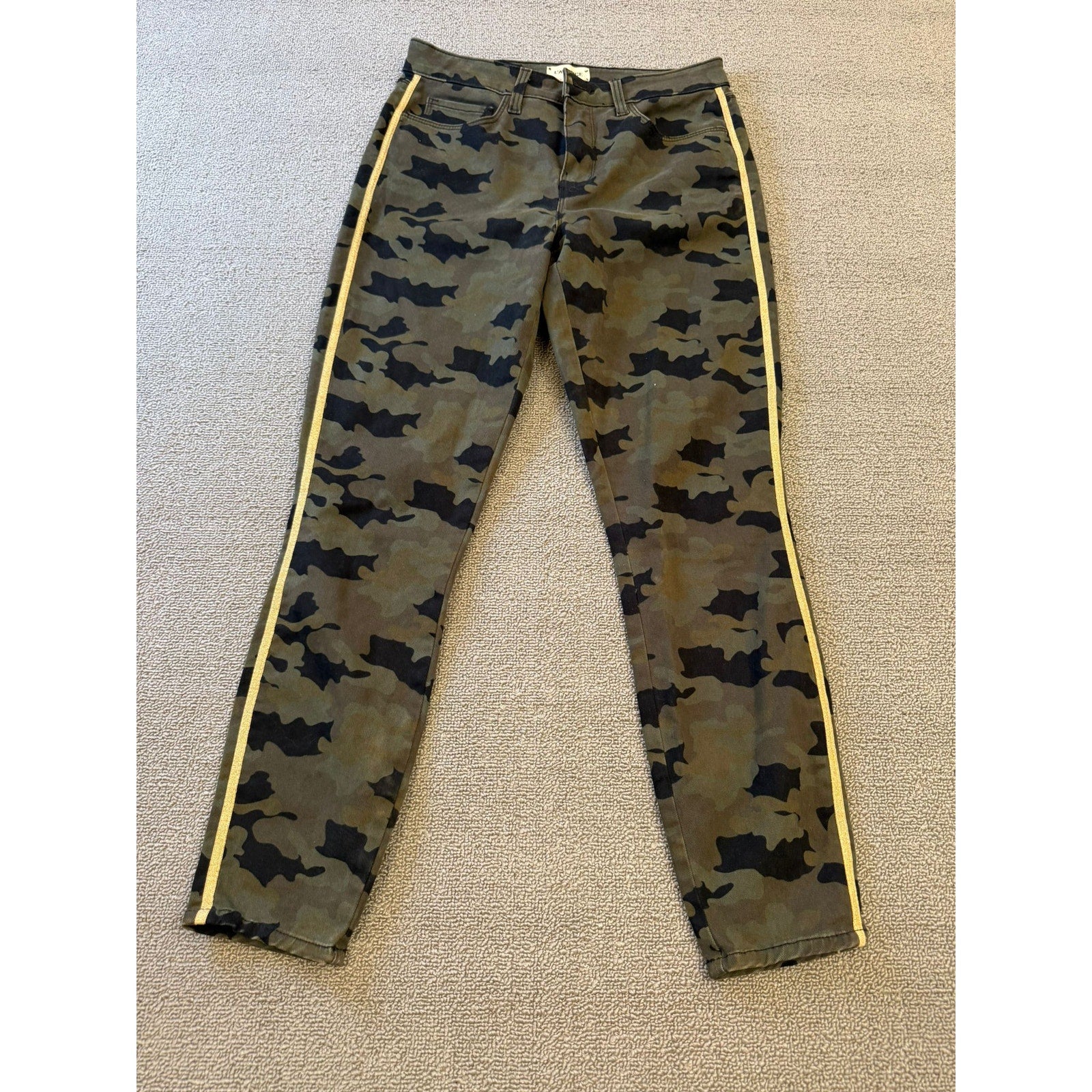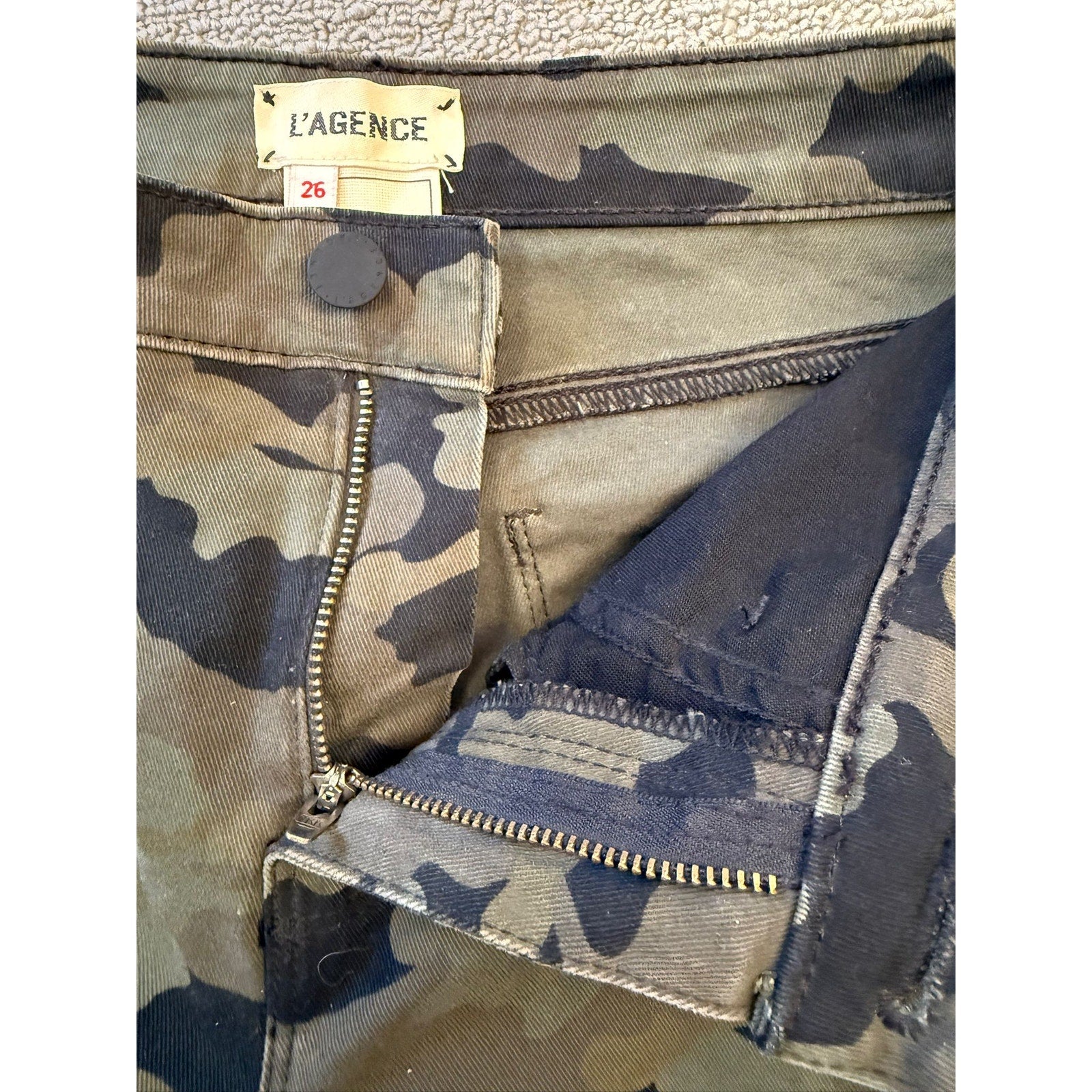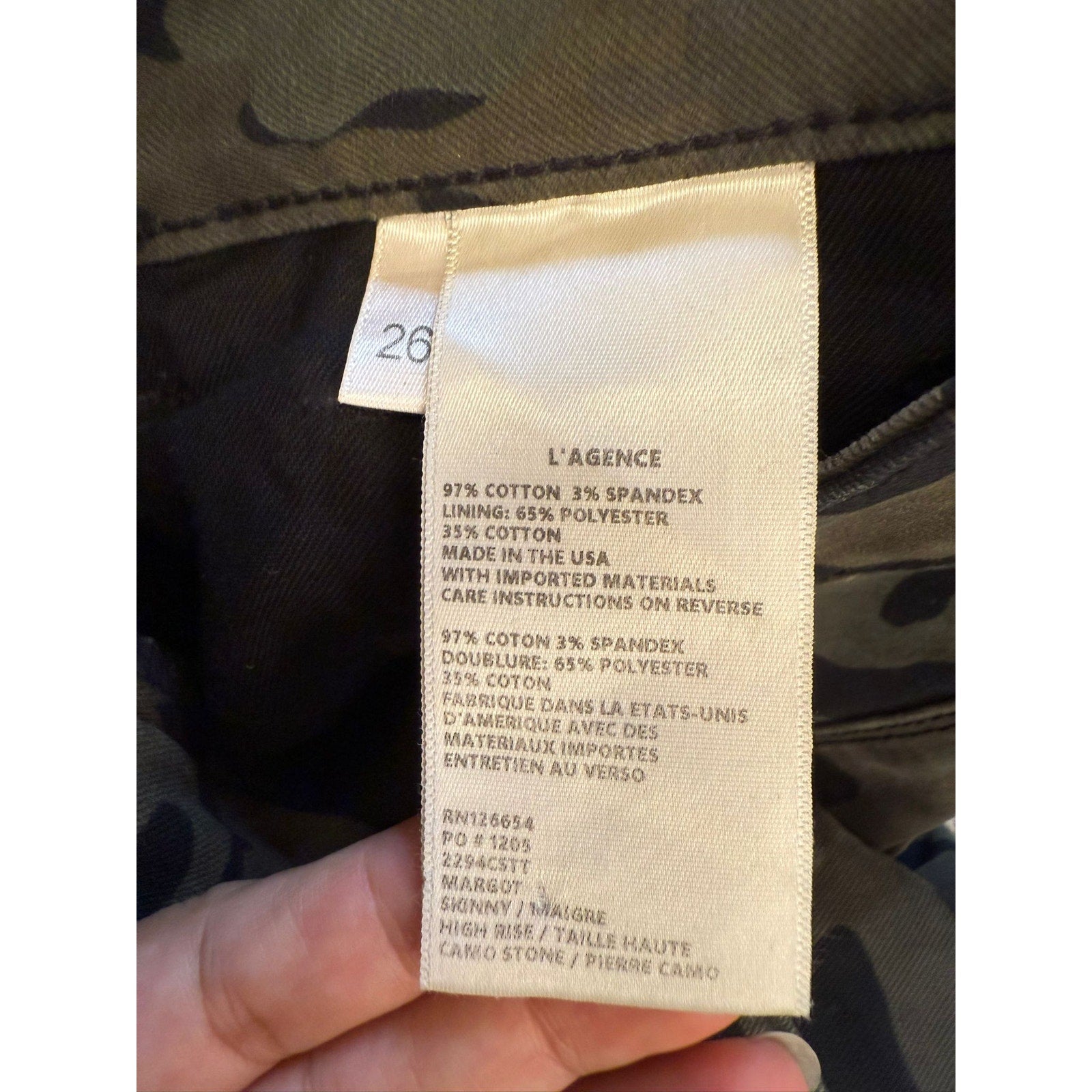 L'AGENCE Women's Camouflage Skinny Jeans 26 Green Black Yellow Side Stripe