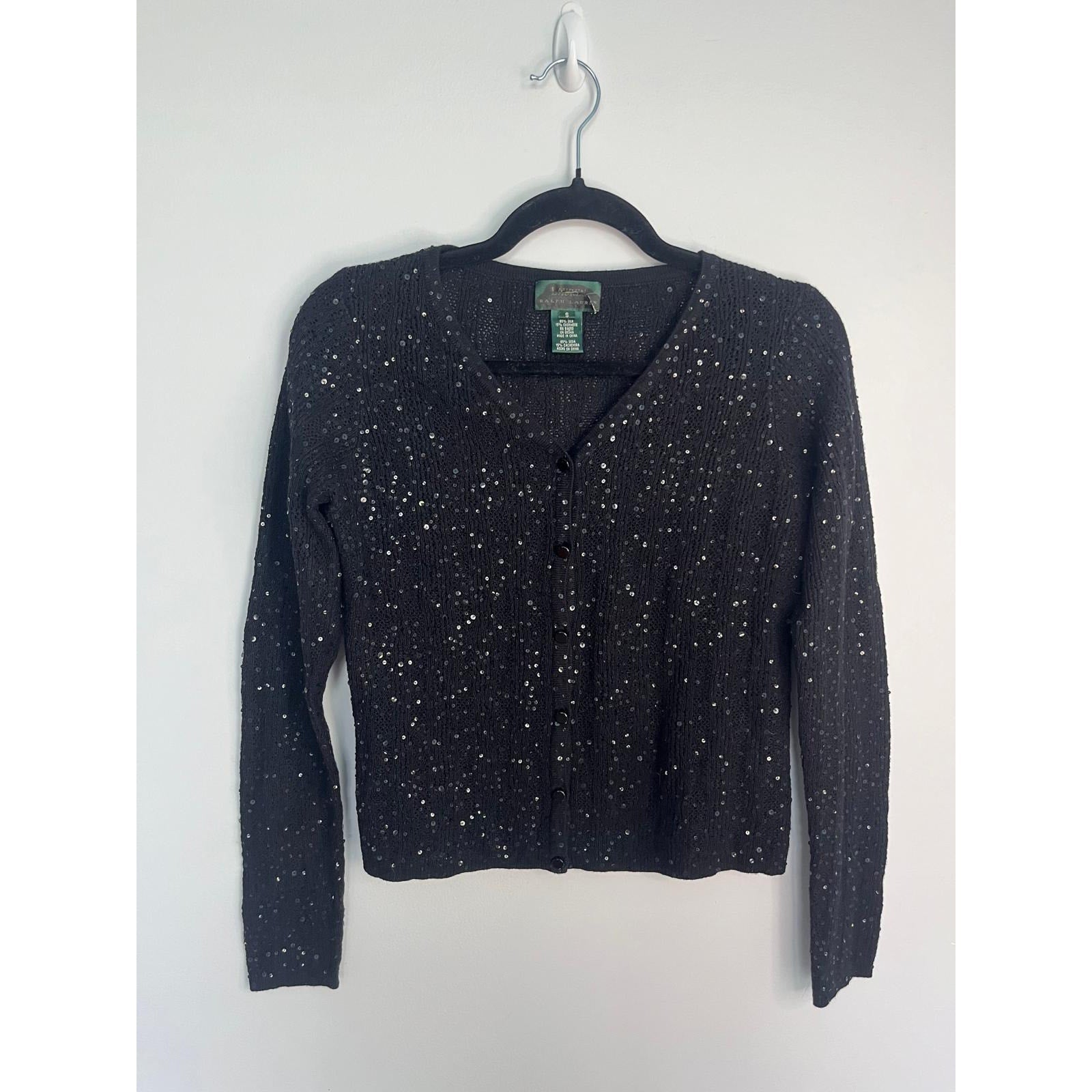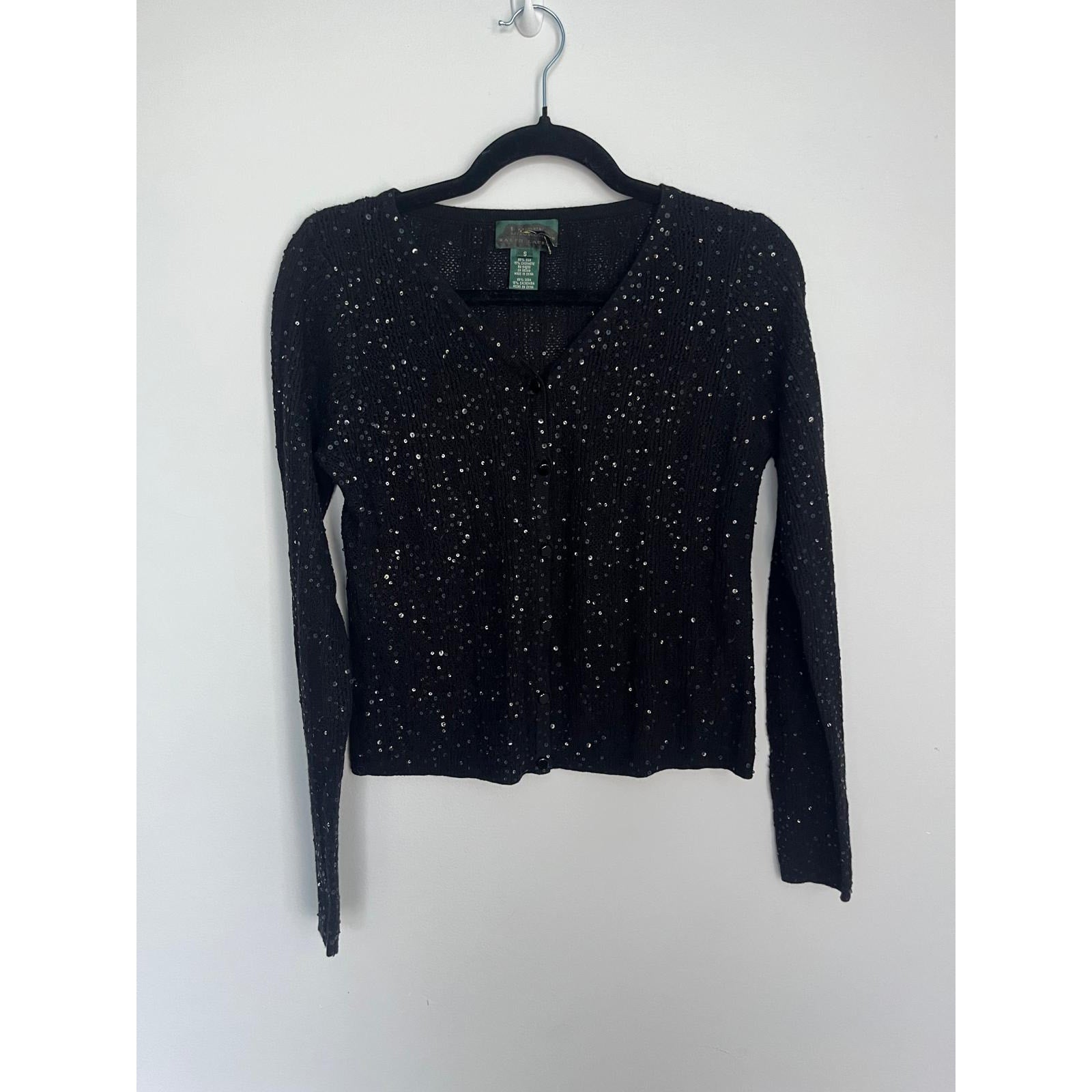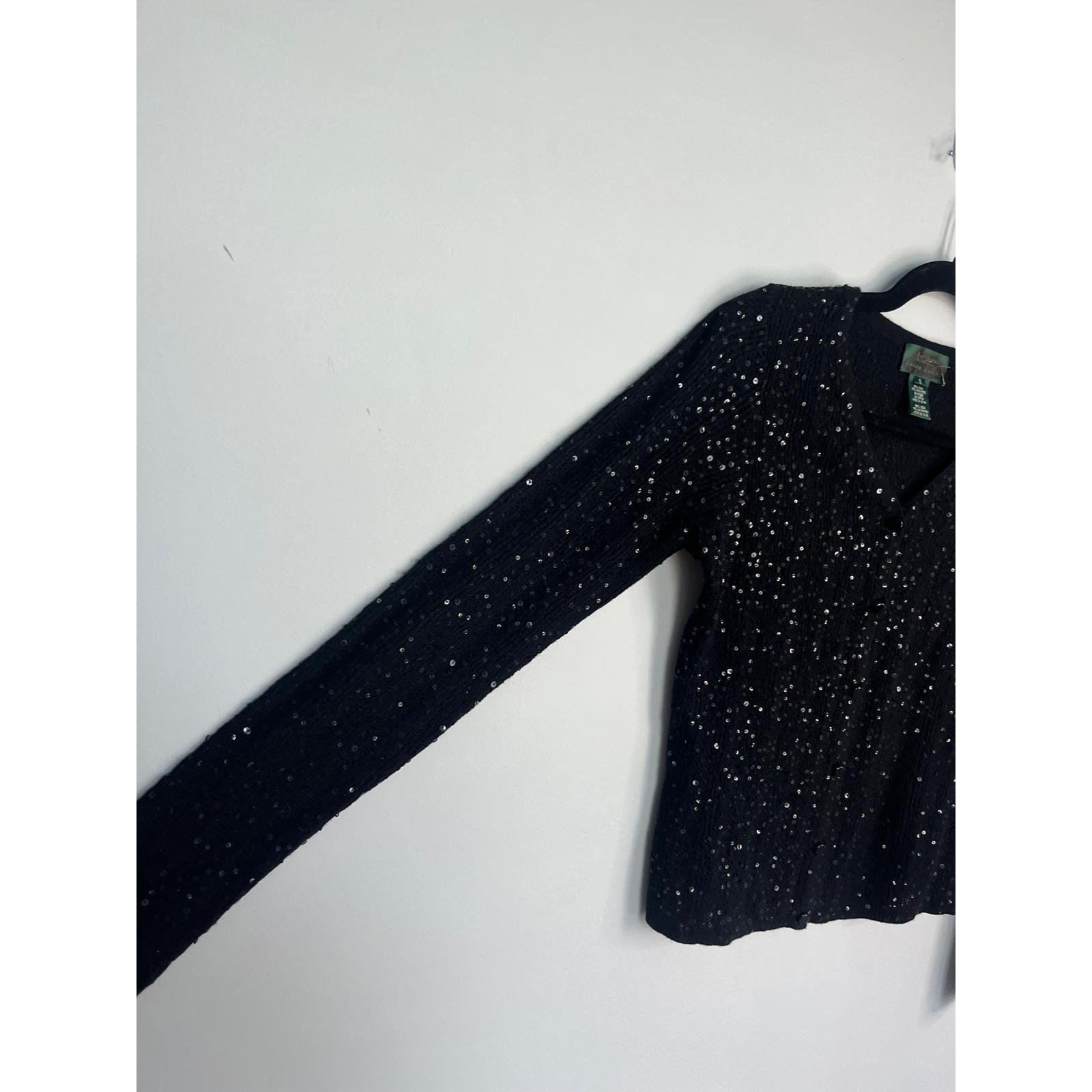 Lauren Ralph Lauren Sequin Cardigan Sweater Black Small Silk Cashmere Blend