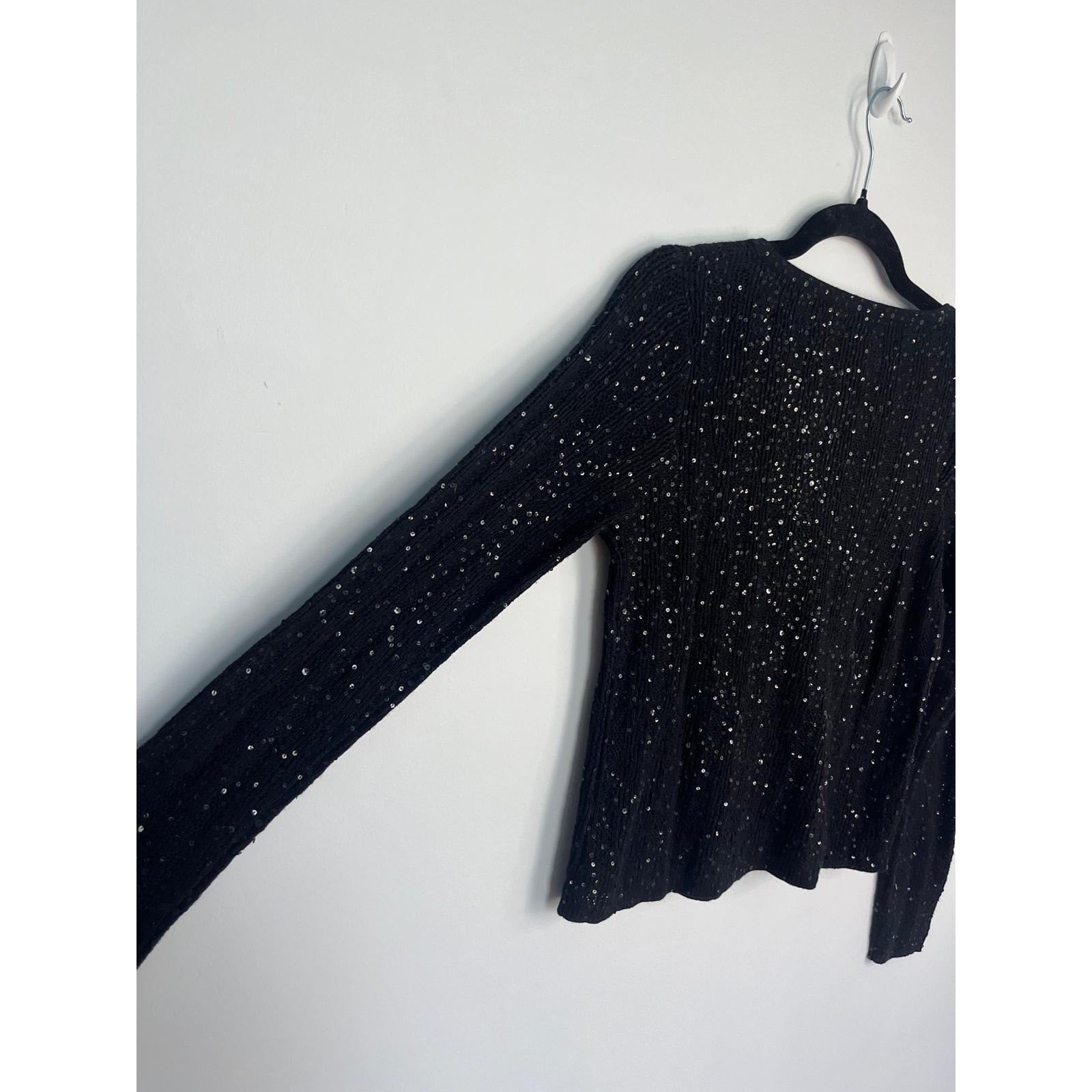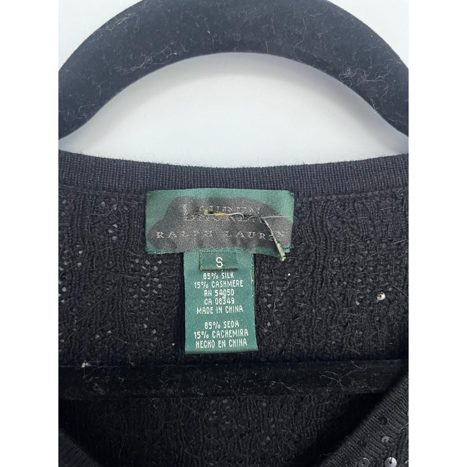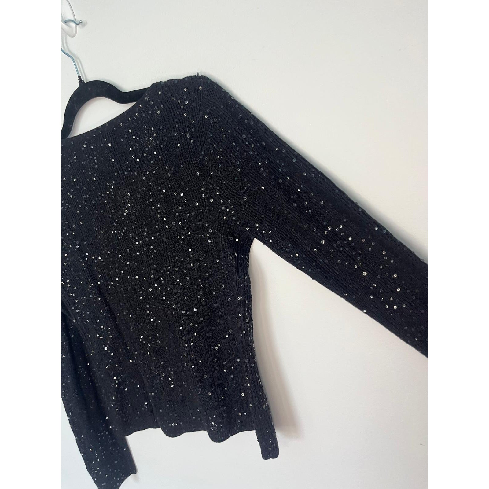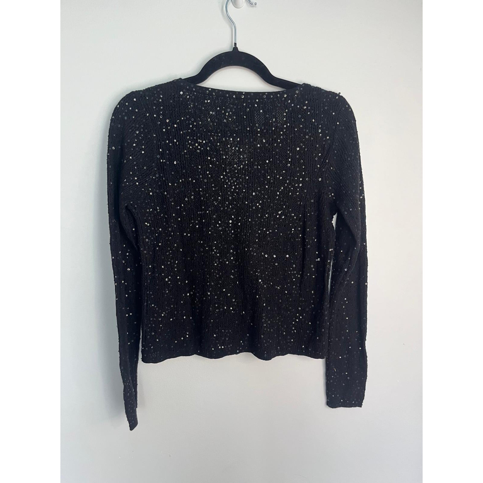 Lauren Ralph Lauren Sequin Cardigan Sweater Black Small Silk Cashmere Blend