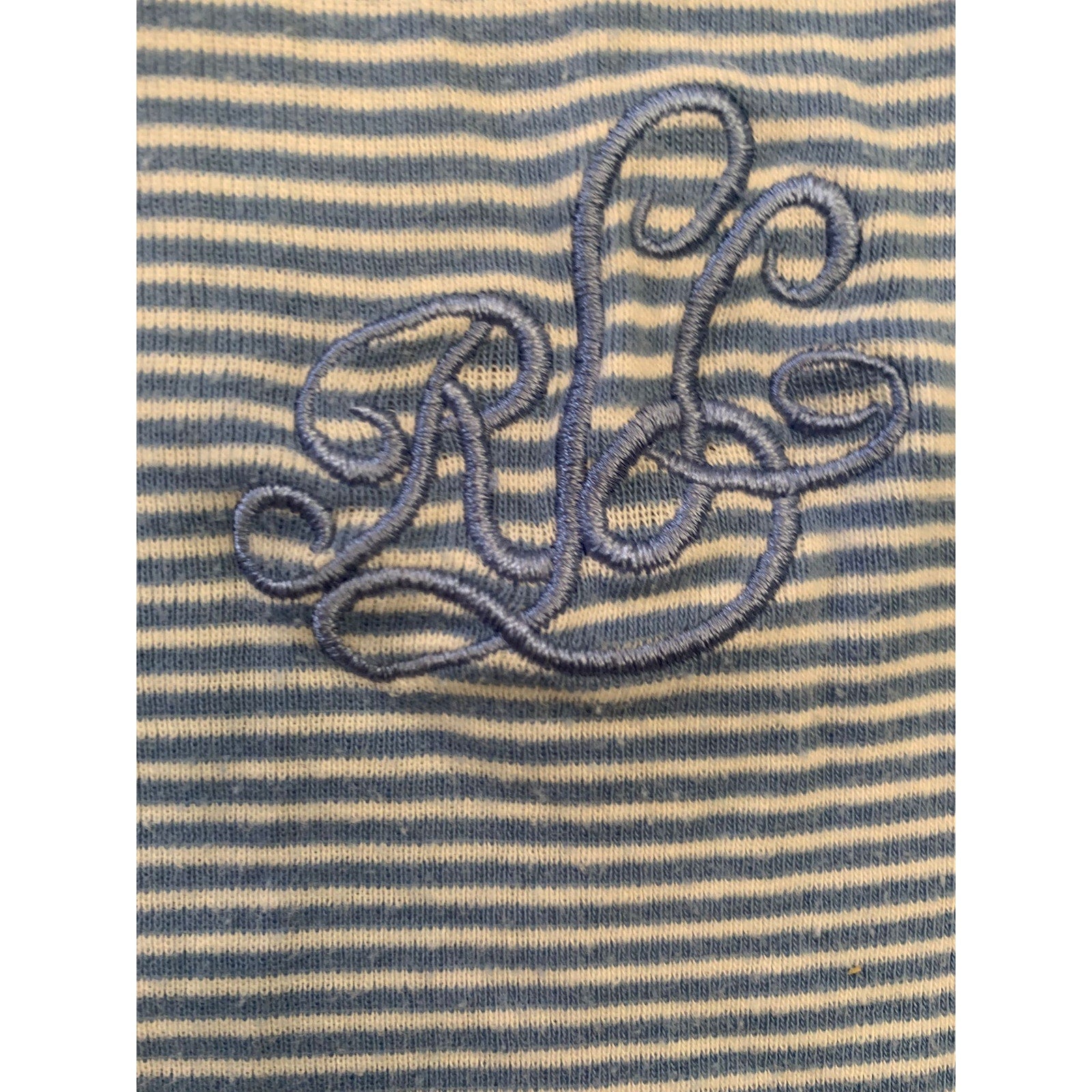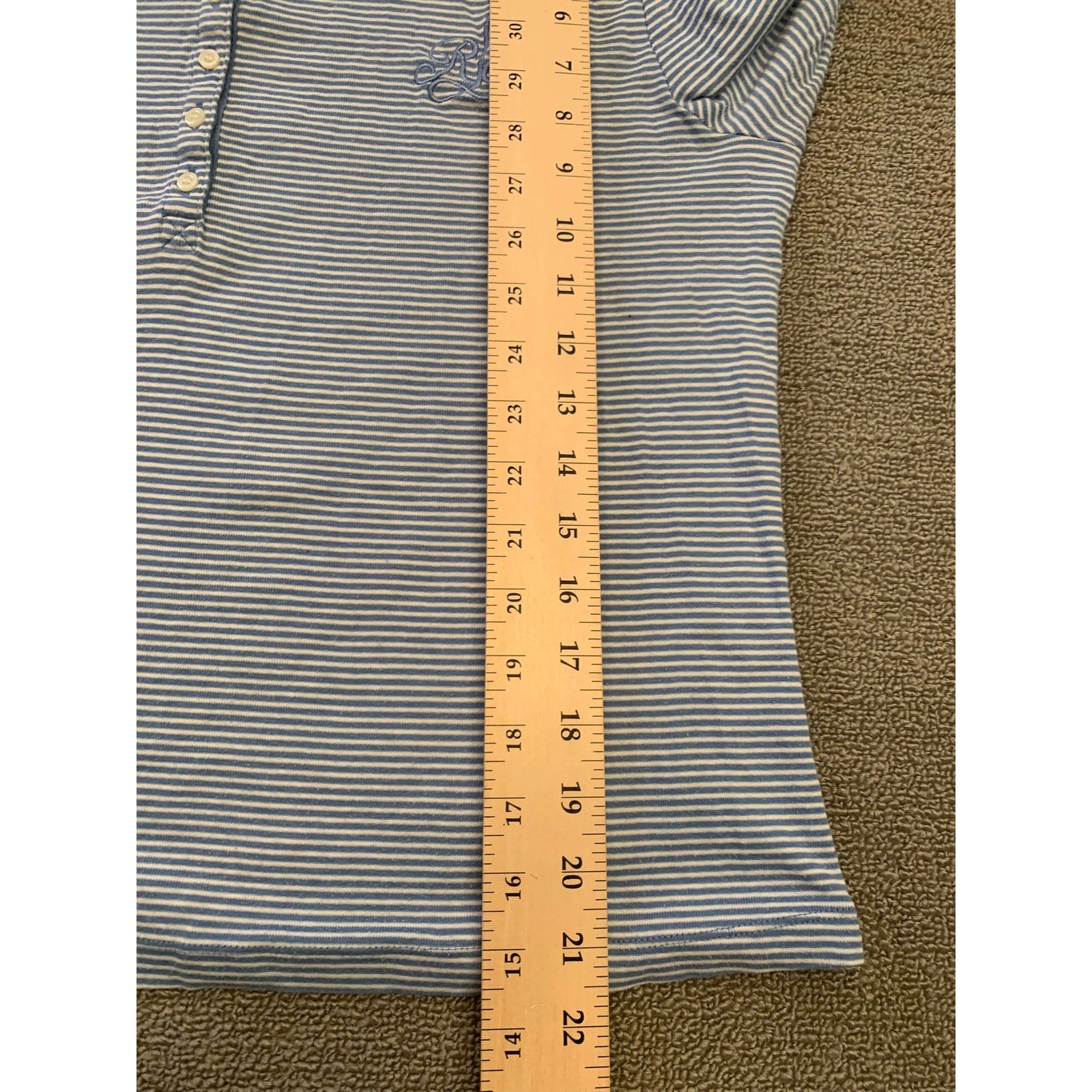 Soft top by Lauren Ralph Lauren in light blue and white horizontal stripes, featuring a three-button placket and subtle “LRL” logo embroidery—adds a refined, casual touch.