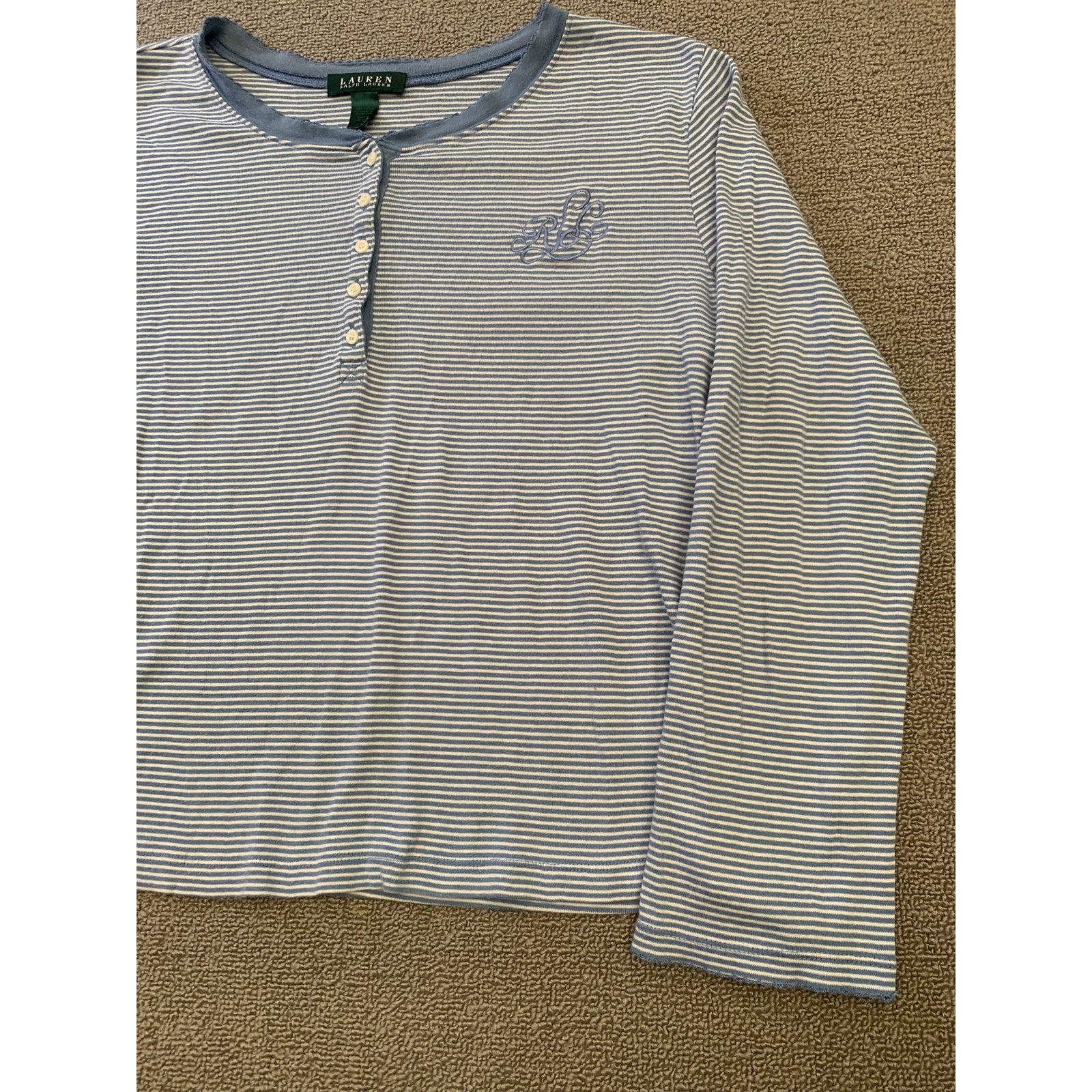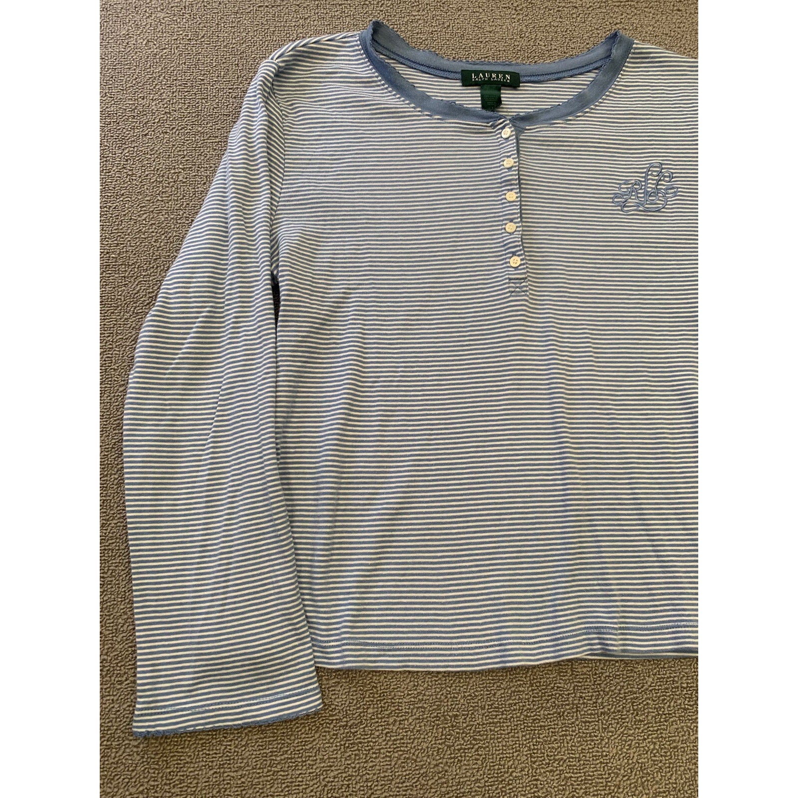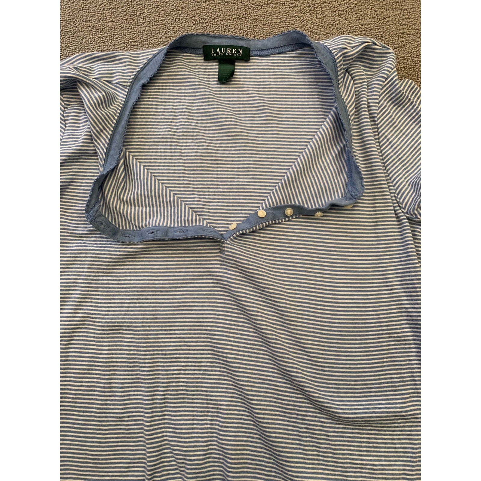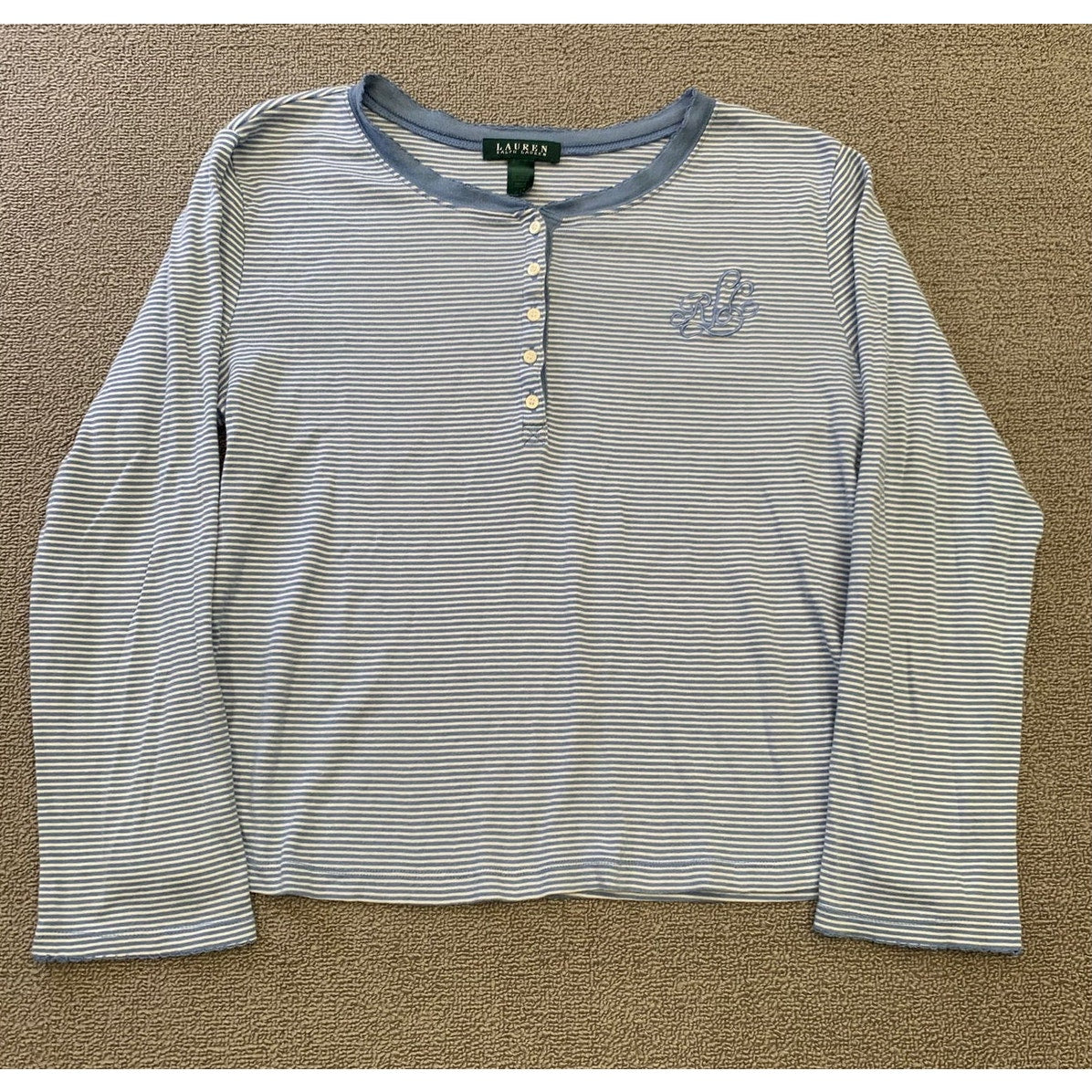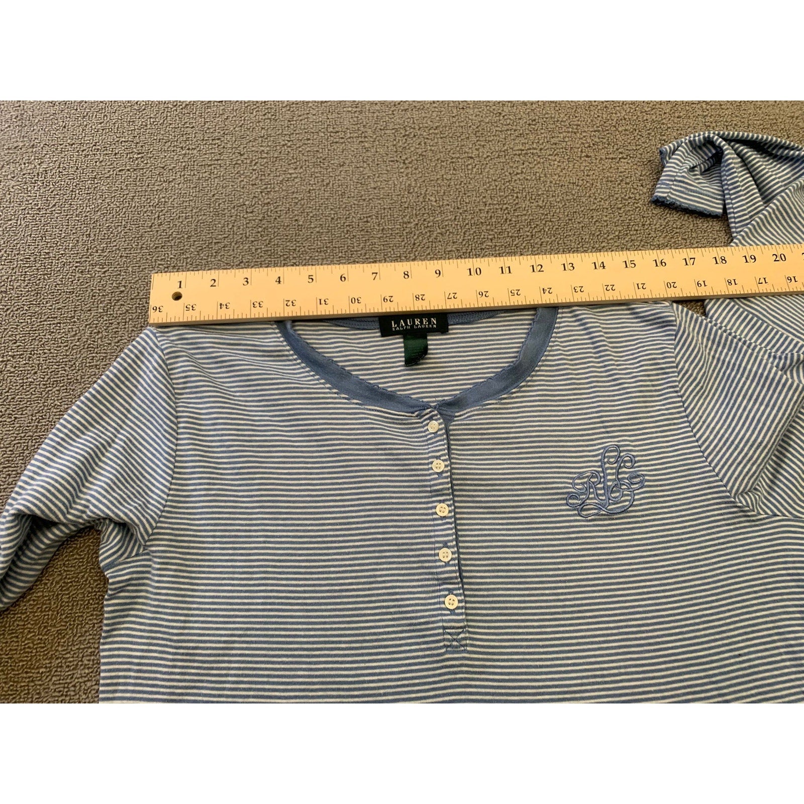 Lauren Ralph Lauren Women's Large Blue Striped Cotton Long Sleeve Loungewear