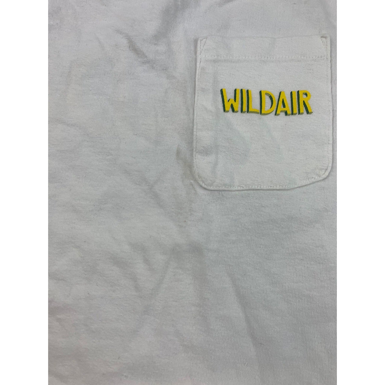 A vintage Left Field Sportswear Wildair pocket tee in crisp white—crafted in the U.S.A. Features a bold “Wildair” logo embroidered on the pocket and carries nostalgic New York City sportswear branding. Soft jersey material and classic tees proportions make it an effortlessly cool staple.