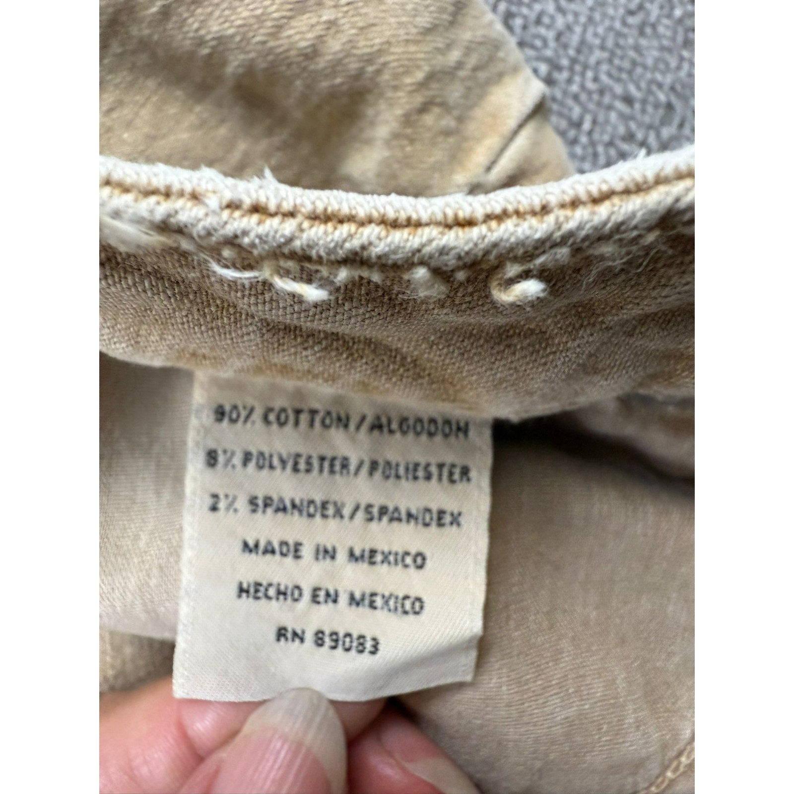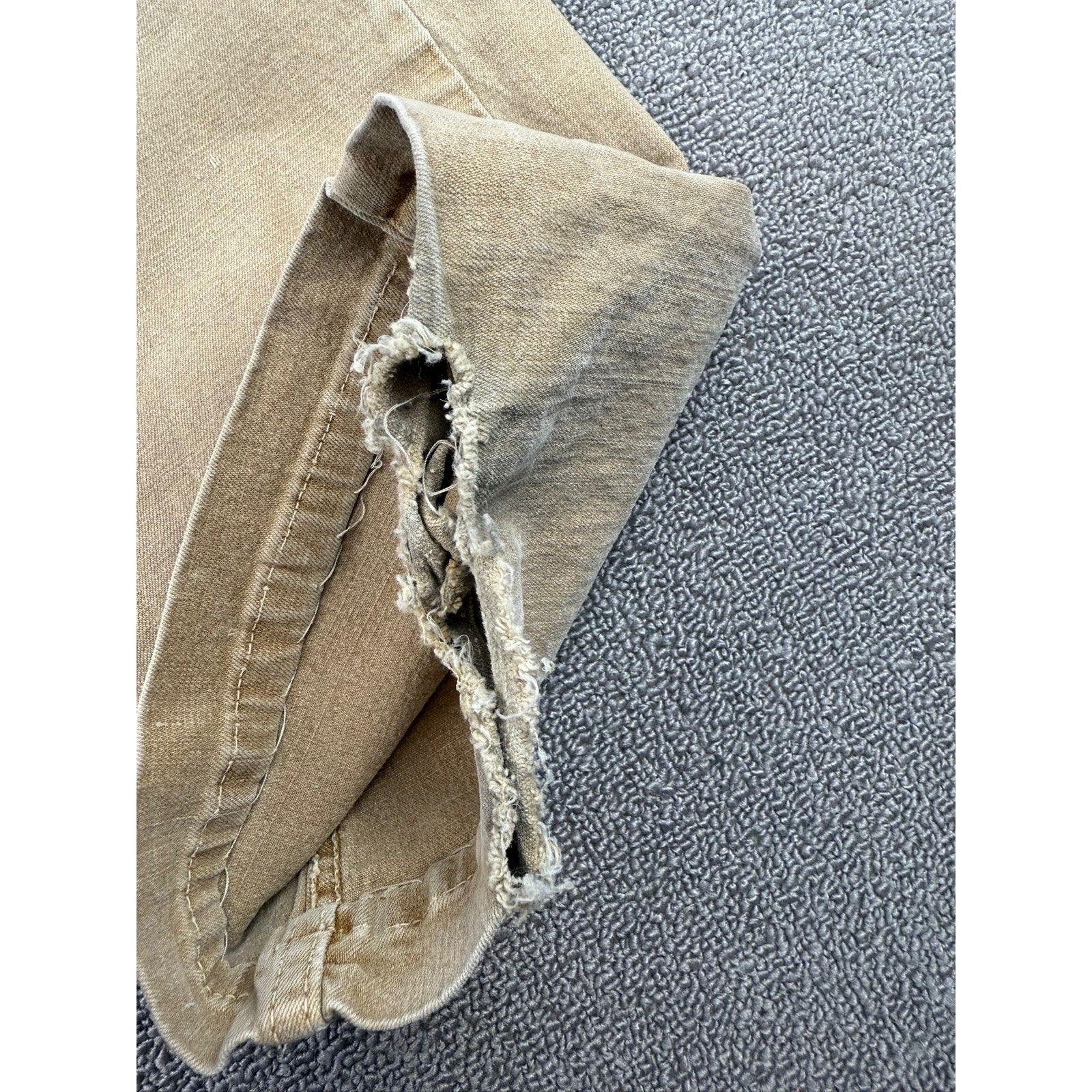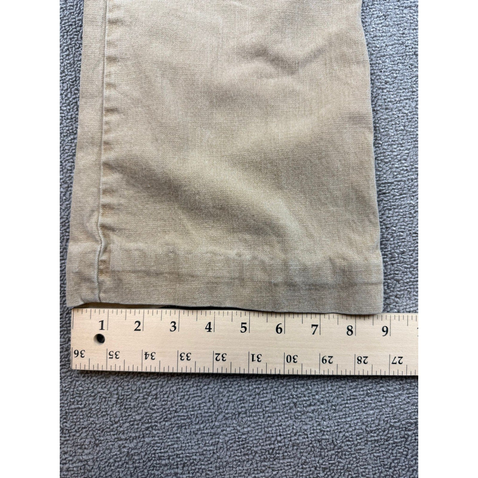 A pair of vintage Lei tan Jeans featuring a classic bootcut leg, traditional five-pocket styling with metal rivets, and the waistband patch. The light tan tone and worn-in patina add authentic vintage character.
