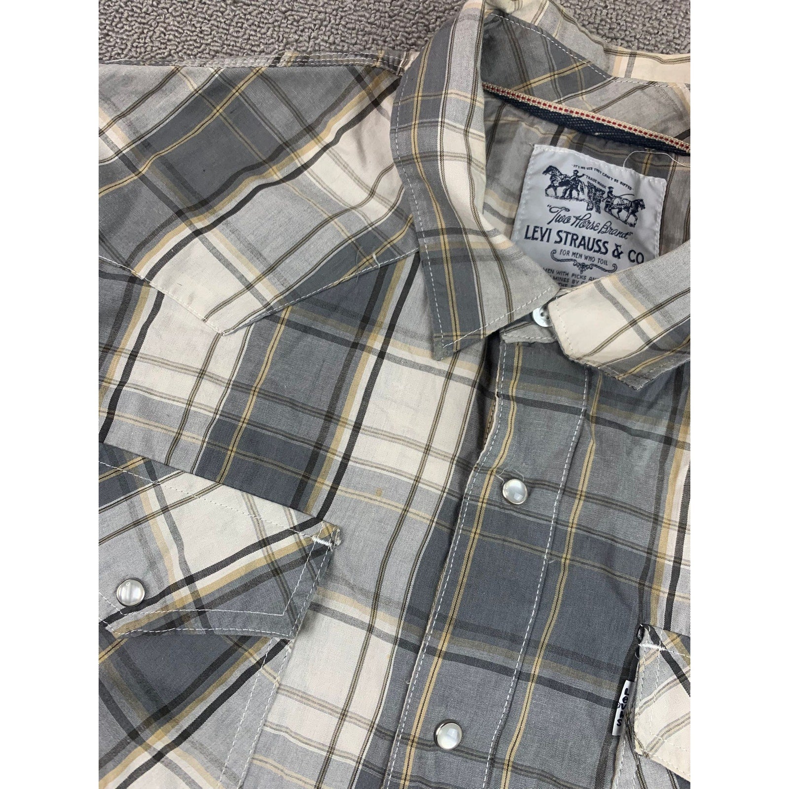 Levi’s Western Snap Shirt Men's L Gray Plaid Short Sleeve Pearl Snaps