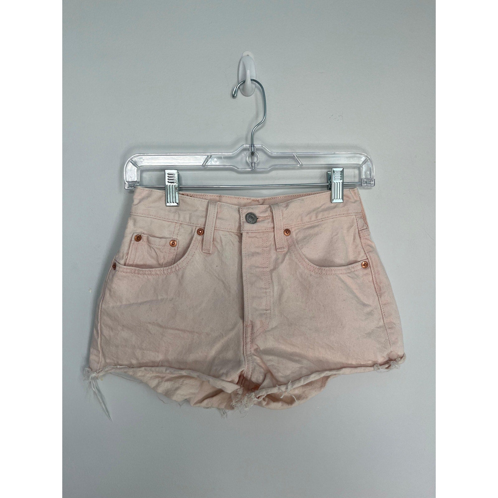 Levis 501 Premium Shorts Women W24 Pink High Rise Cutoff Denim