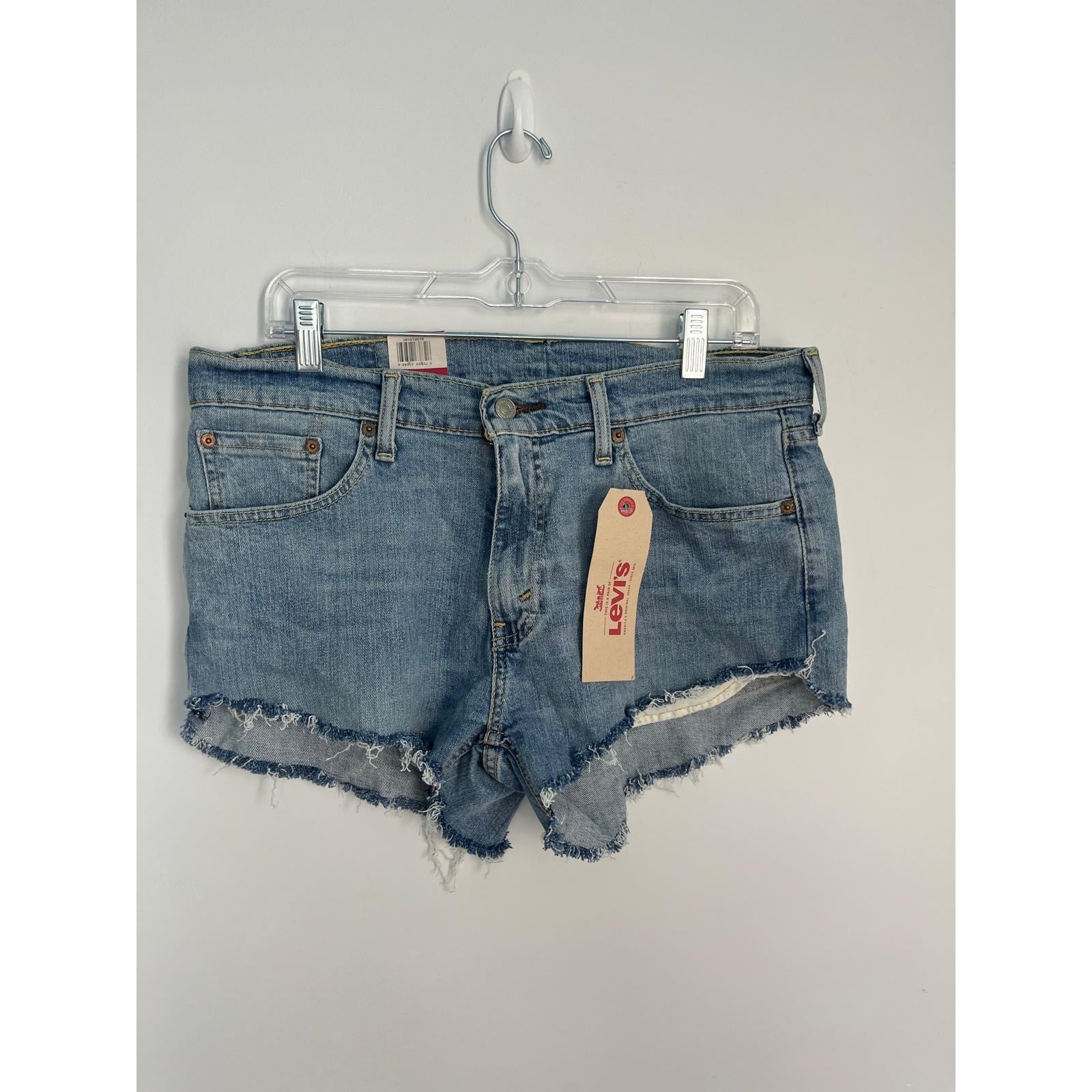 Levis 541 Denim Shorts Women 32 Distressed Raw Hem High Rise