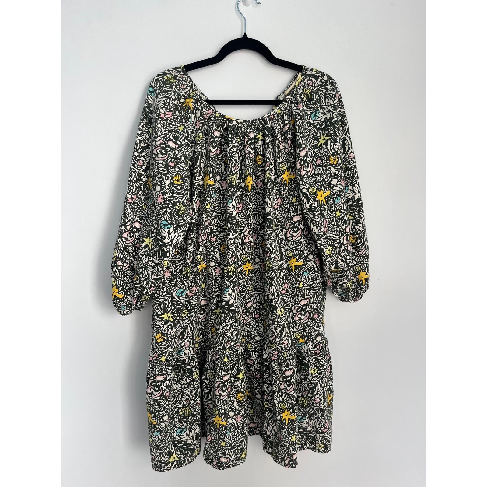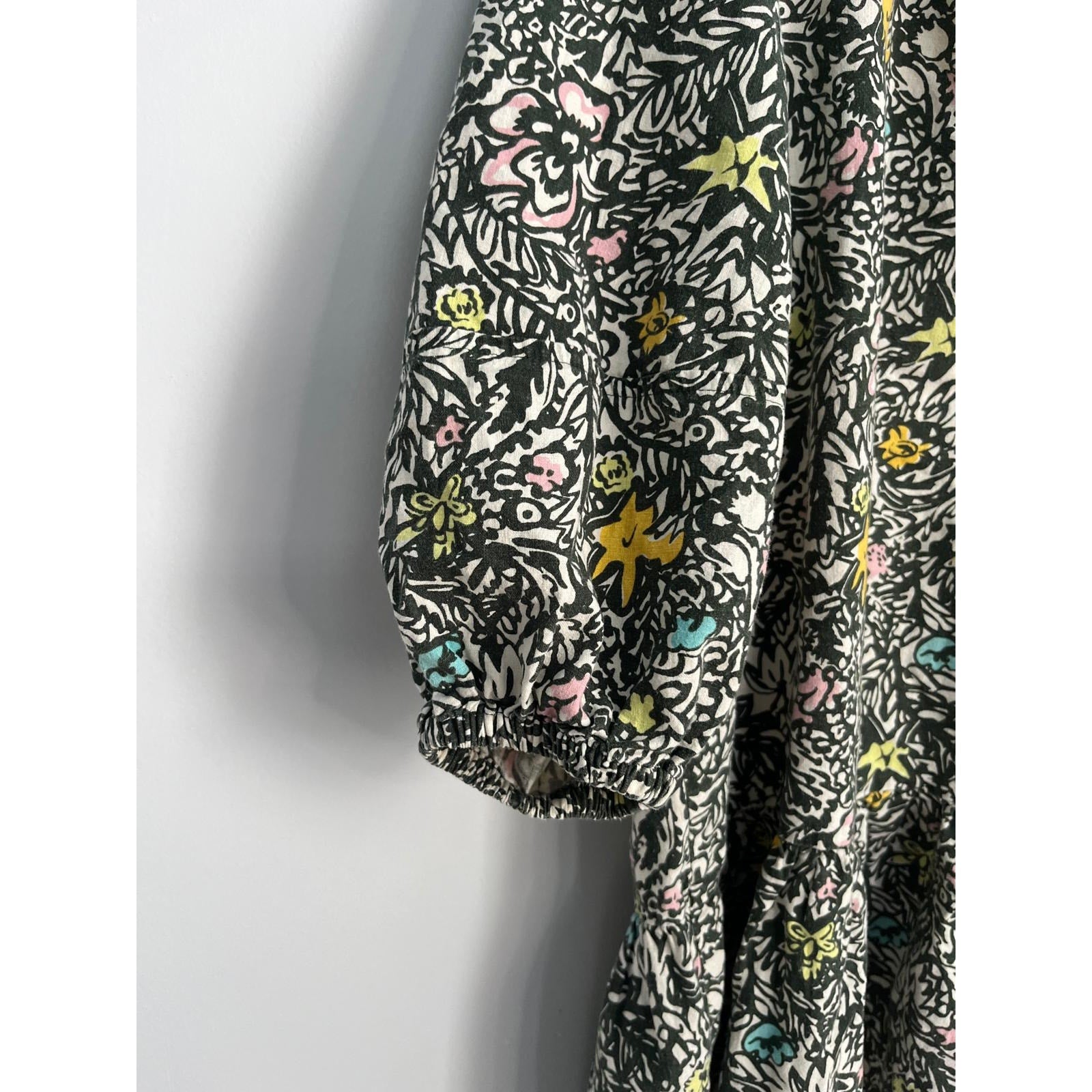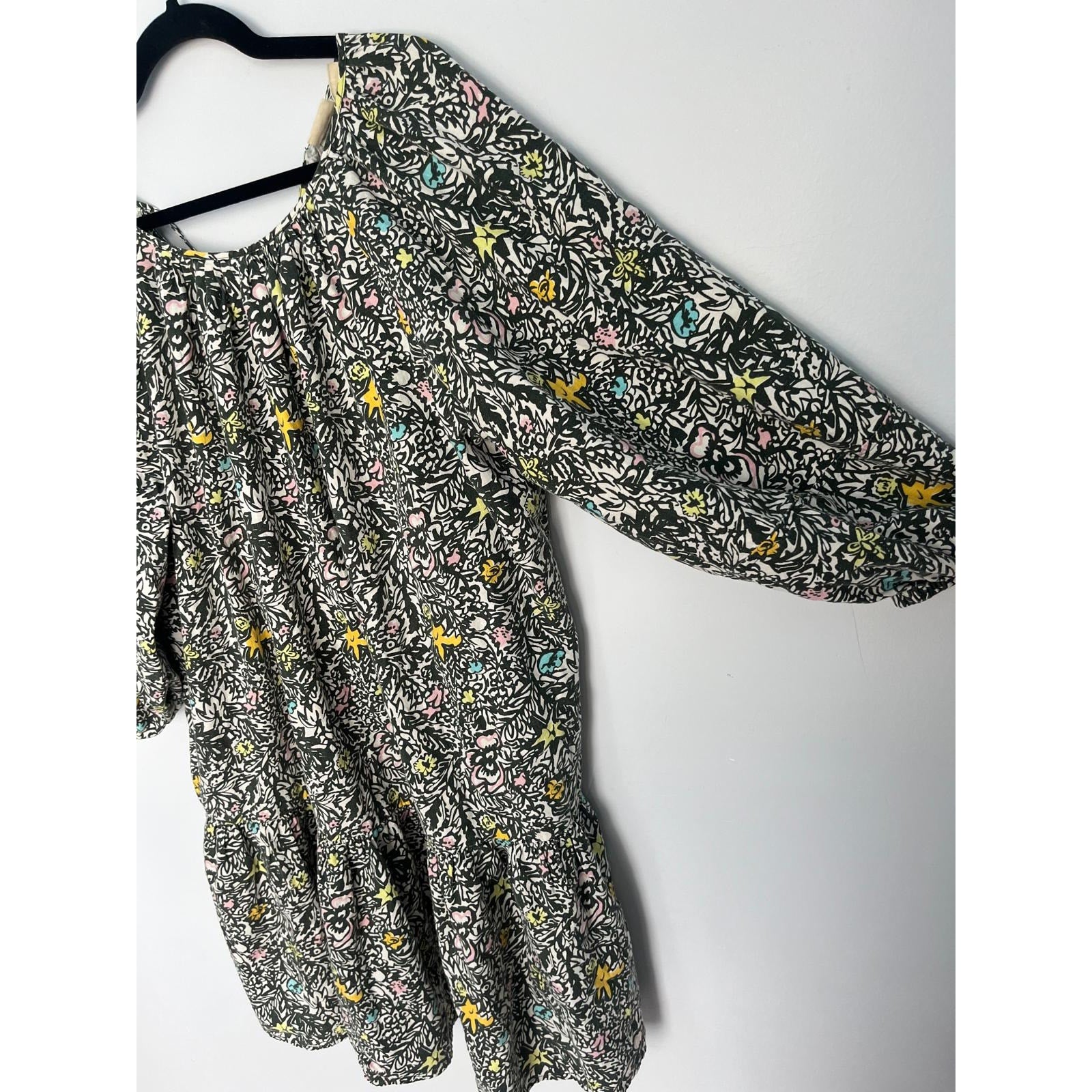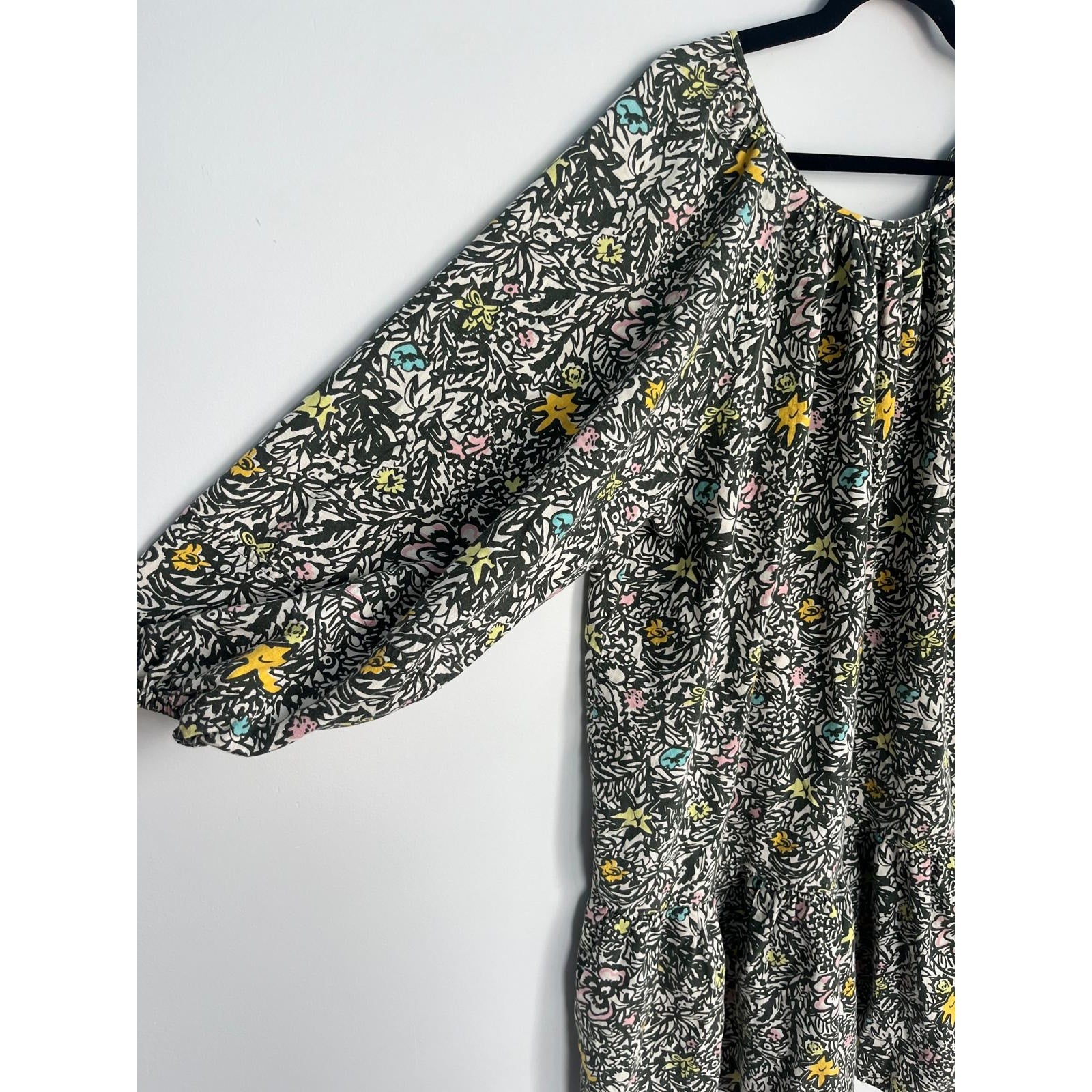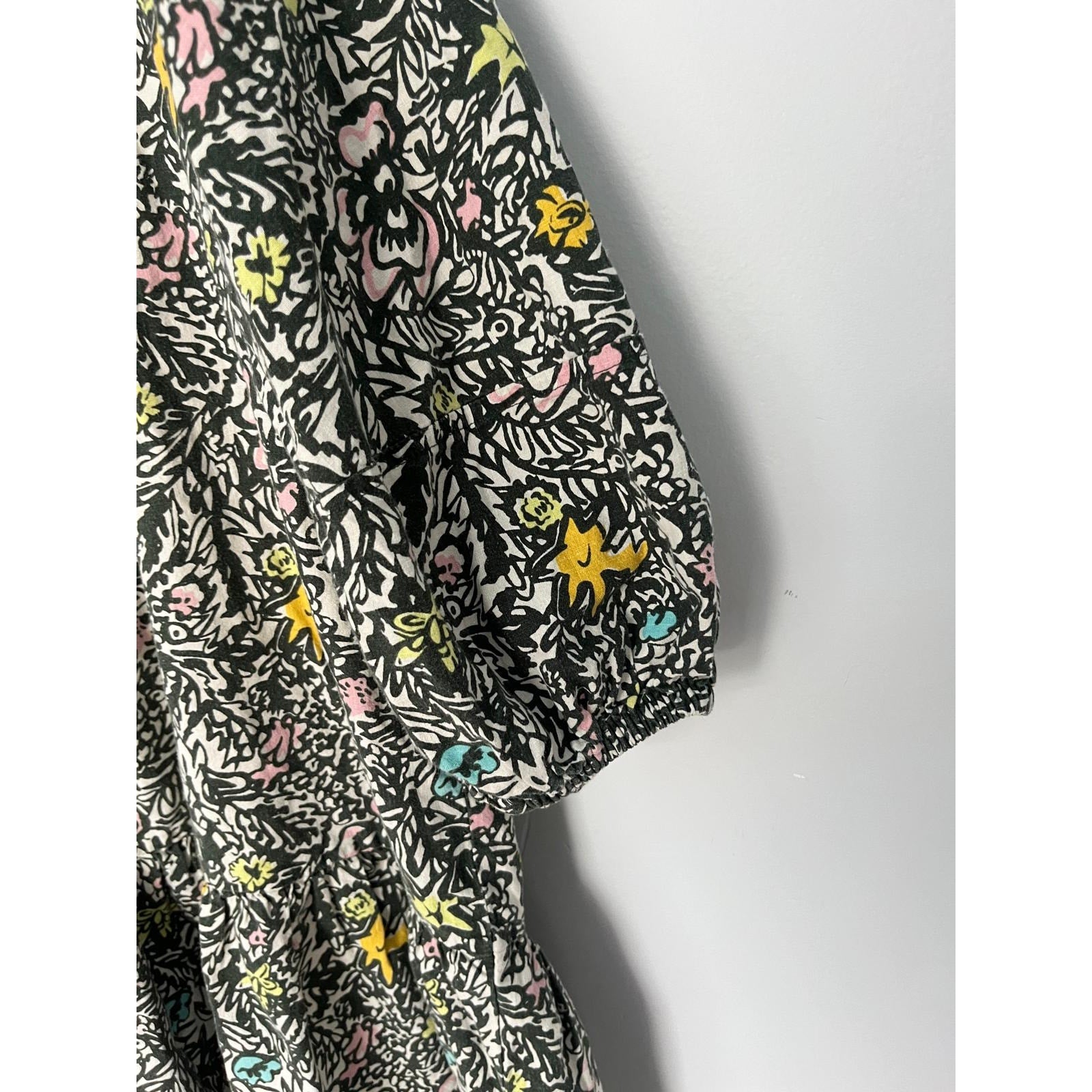 Levis Floral Peasant Dress Women M Black Multicolor Puff Sleeve Boho