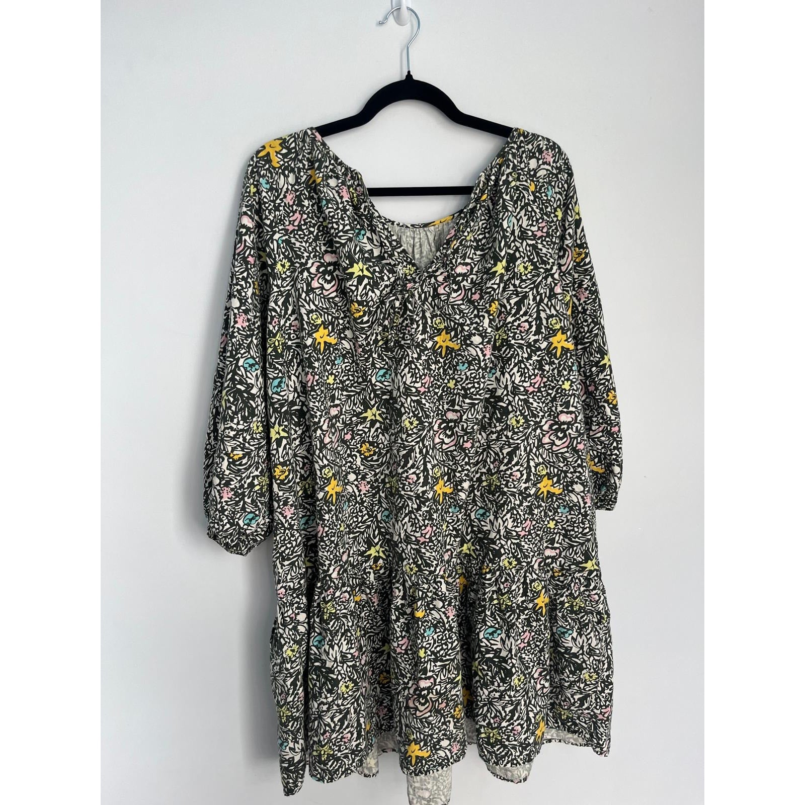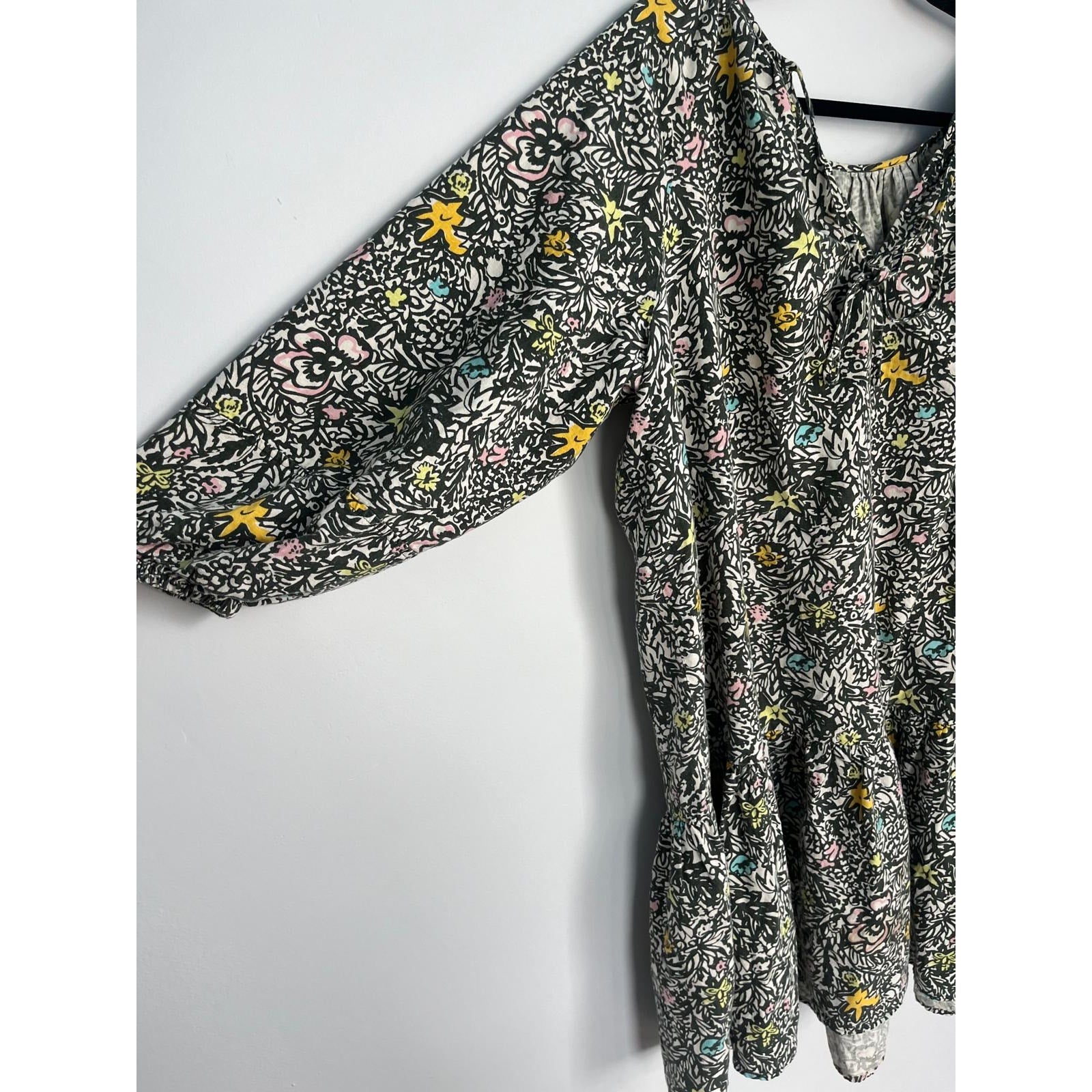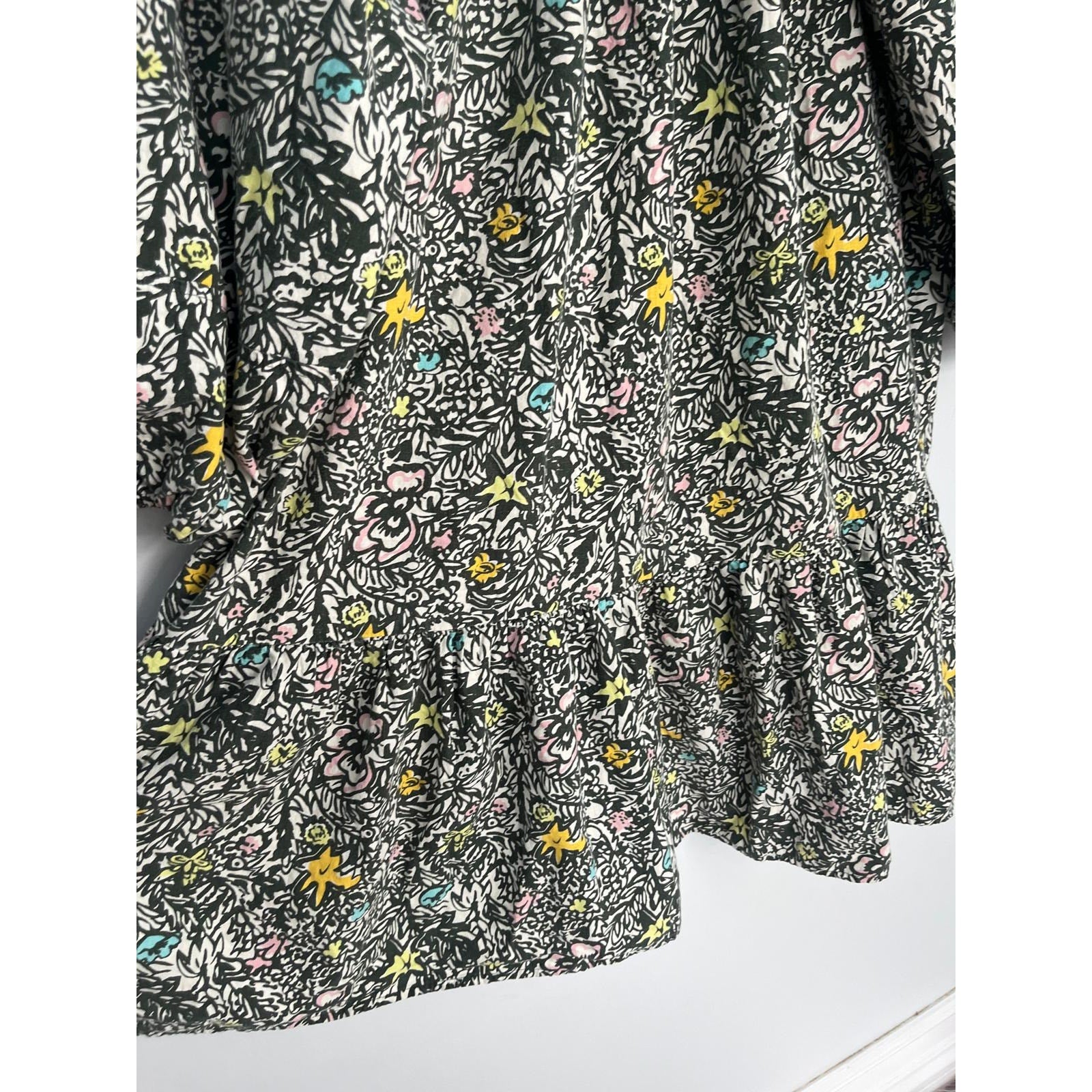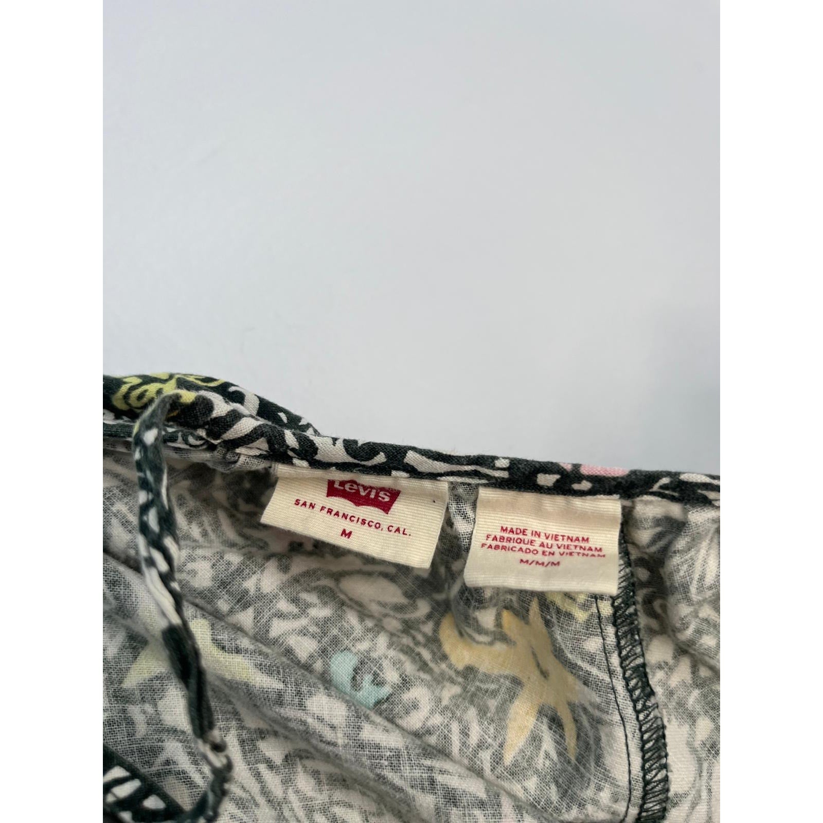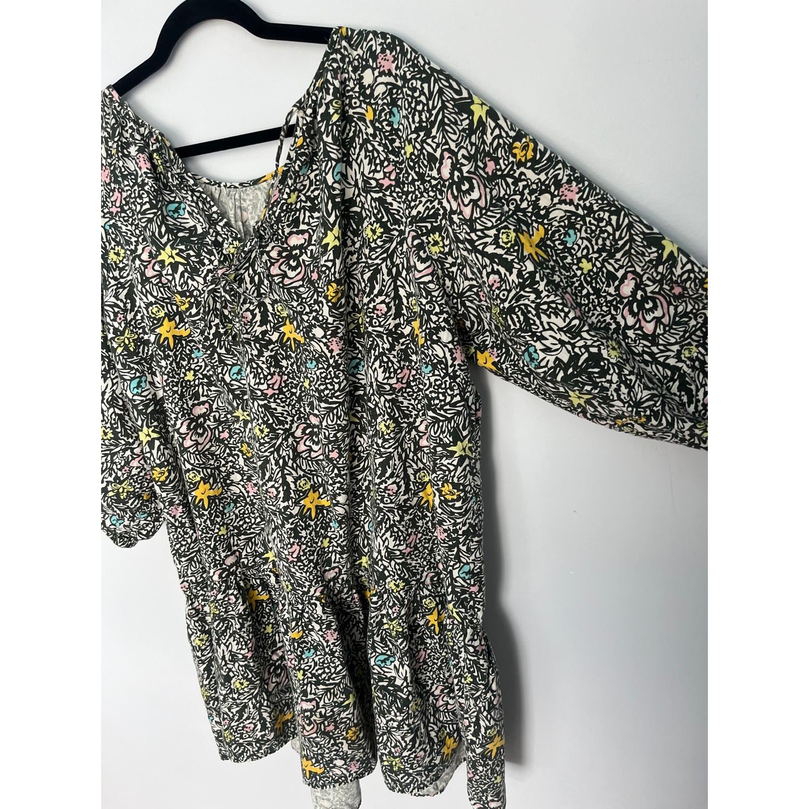 Levis Floral Peasant Dress Women M Black Multicolor Puff Sleeve Boho