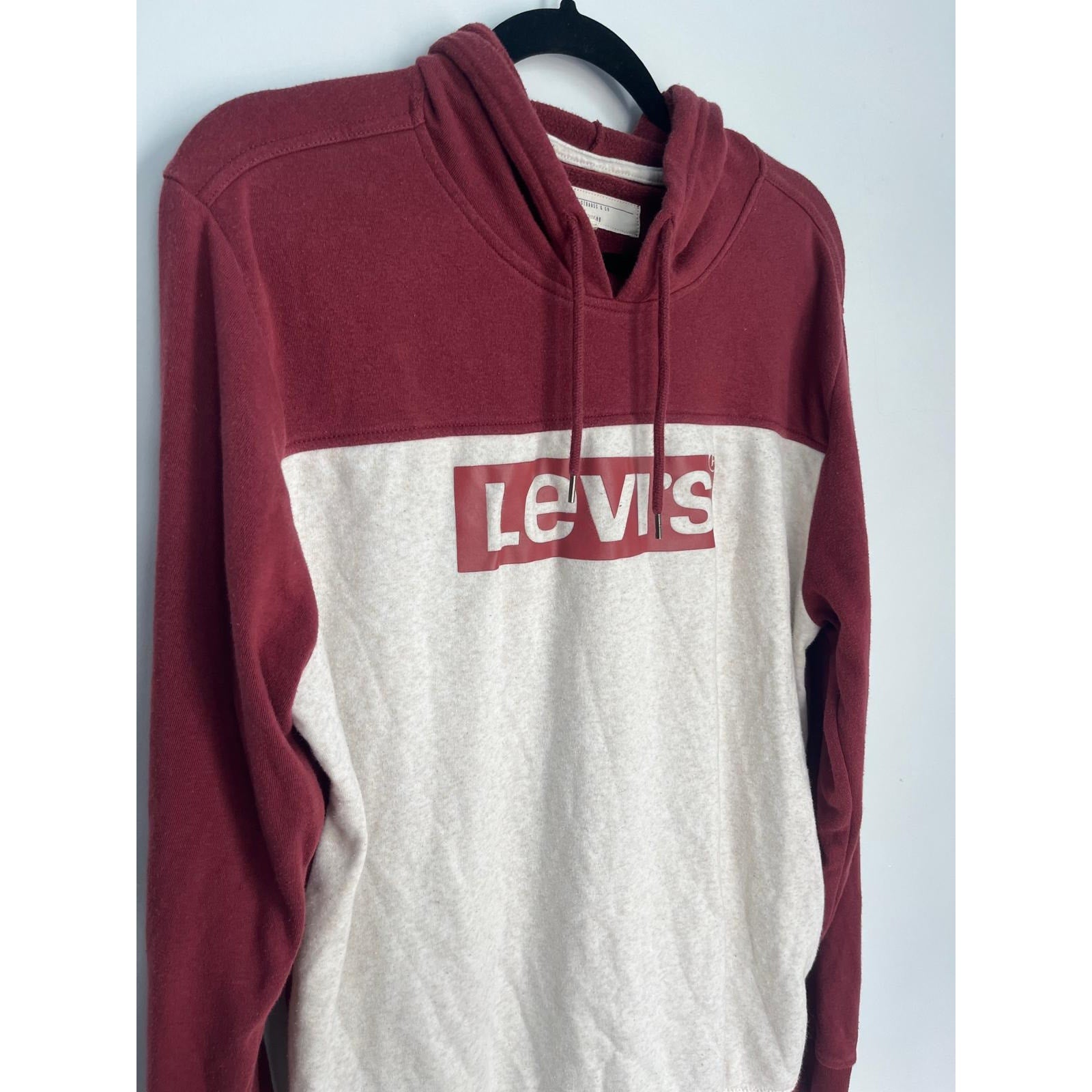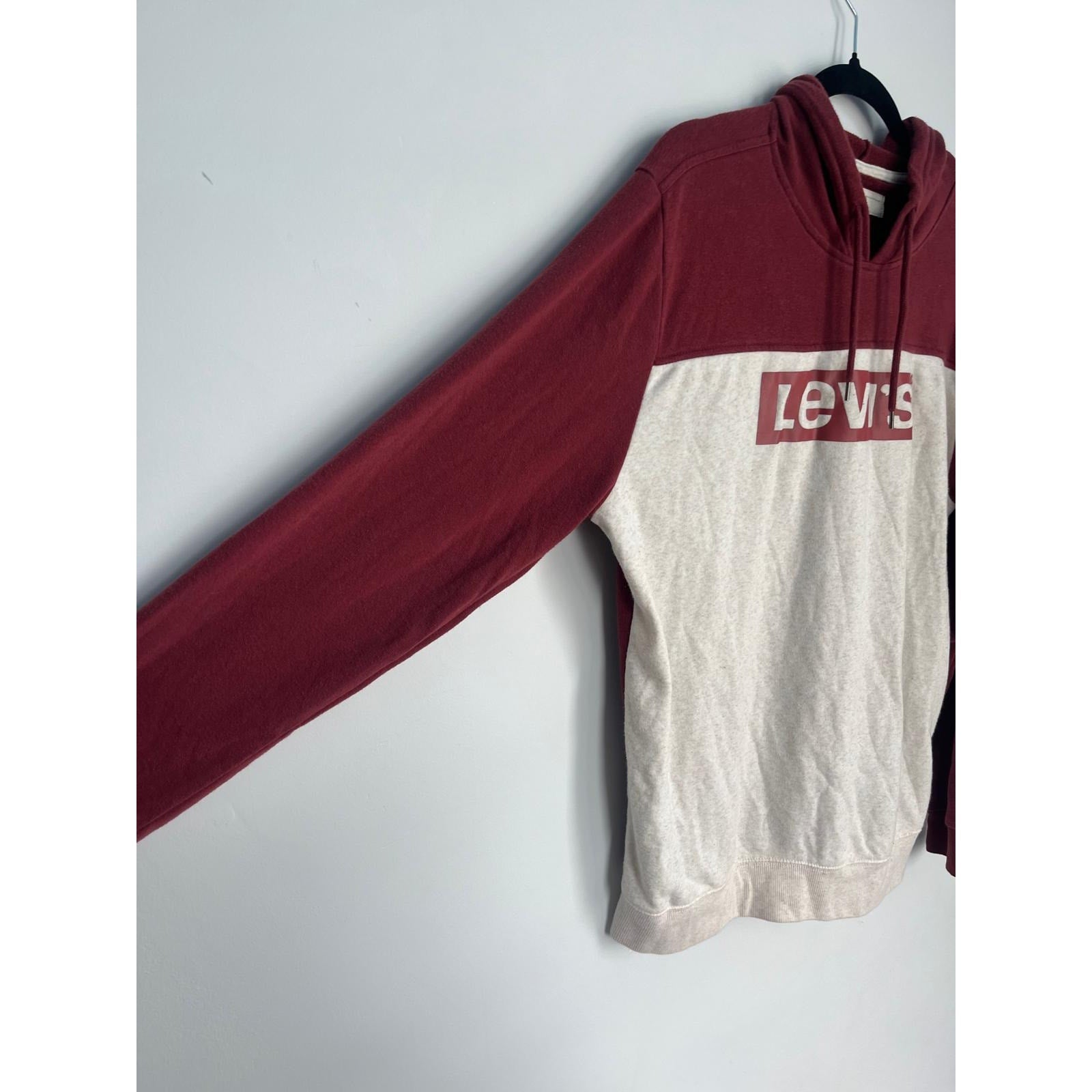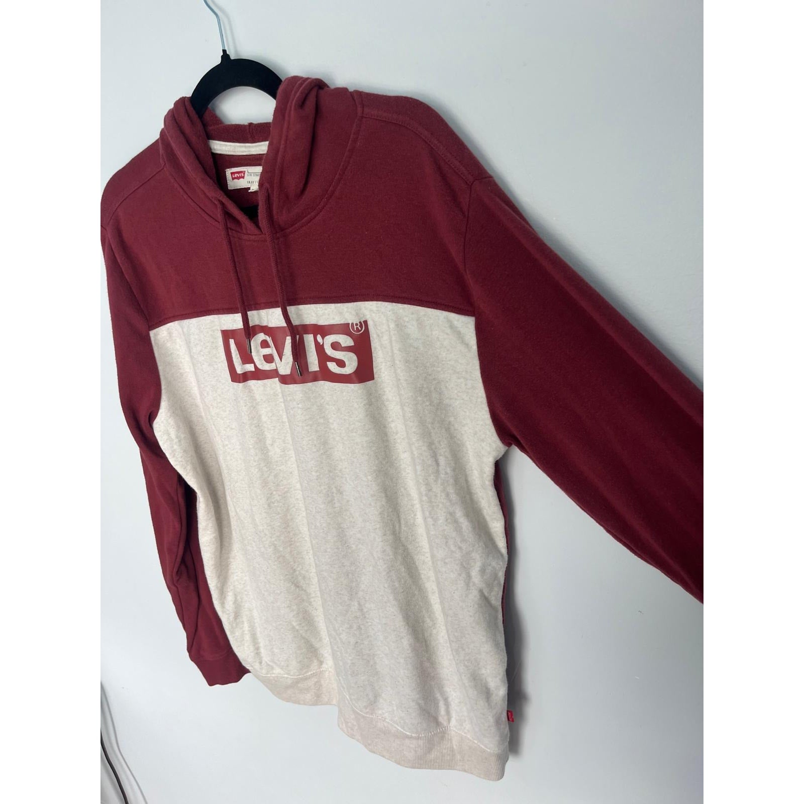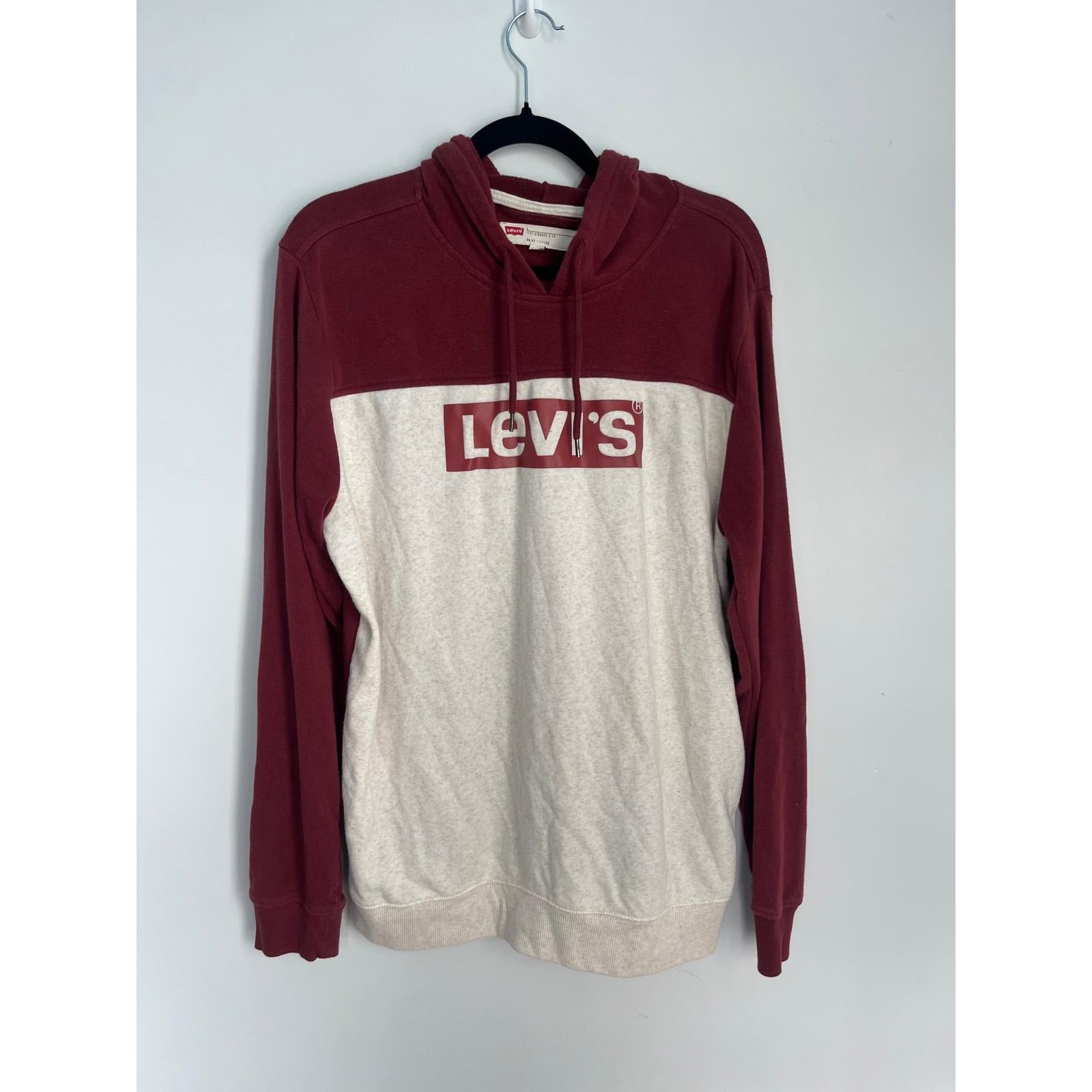 Levis Hoodie Sweatshirt Men Large Red Cream Colorblock Logo Pullover