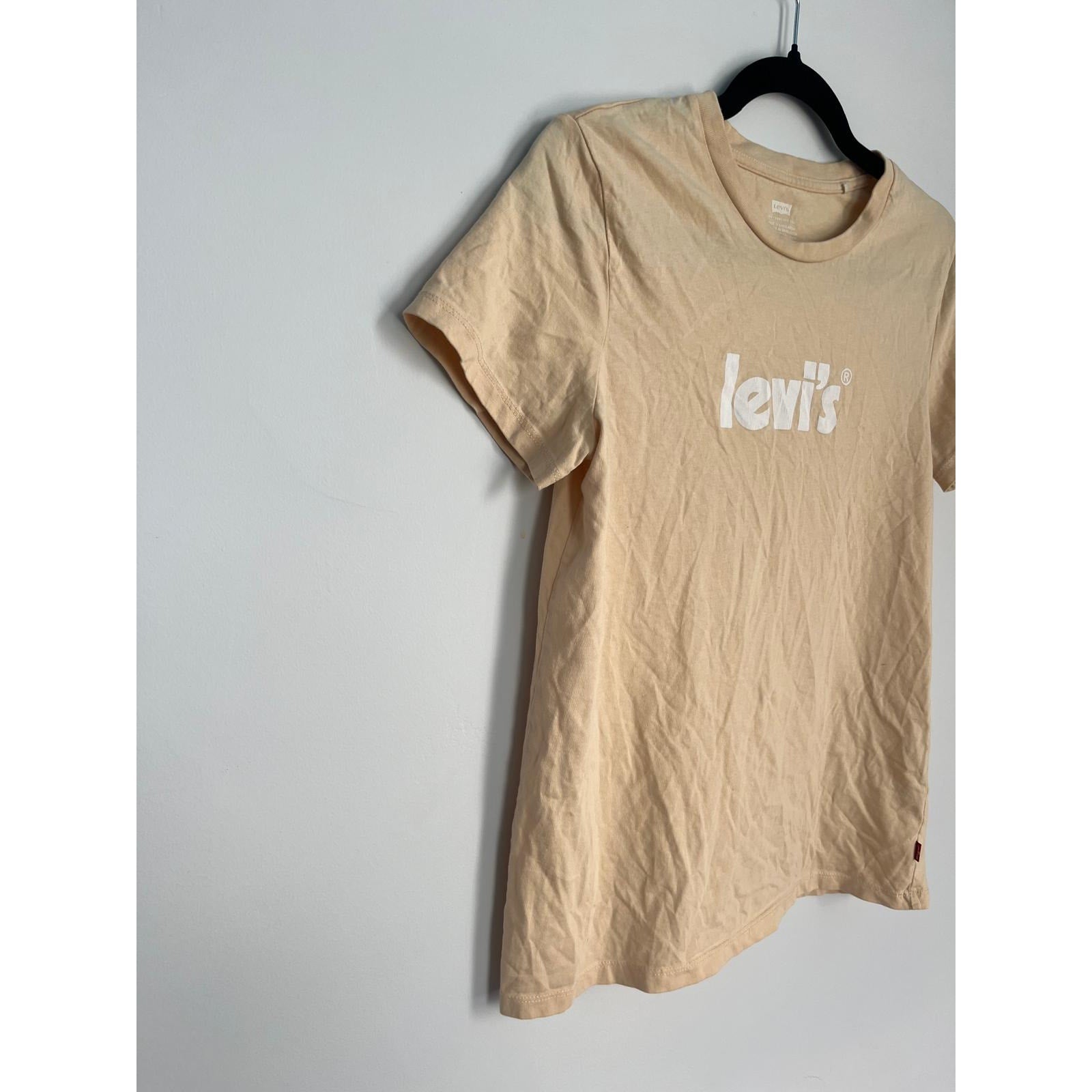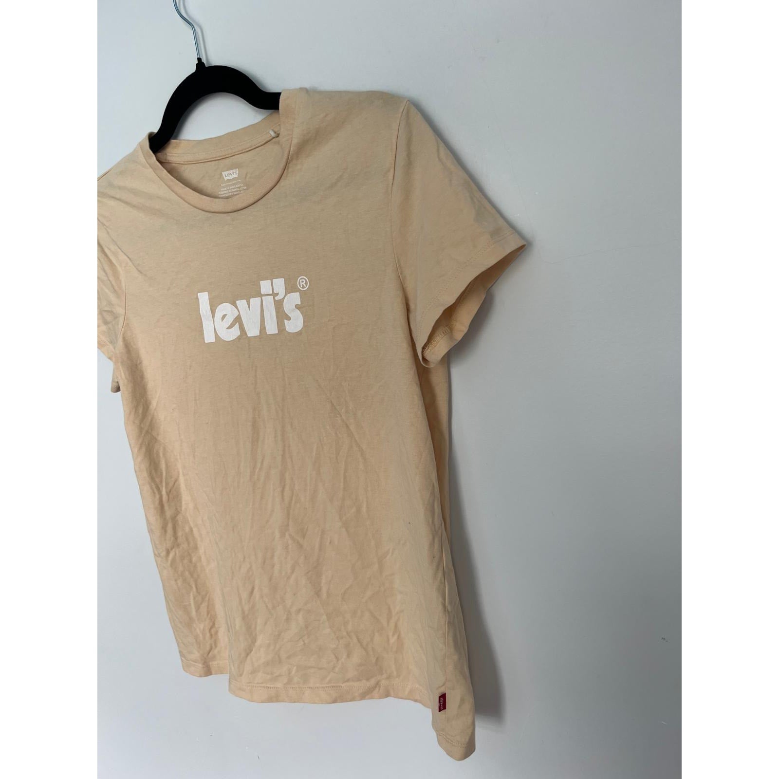 Levis Logo T Shirt Women Small Beige Short Sleeve Crewneck Cotton Tee