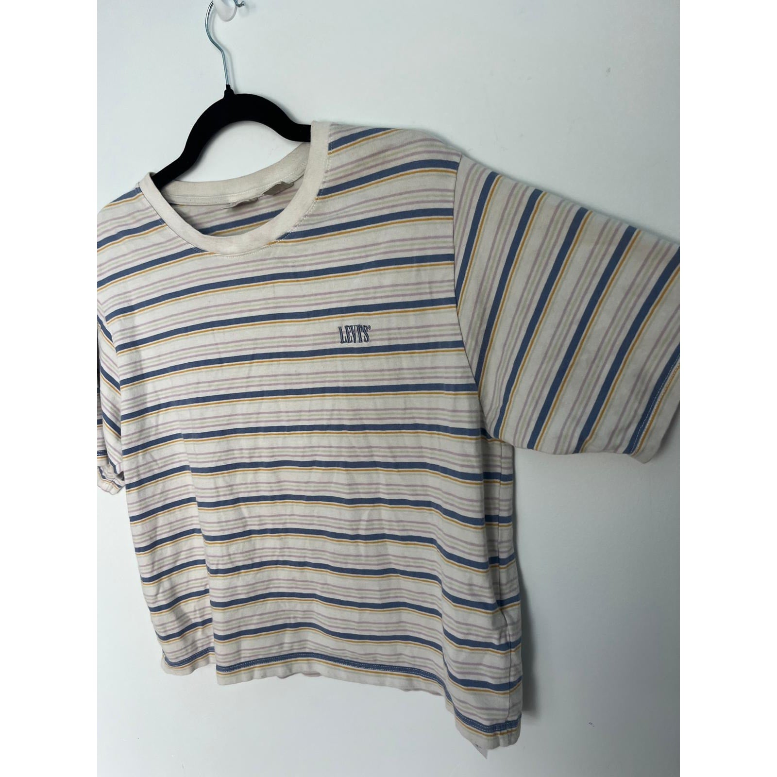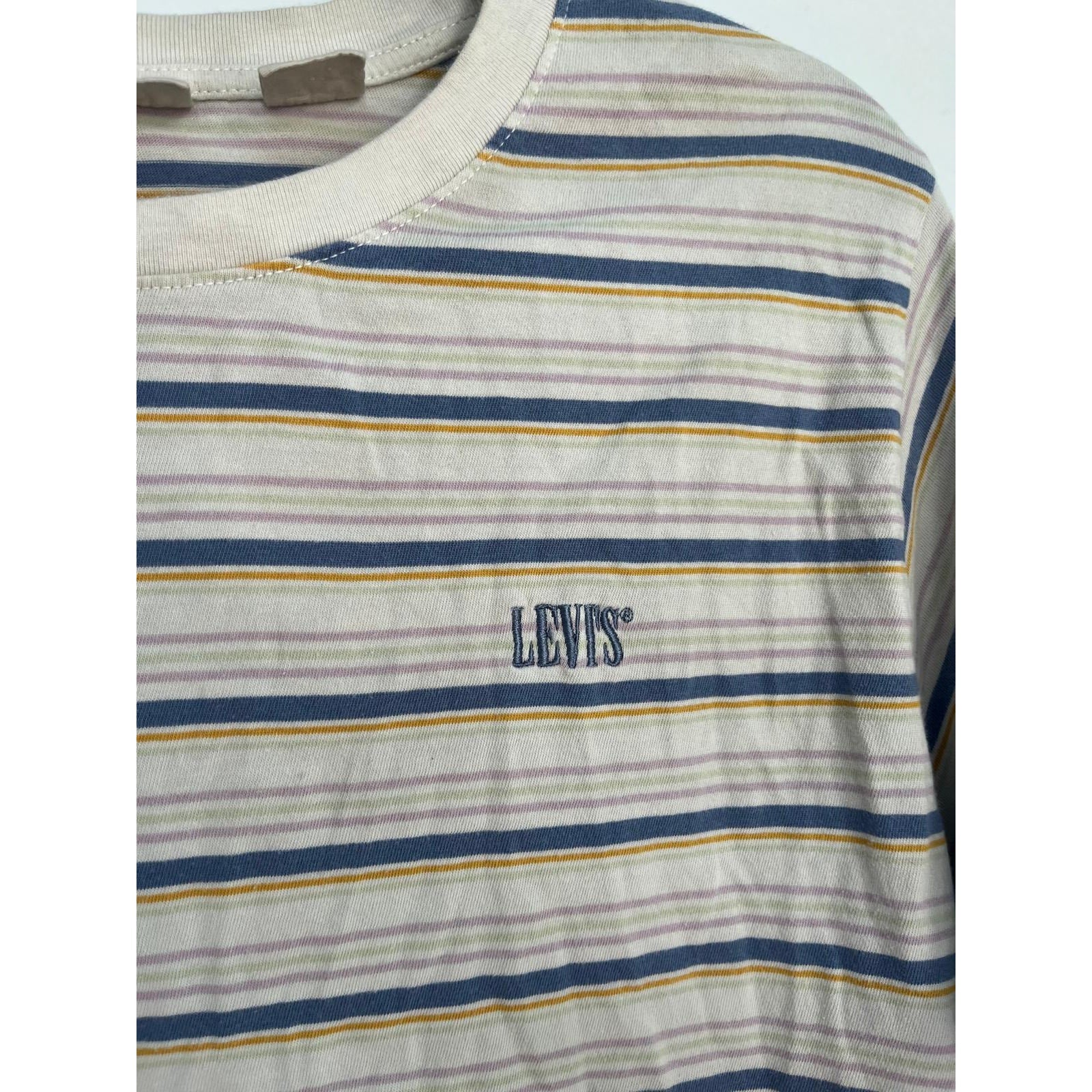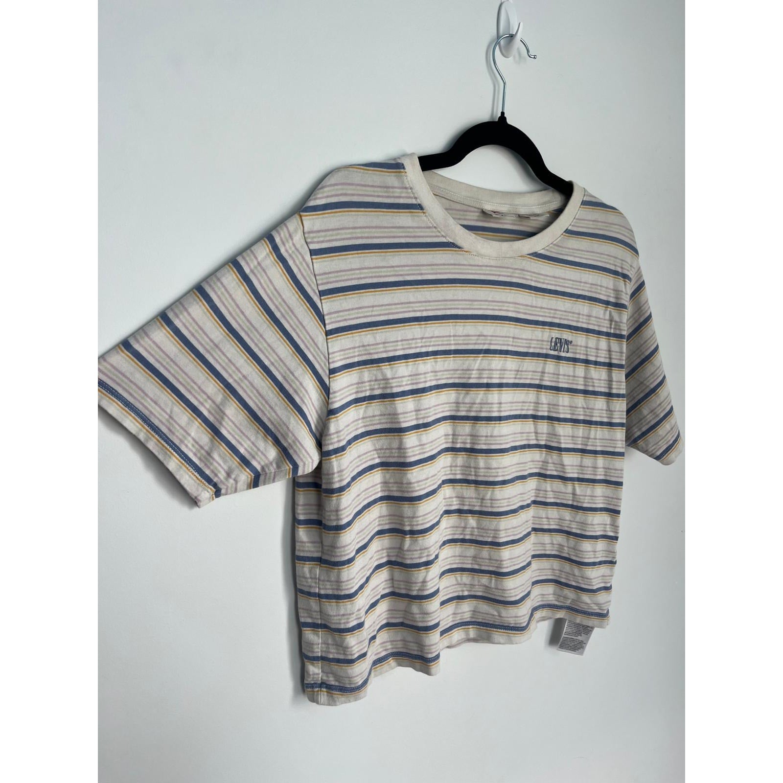 Levis Striped T Shirt Women S Cream Blue Yellow Cotton Casual