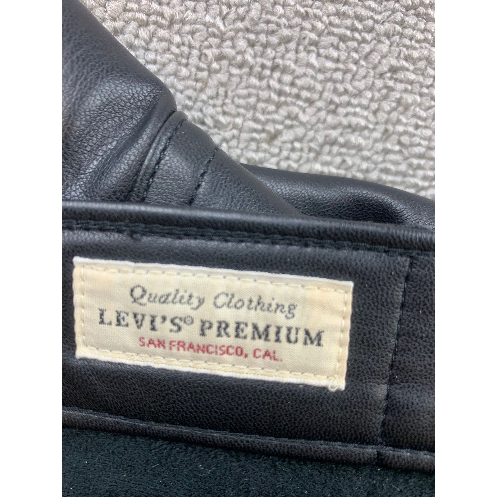 These Levi’s Premium faux leather pants feature a sleek black wide-leg straight silhouette in classic five-pocket styling—edgy yet versatile for both casual and elevated looks. The high-rise fits comfortably, with a clean finish ideal for pairing with boots or statement tops.