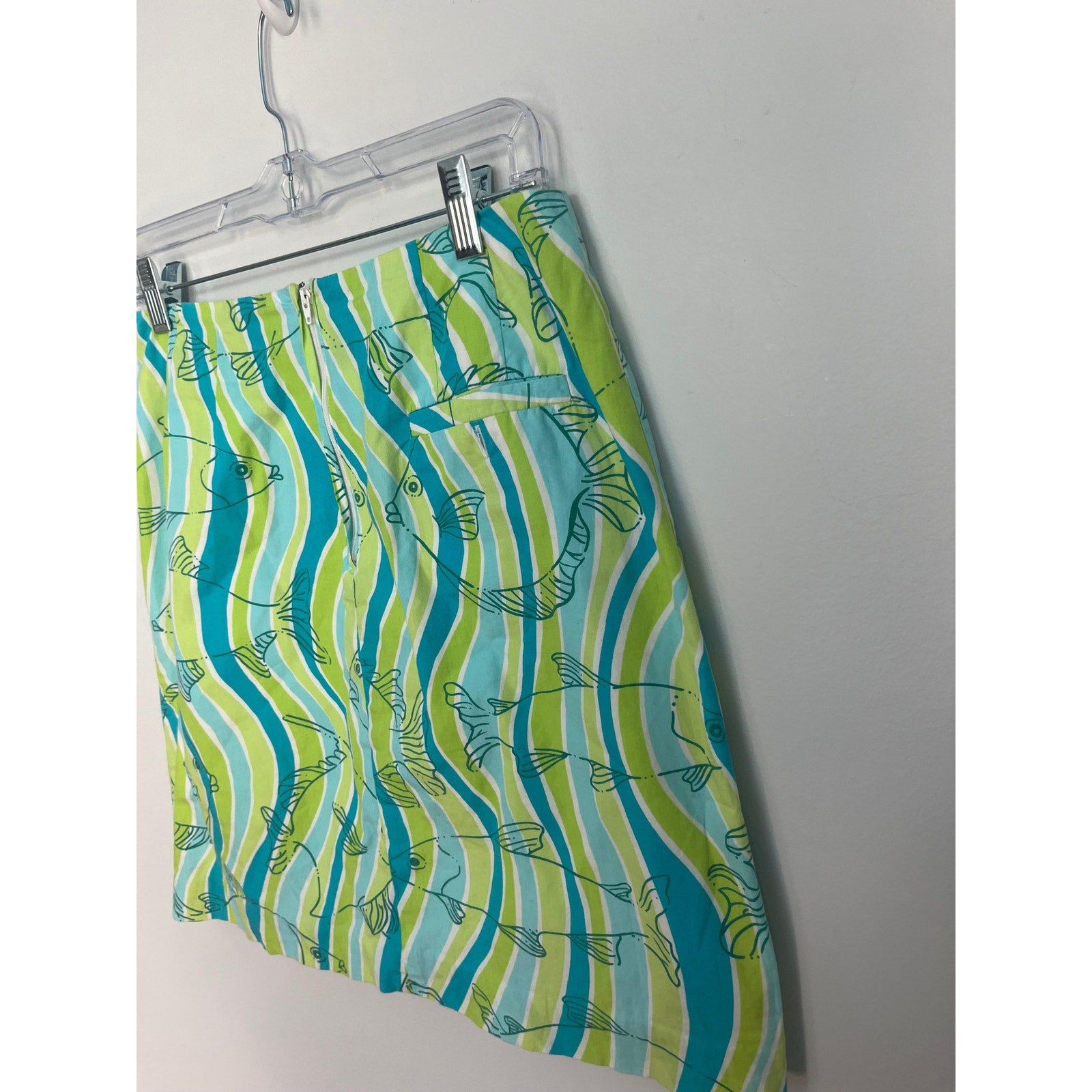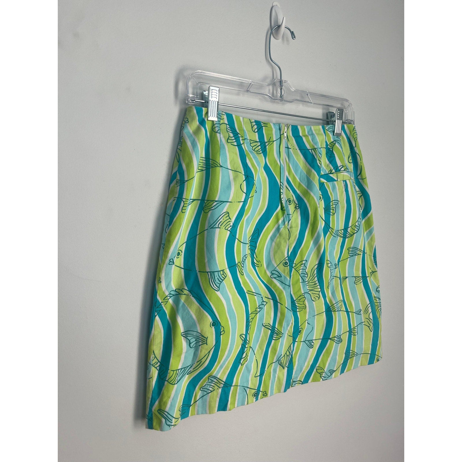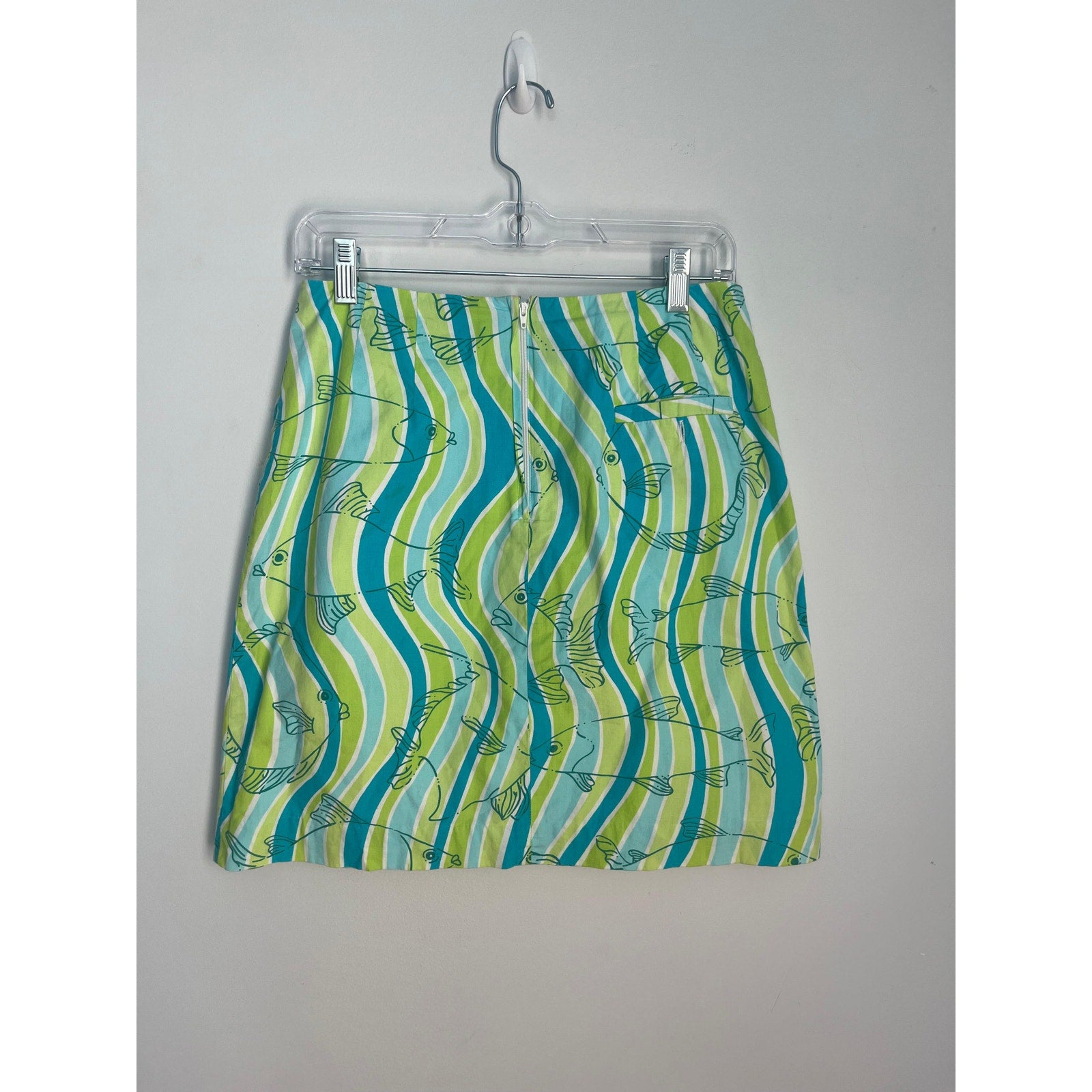 Lilly Pulitzer Mini Vintage Skirt Women 6 Green Blue Fish Print Cotton Beach