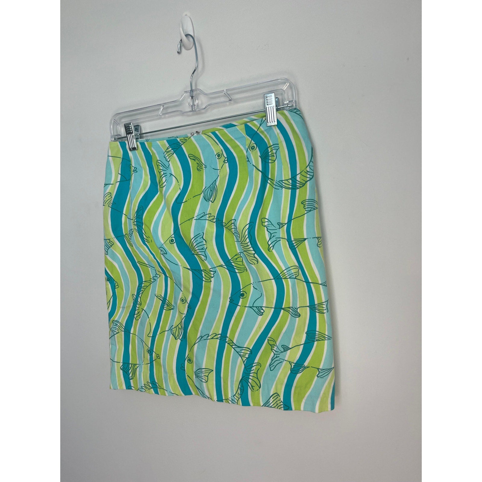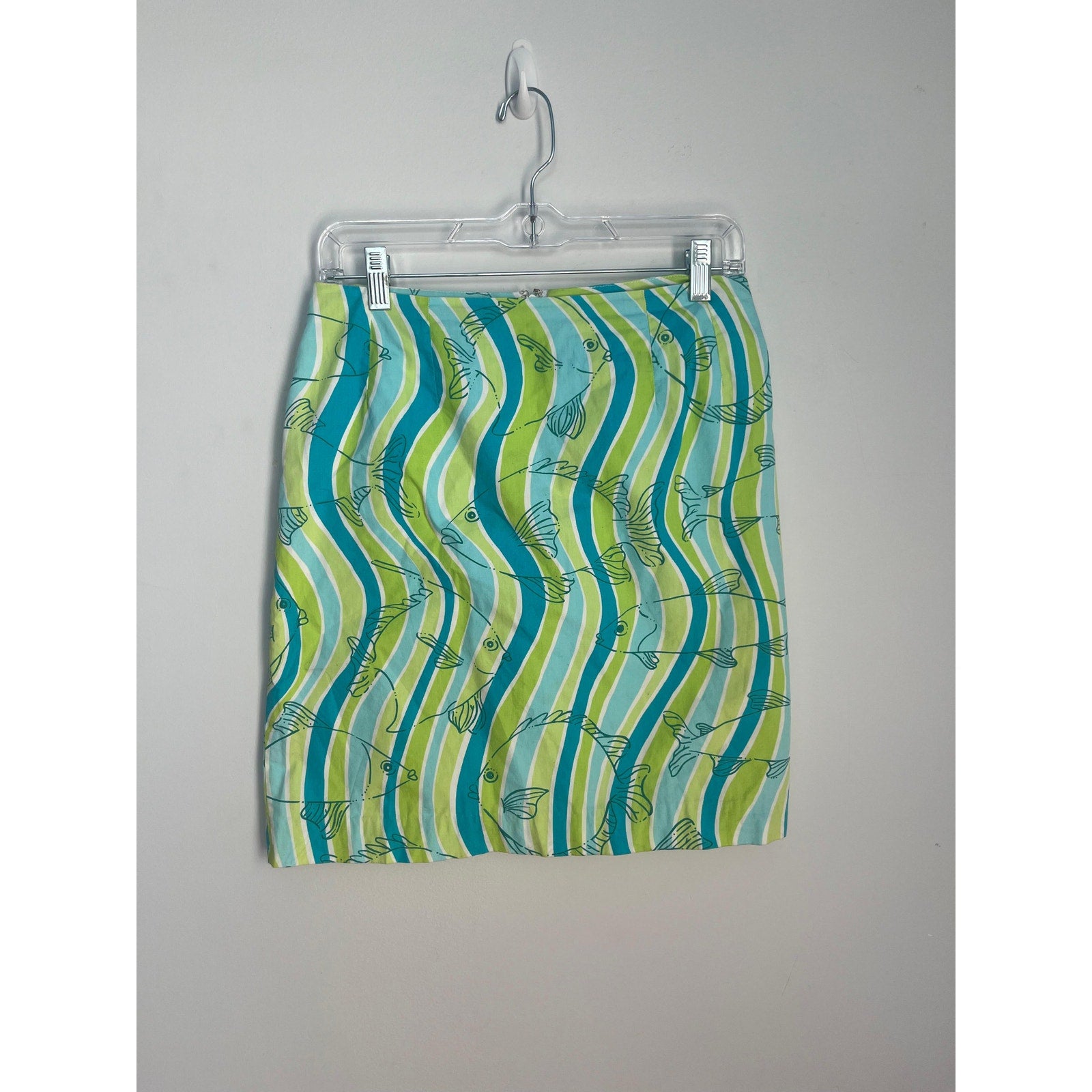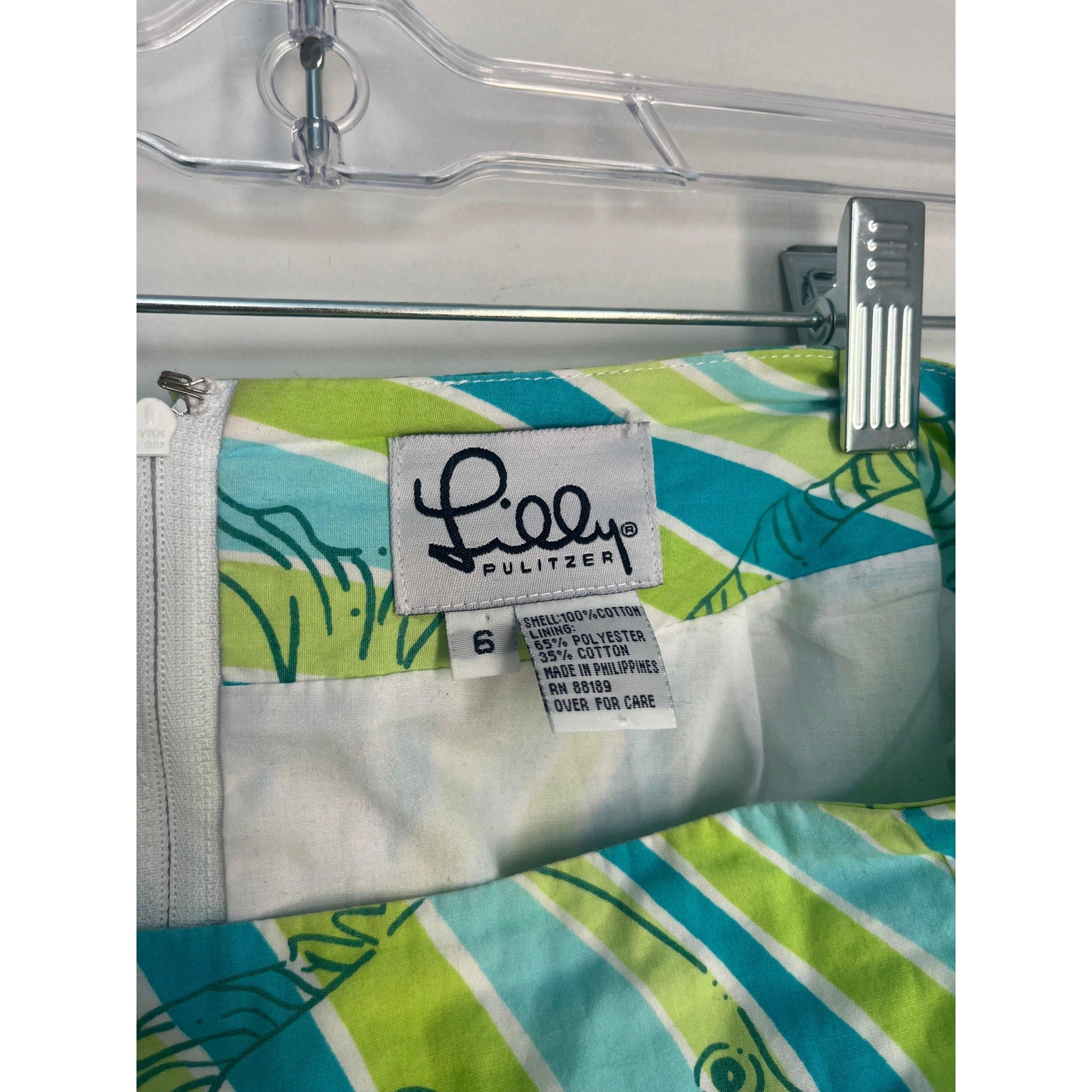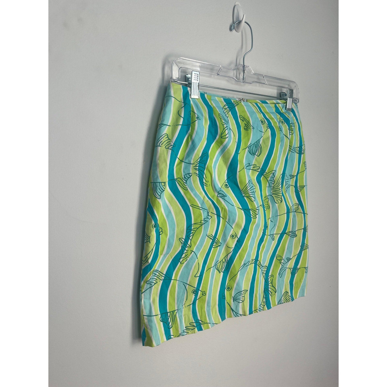 Lilly Pulitzer Mini Vintage Skirt Women 6 Green Blue Fish Print Cotton Beach
