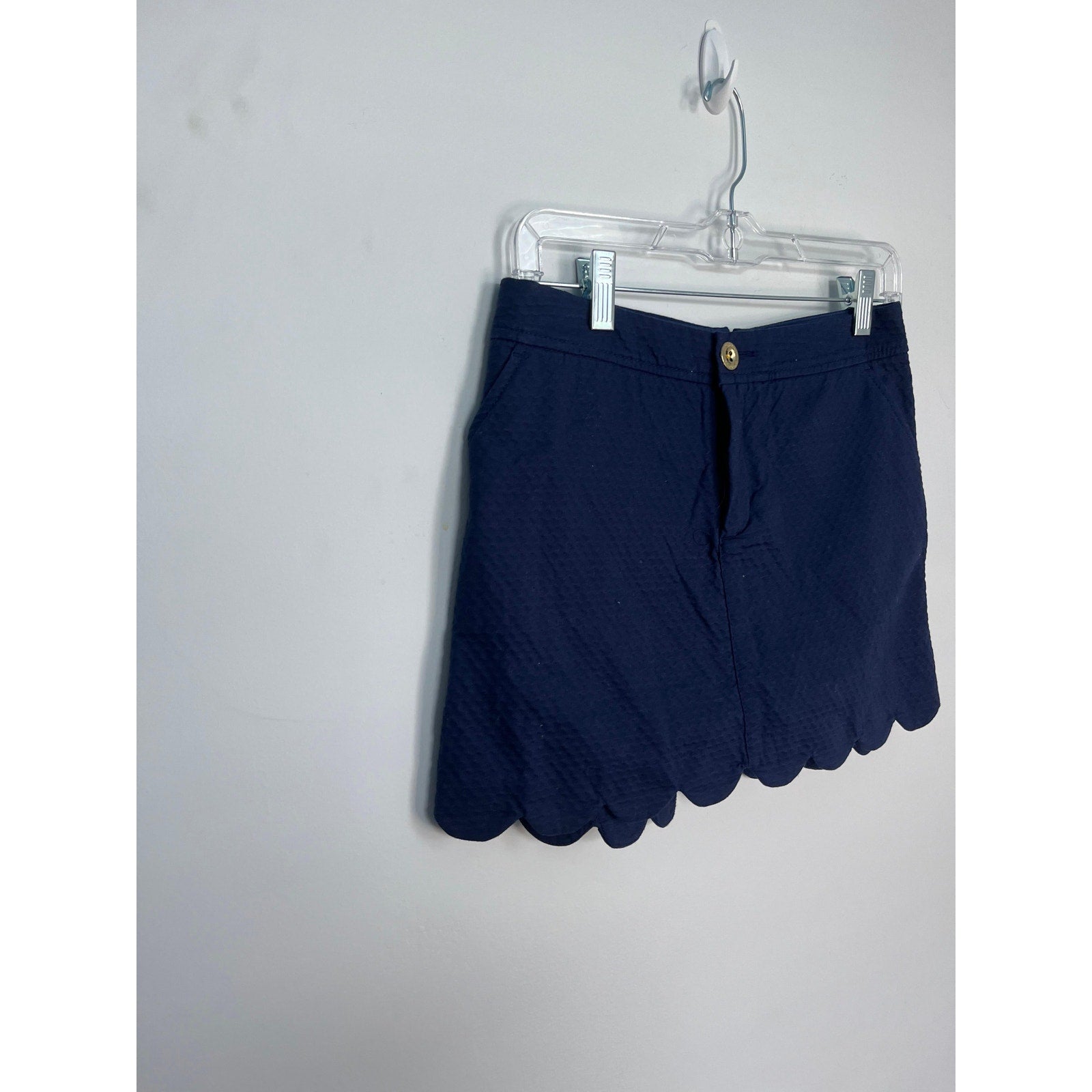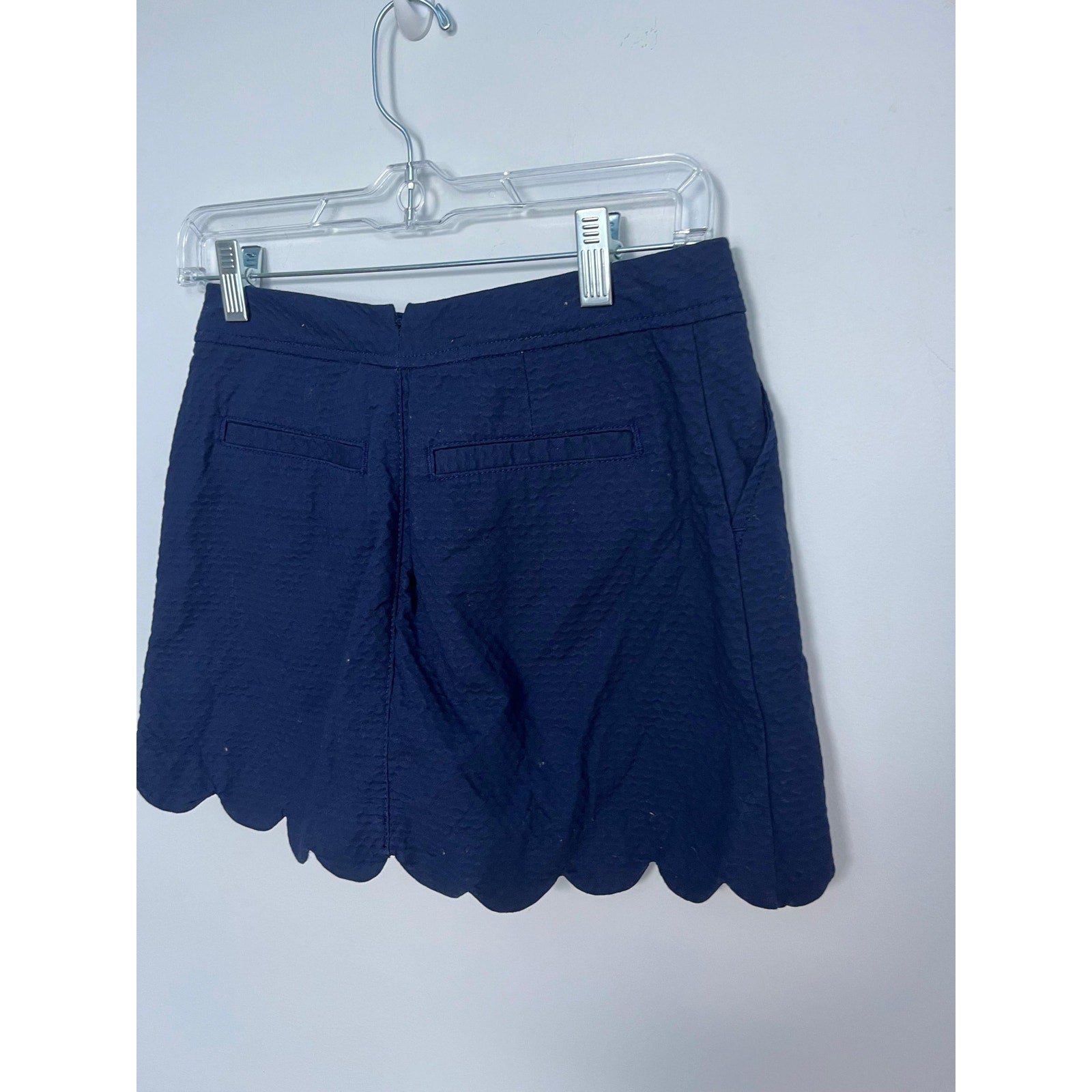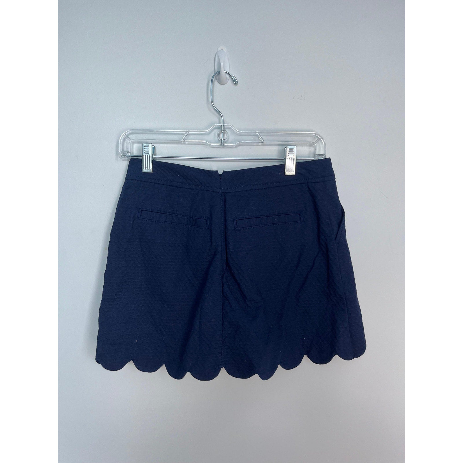 Lilly Pulitzer Scallop Hem Mini Skirt Women 0 Navy Blue Textured Cotton Blend