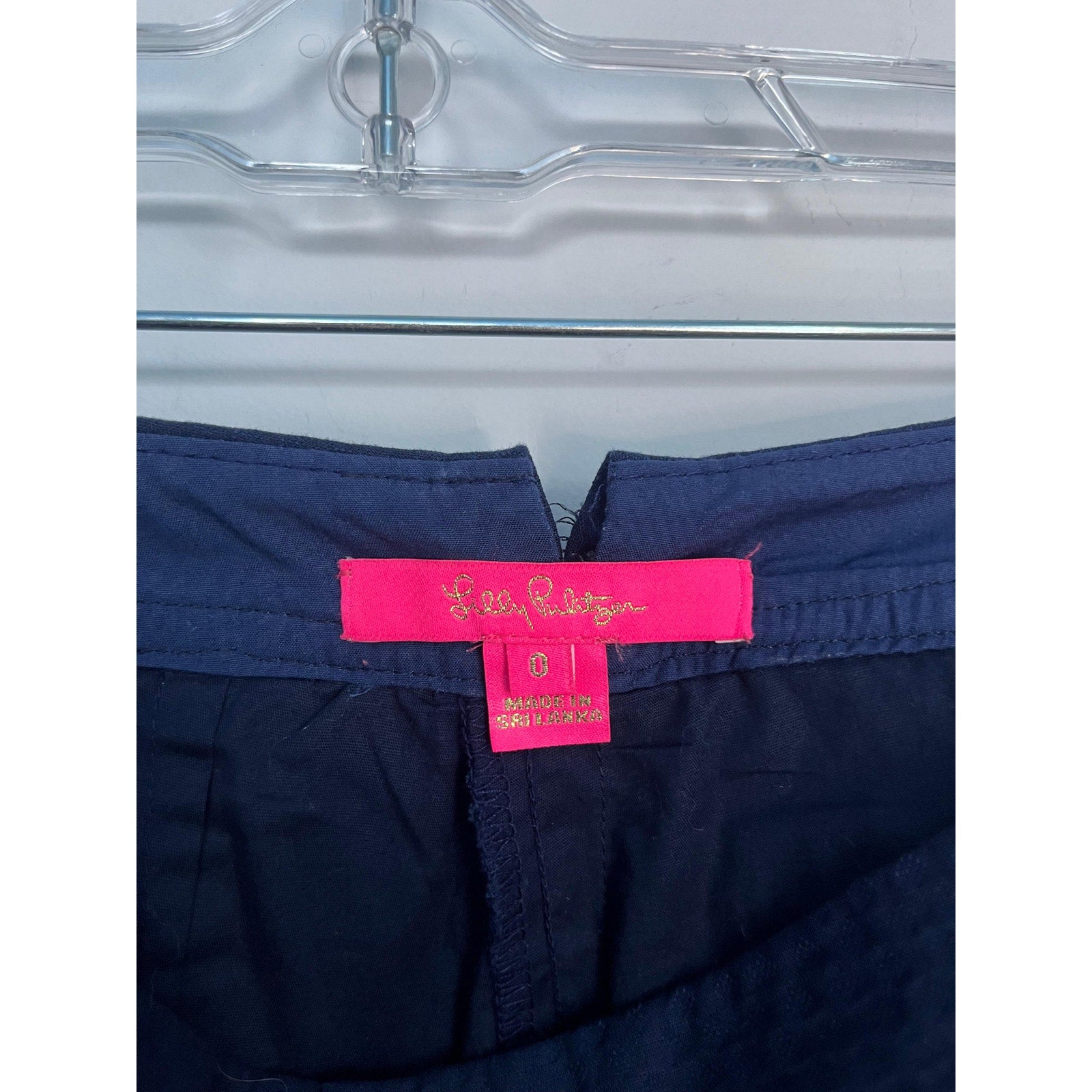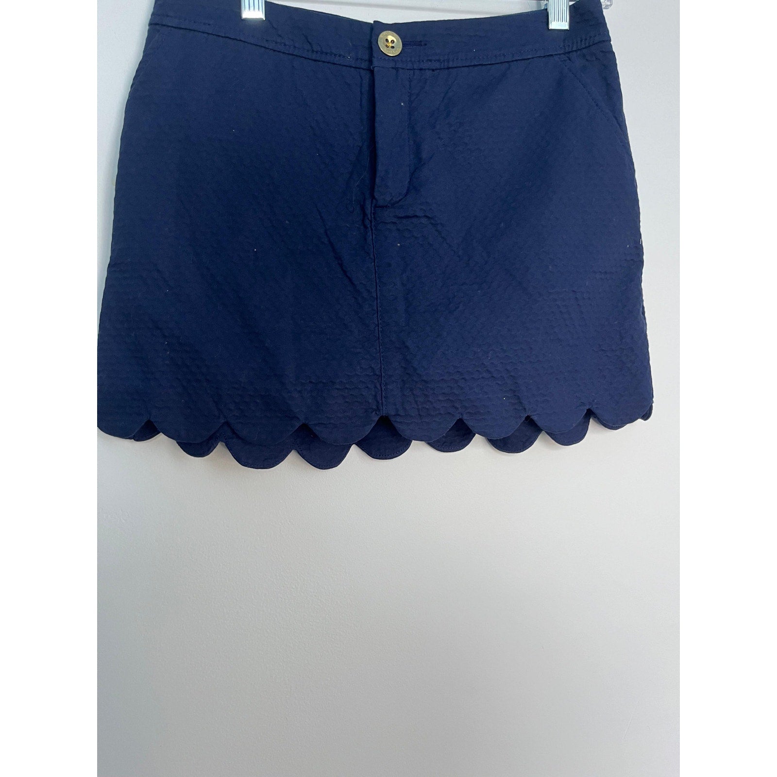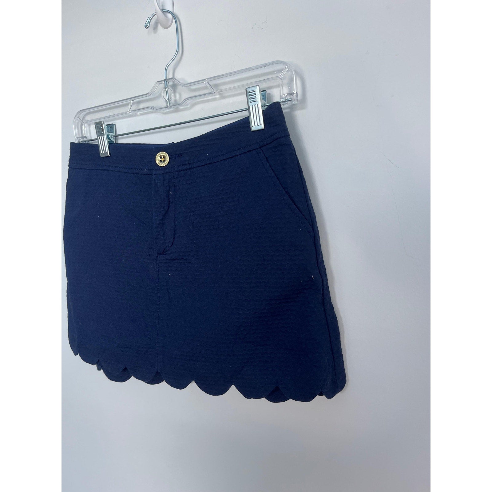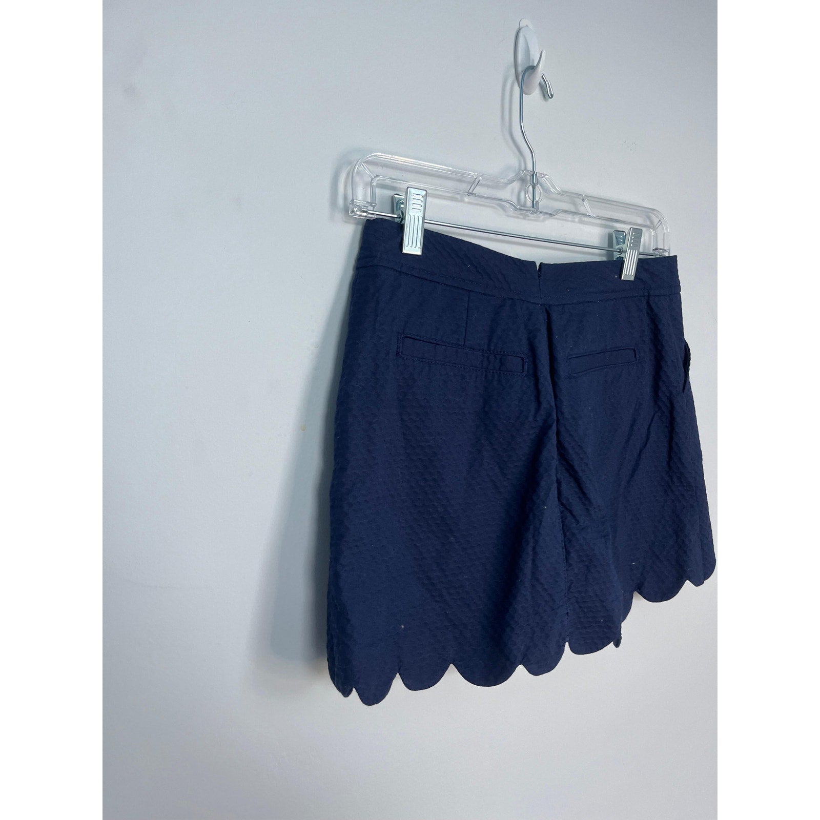 Lilly Pulitzer Scallop Hem Mini Skirt Women 0 Navy Blue Textured Cotton Blend