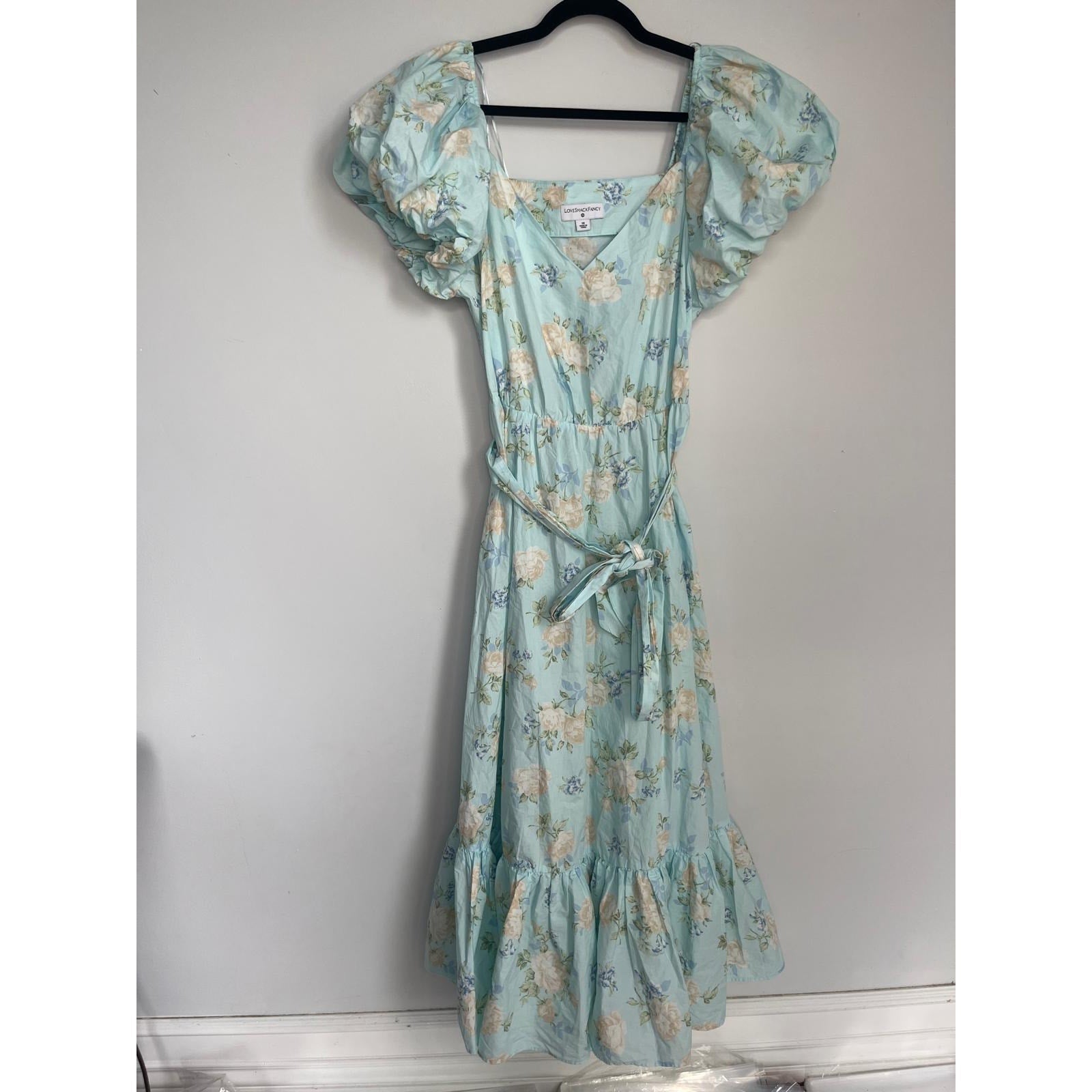 LoveShackFancy x Target Floral Midi Dress Women 10 Puff Sleeve Ruffle Hem