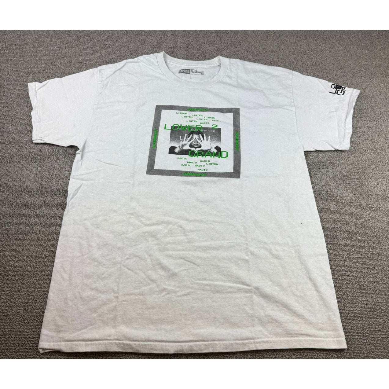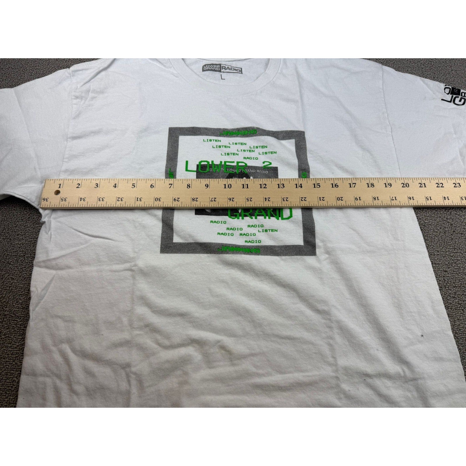 Lower Grand Radio Men's Large White Green Graphic Print Jamming Tshirt