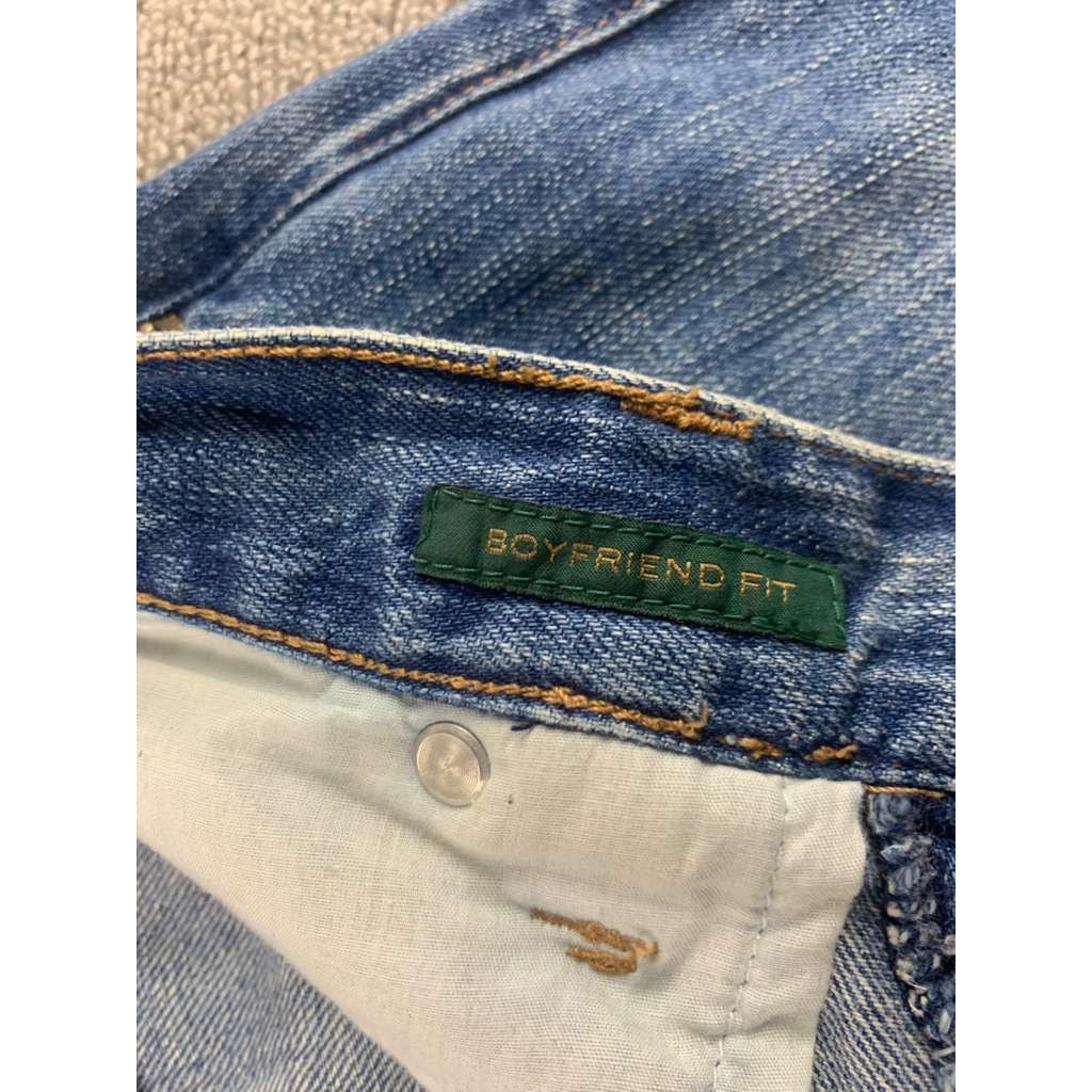 Classic LRL boyfriend fit jeans in a light blue wash with subtle whiskering and rolled cuffs. Five-pocket style, zip fly.