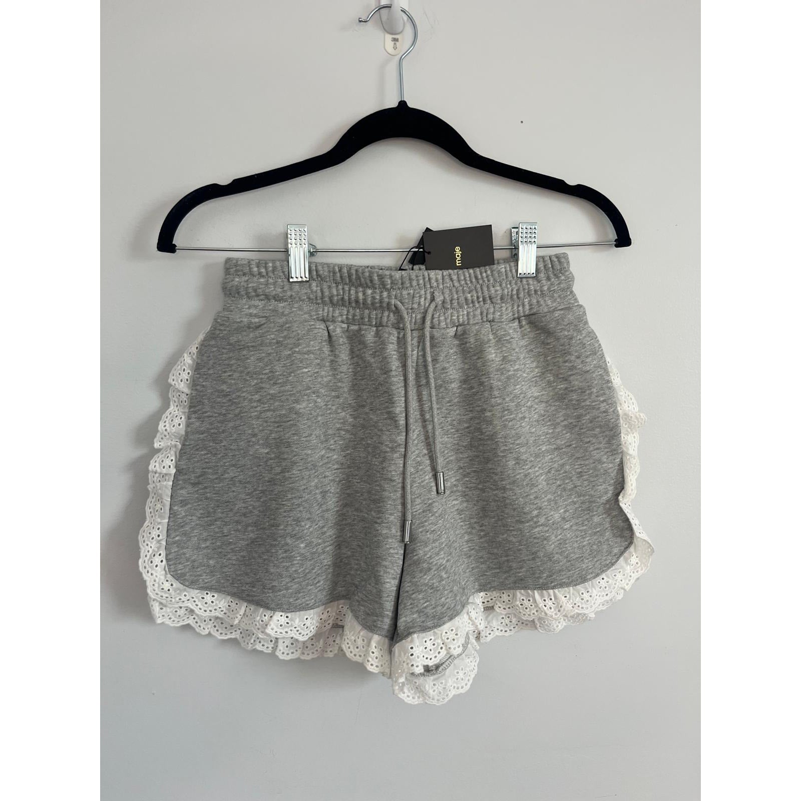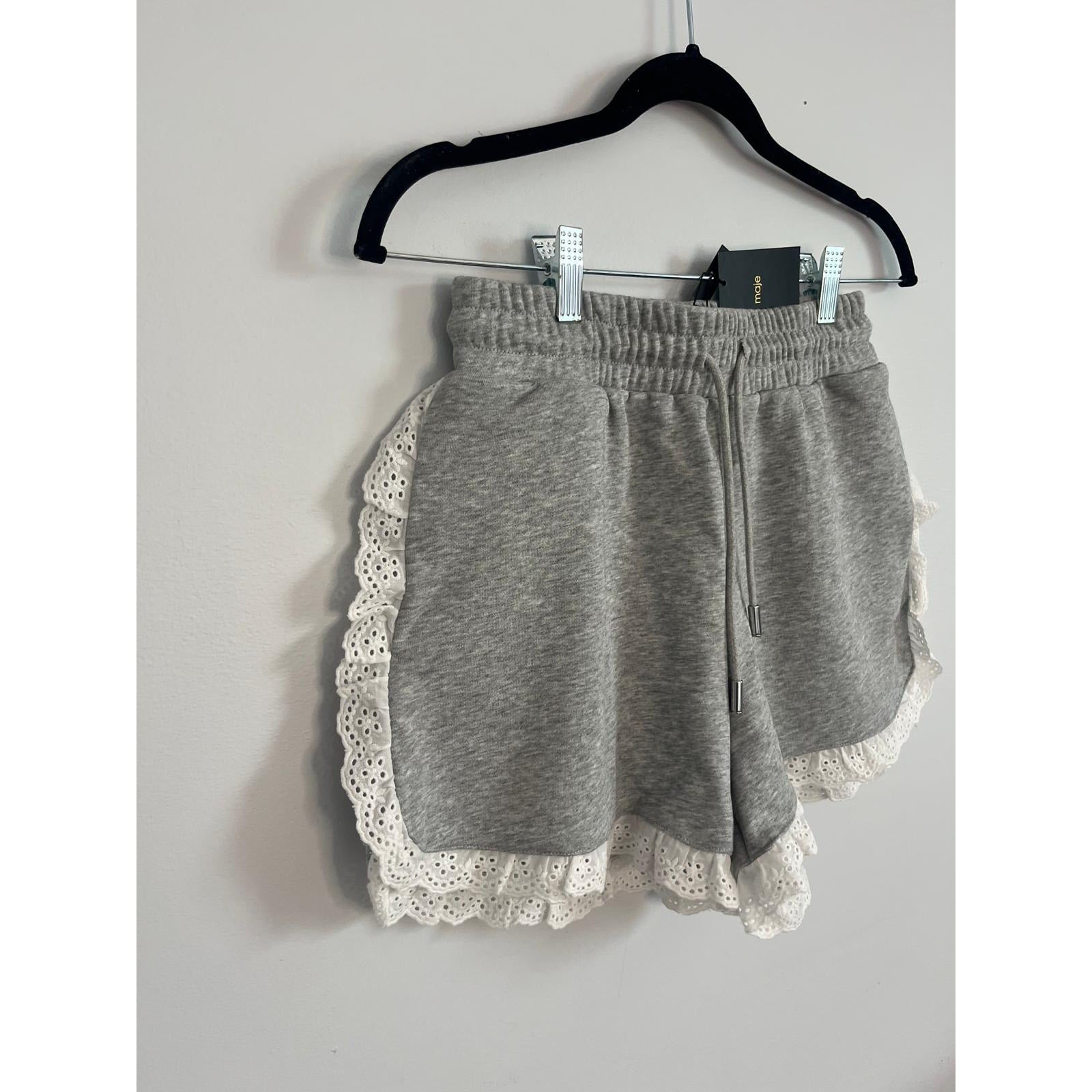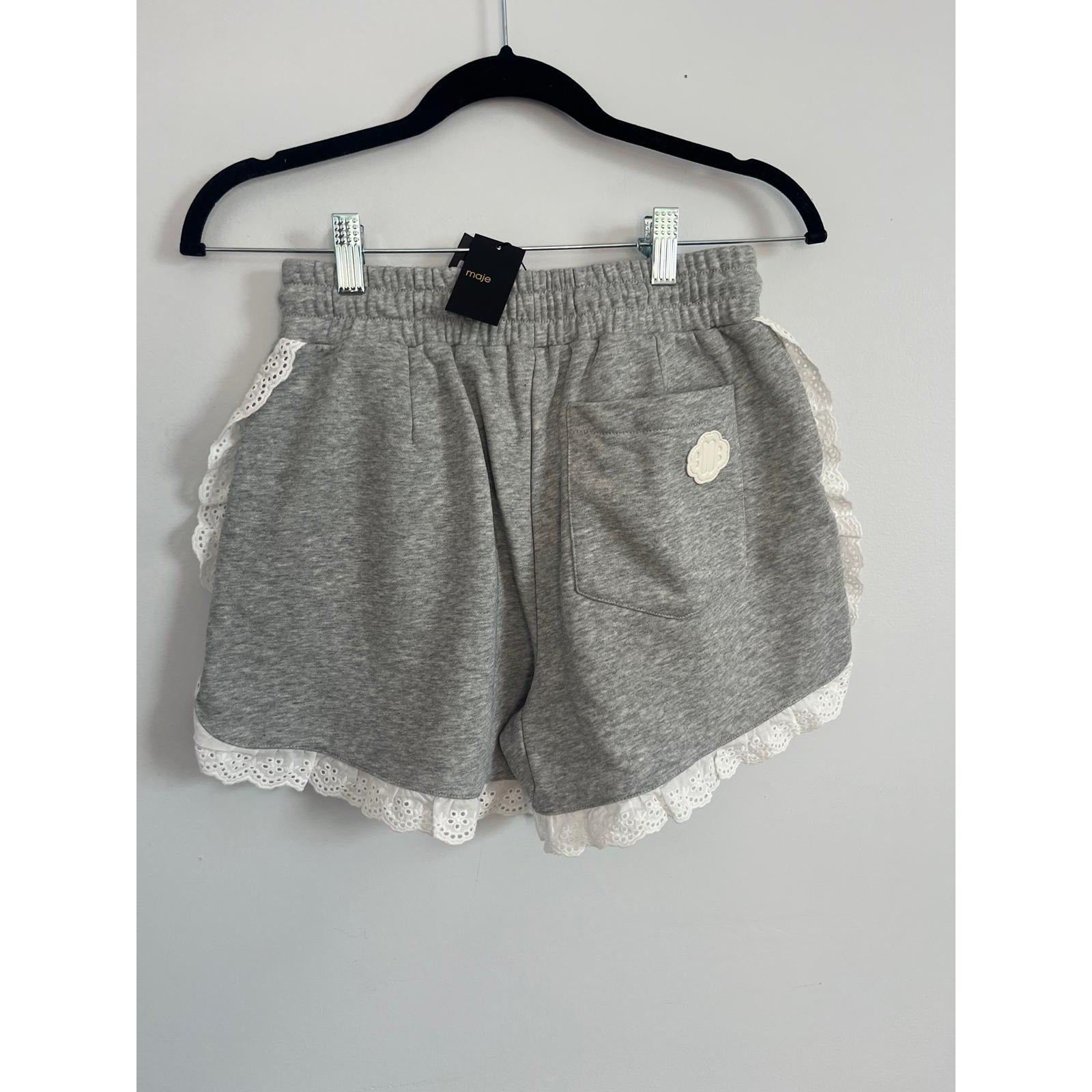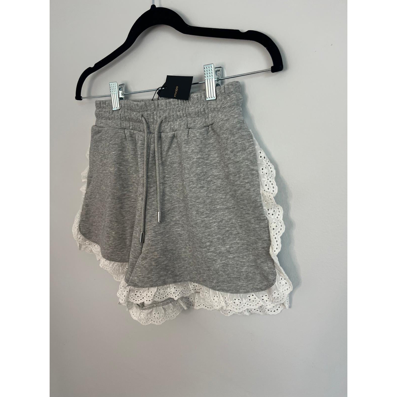 Maje Eyelet Trim Sweat Shorts Women 36 Gray White Ruffle Hem Lounge