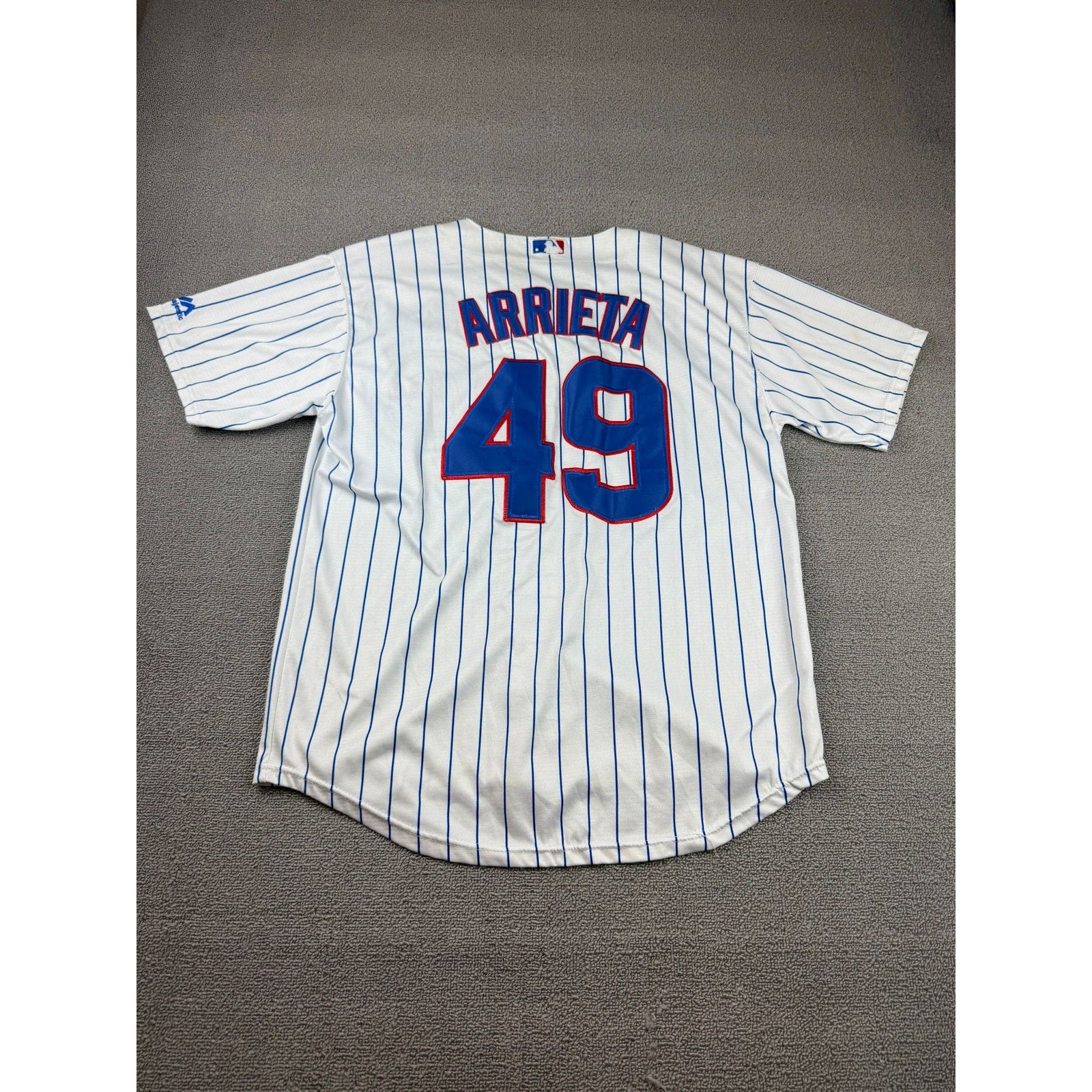 Majestic Chicago Cubs CoolBase Pinstripe Jake Arrieta #49 Baseball Jersey Size M