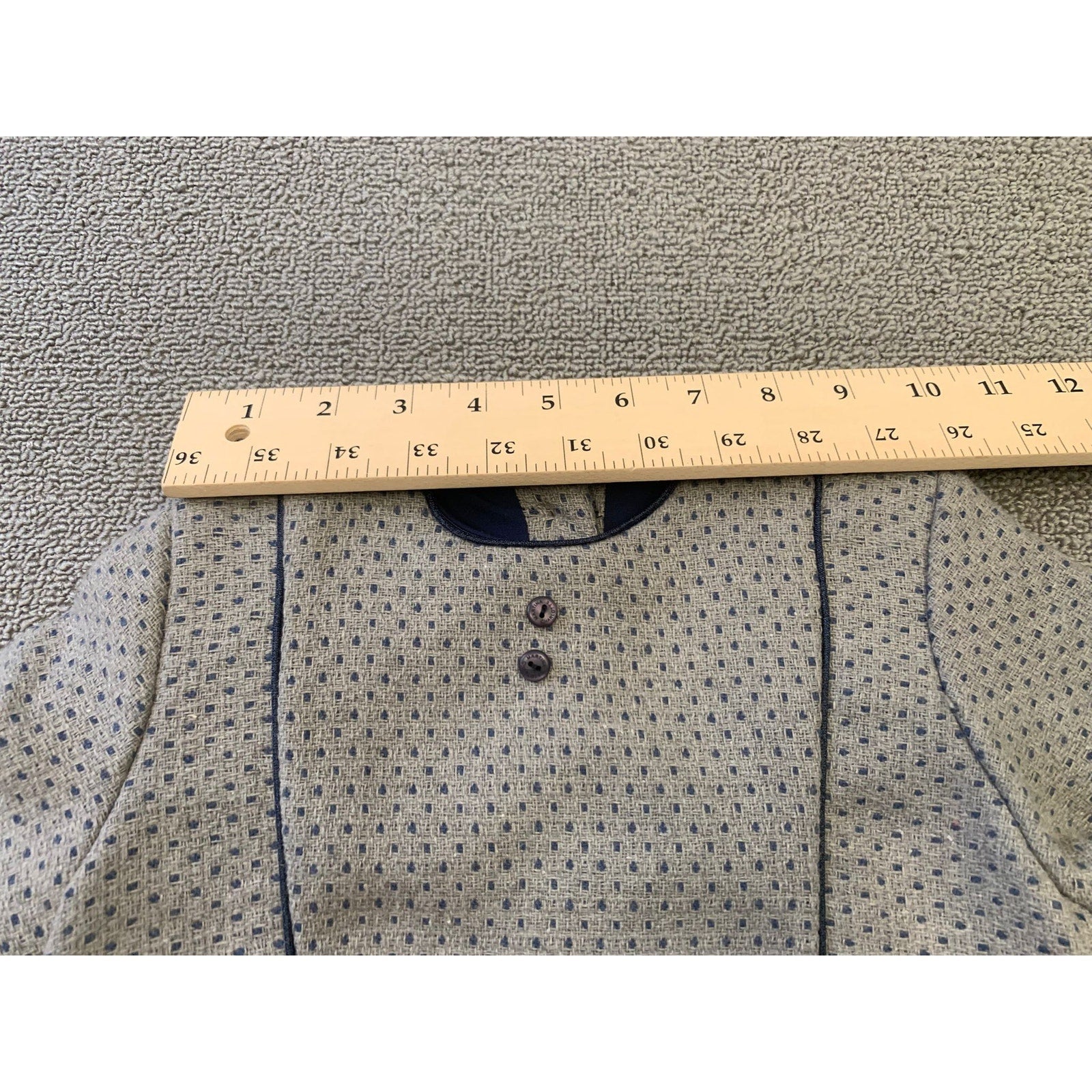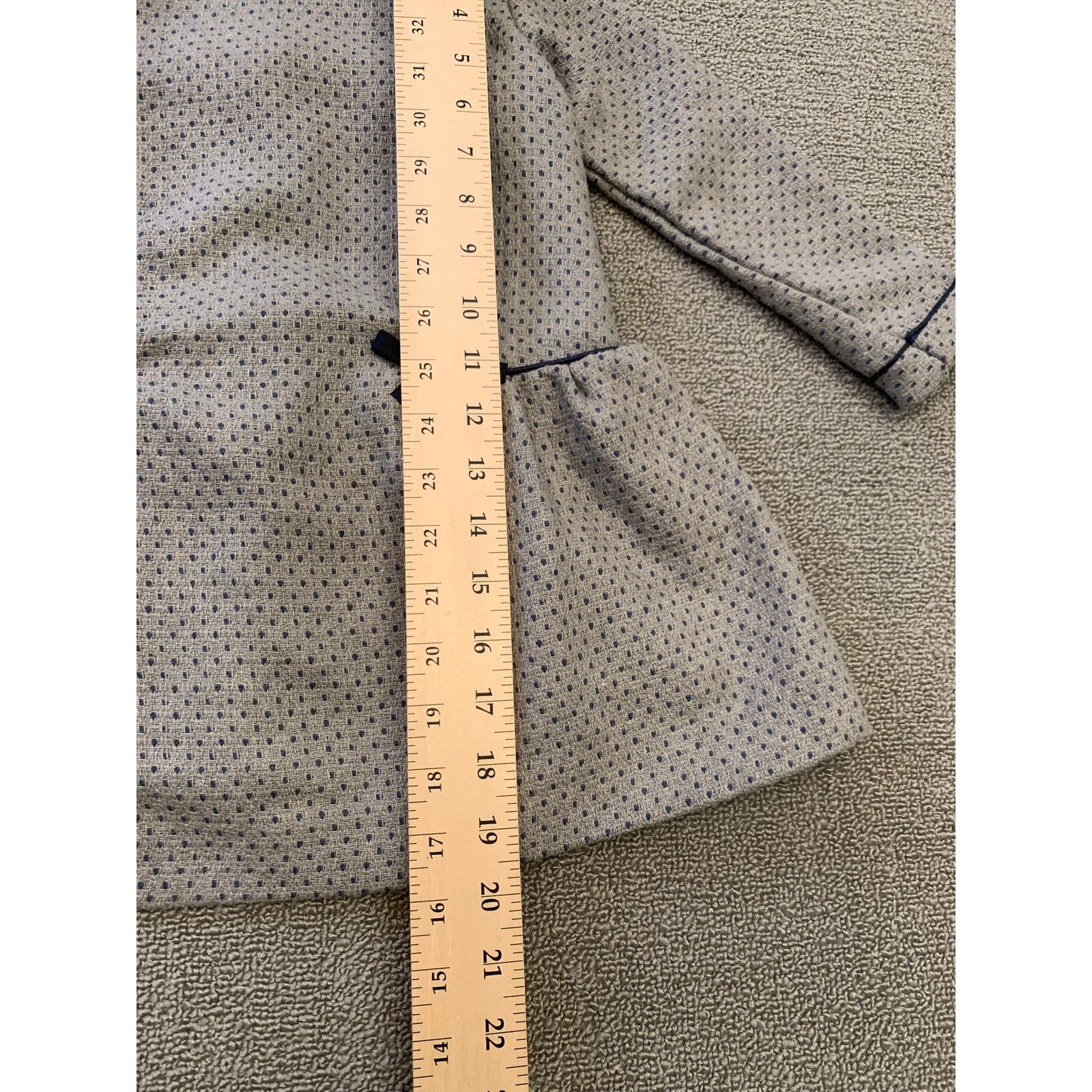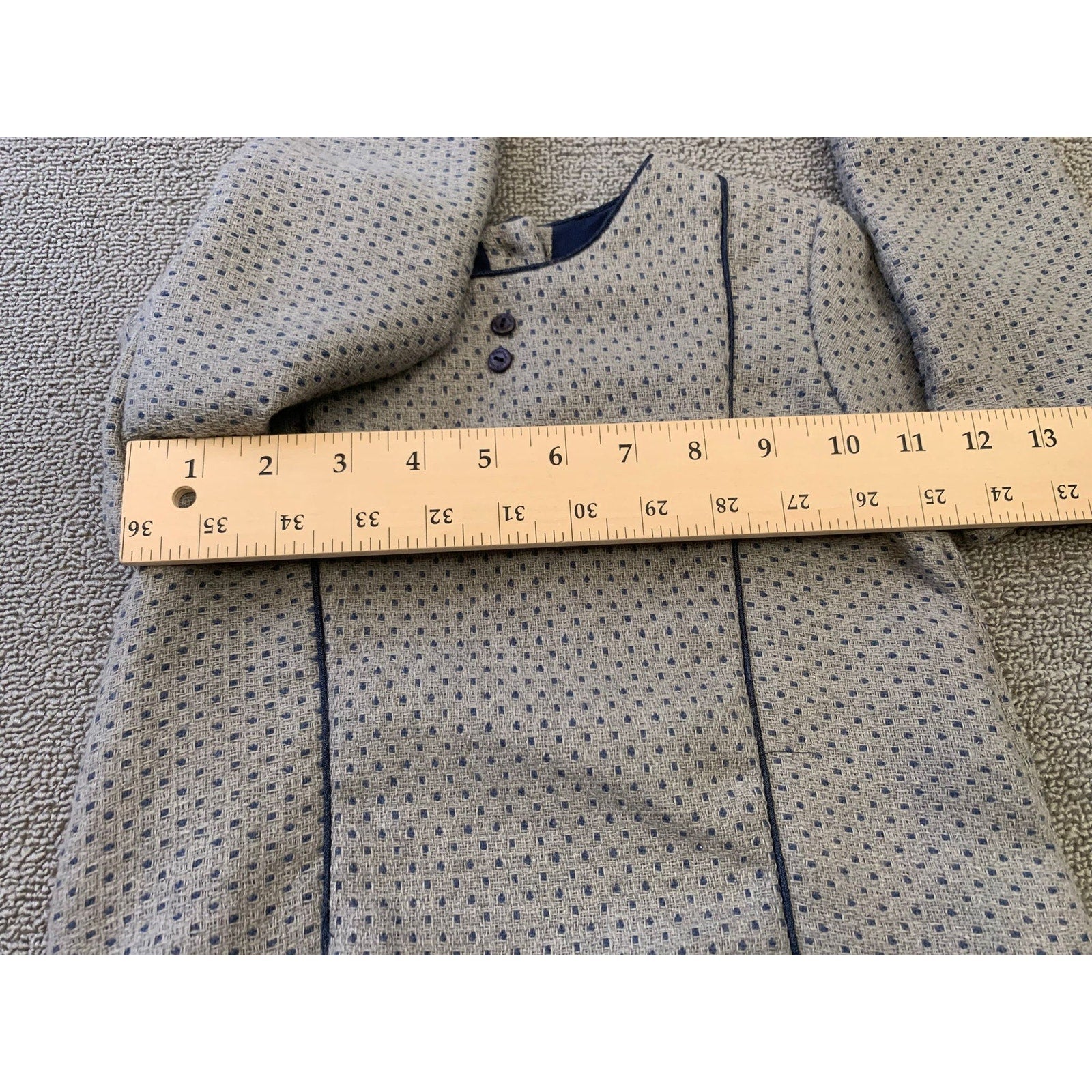 Martine Charlotte girls’ long sleeve dress in gray with subtle blue dotted pattern. Features navy trim, button front detail, small bow accent at waist, and gathered skirt. Fully lined for comfort. A chic boutique-style dress perfect for parties, holidays, or special occasions. The tag is broken.