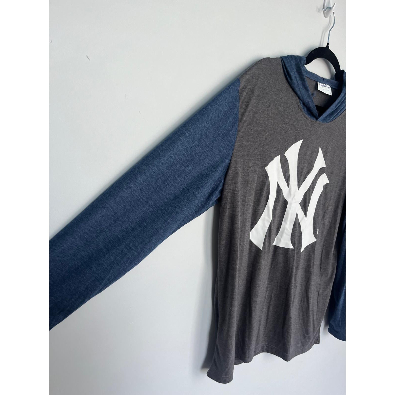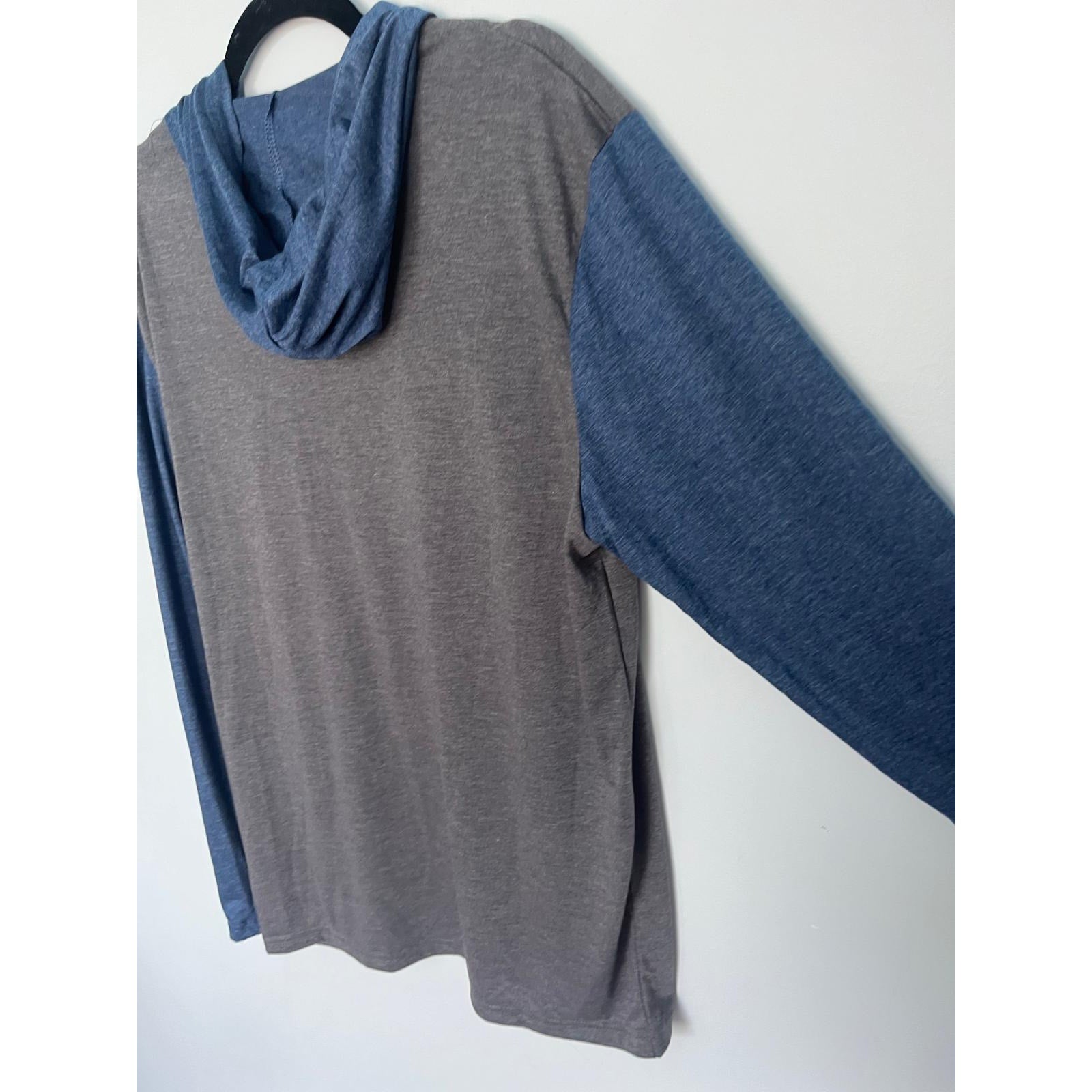 Match-Up Colorblock Hoodie Shirt Men XL Gray Blue Pullover Casual Hooded Tee