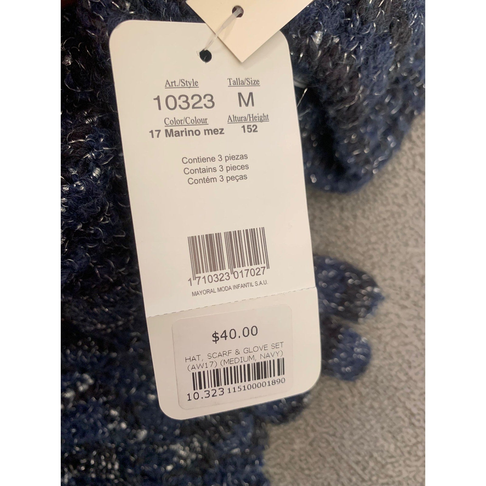 Mayoral Women Size M Navy Blue Metallic 3 in 1 Set Hat Scarf Gloves NWT