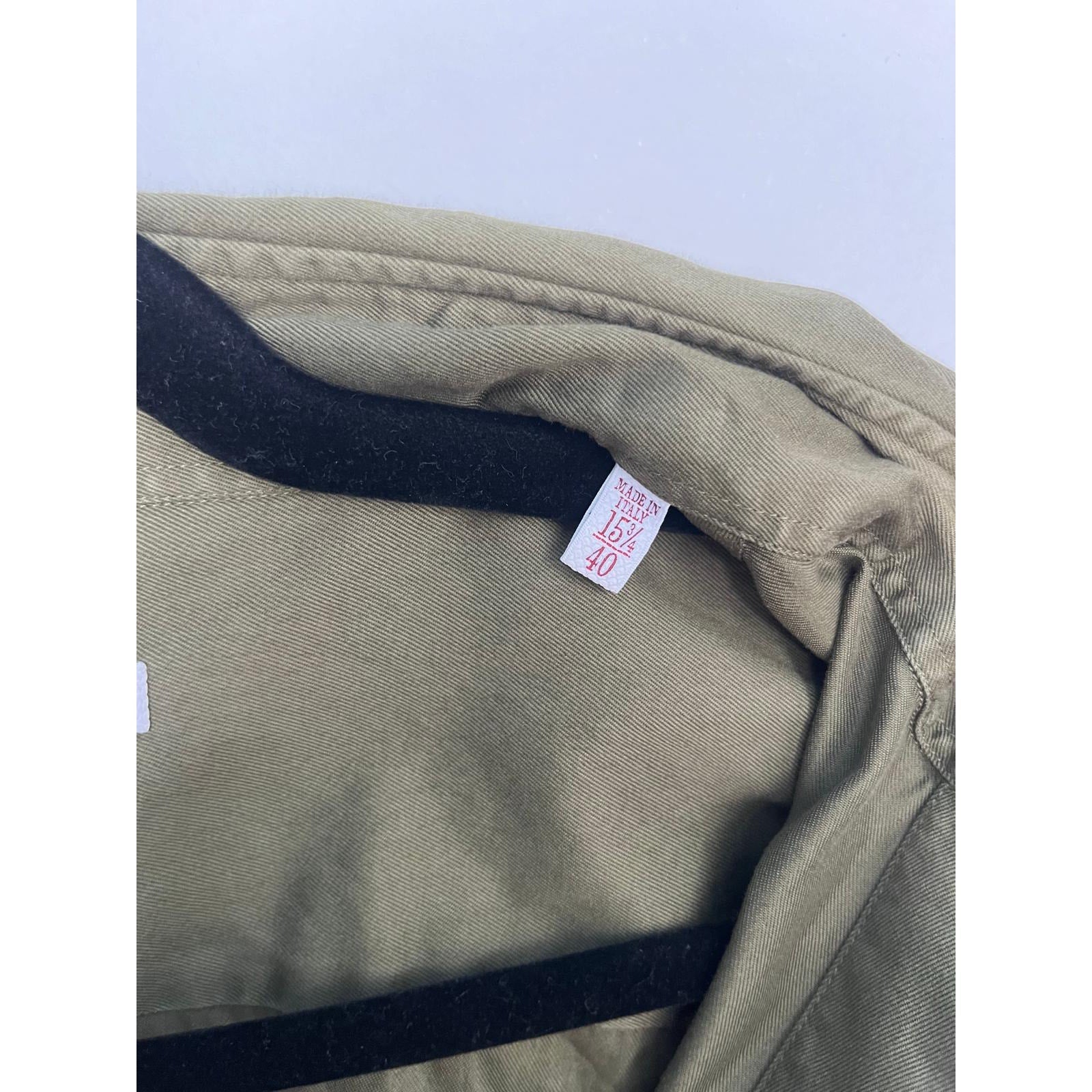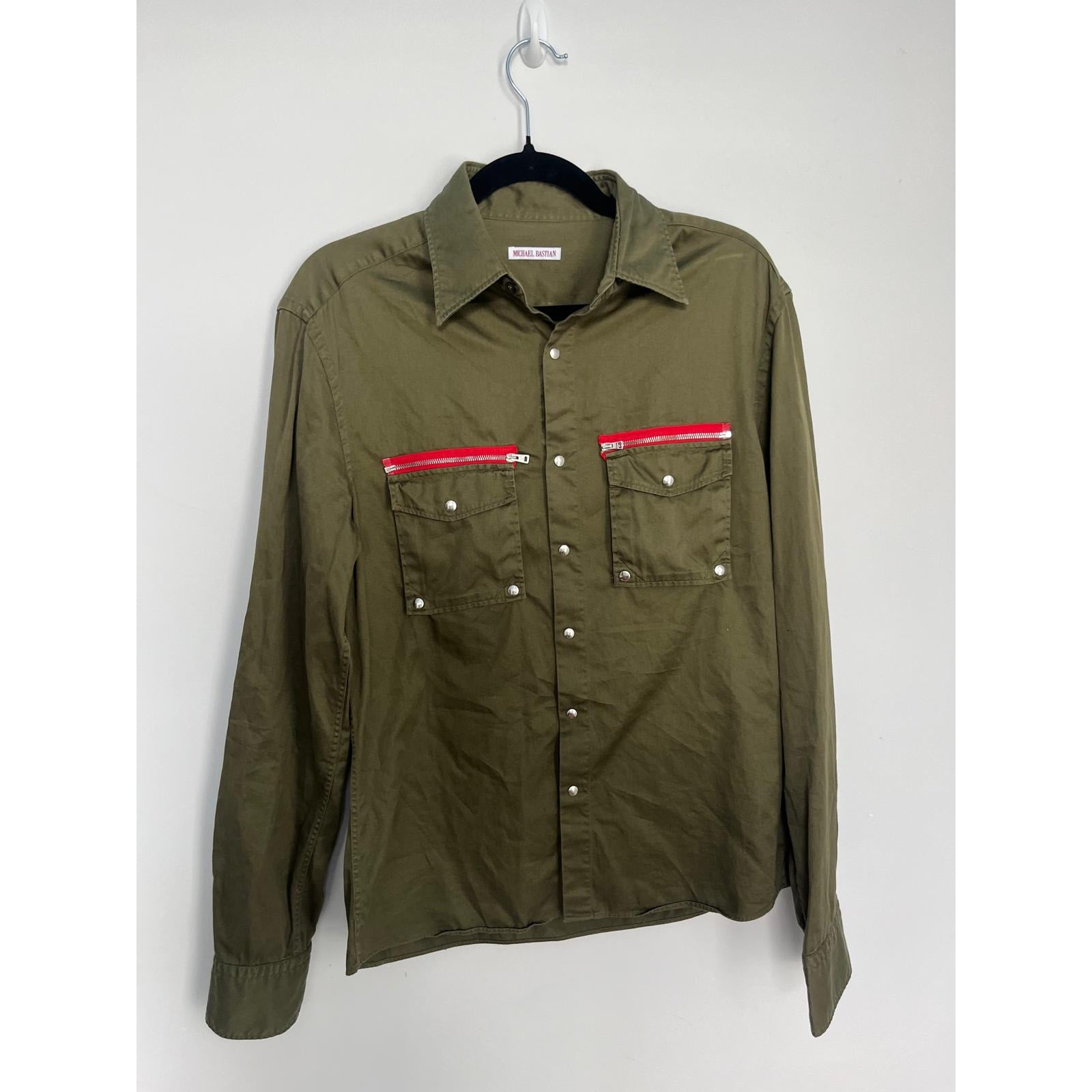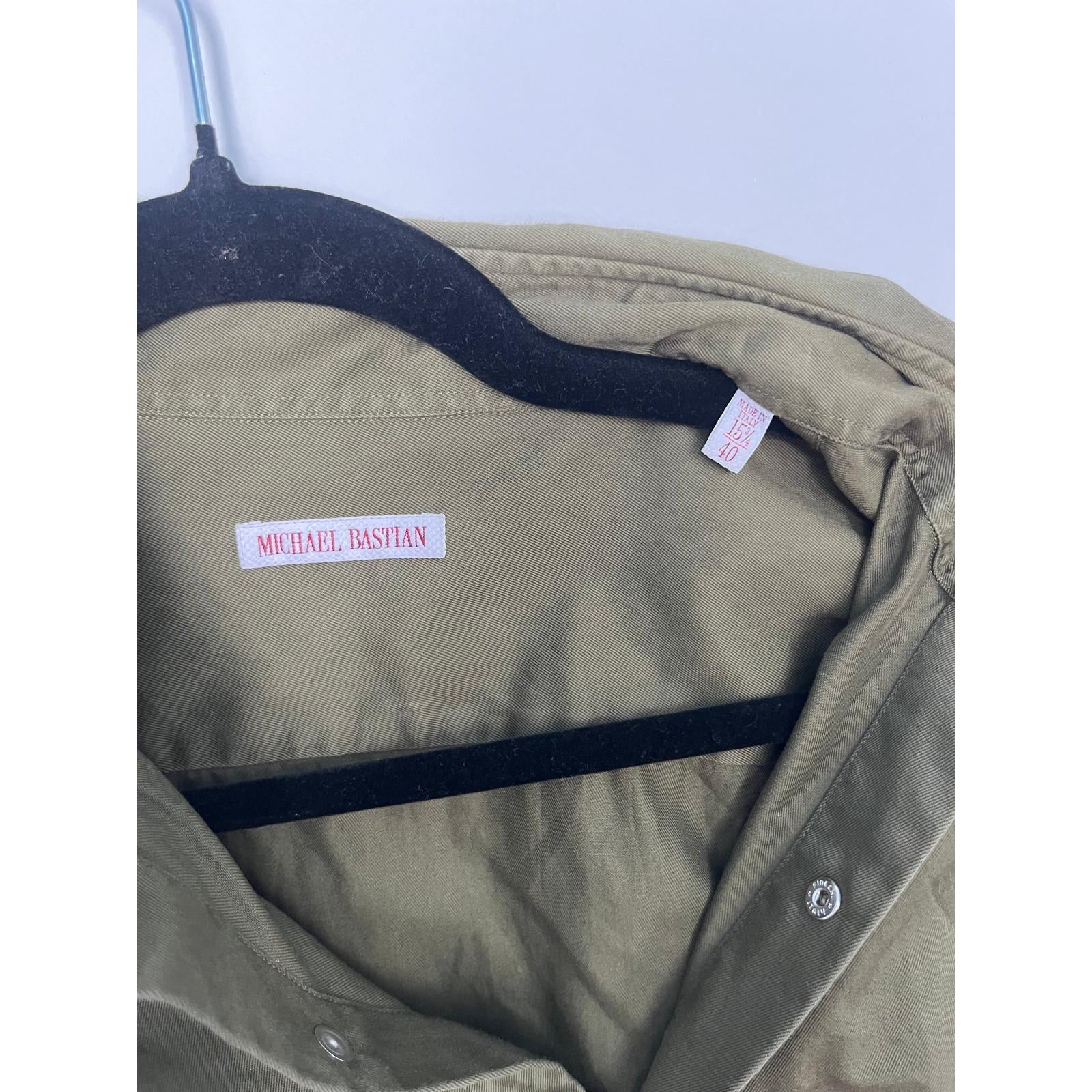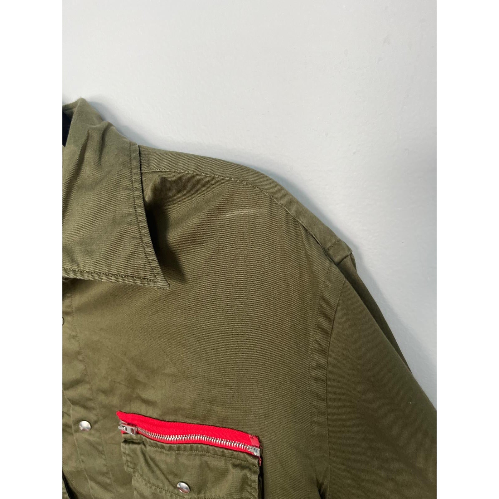 Michael Bastian Button Shirt Men 15.5 Green Cotton Red Zipper Pocket Long Sleeve
