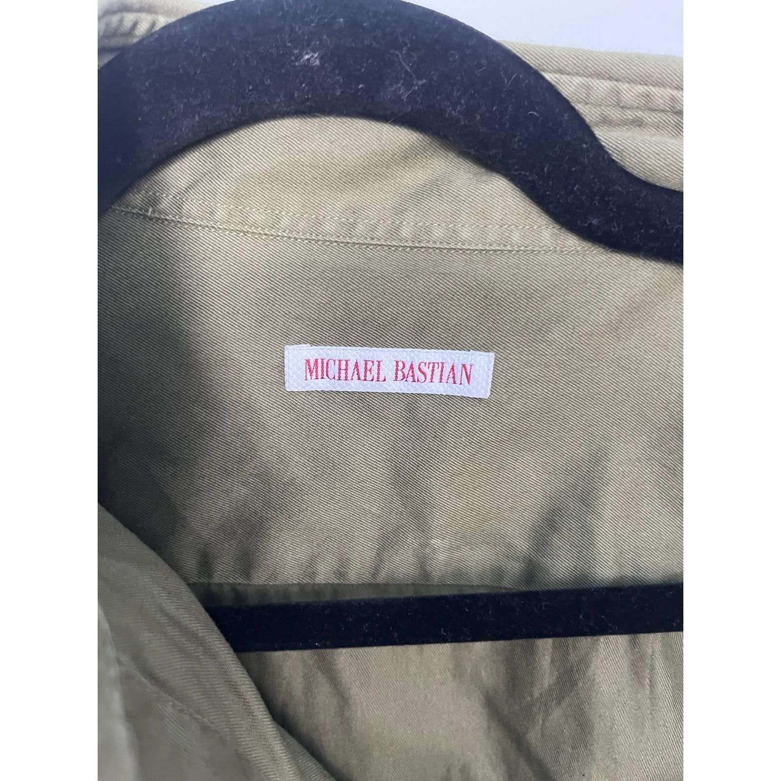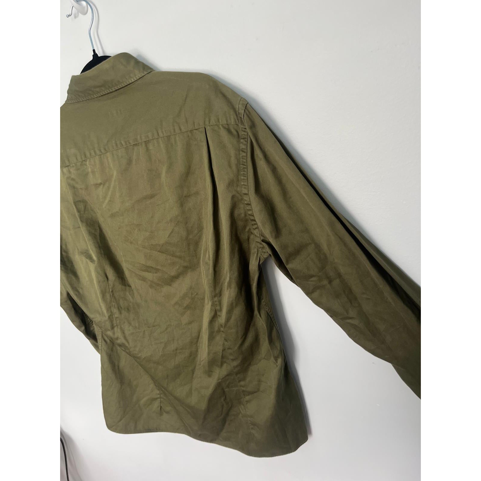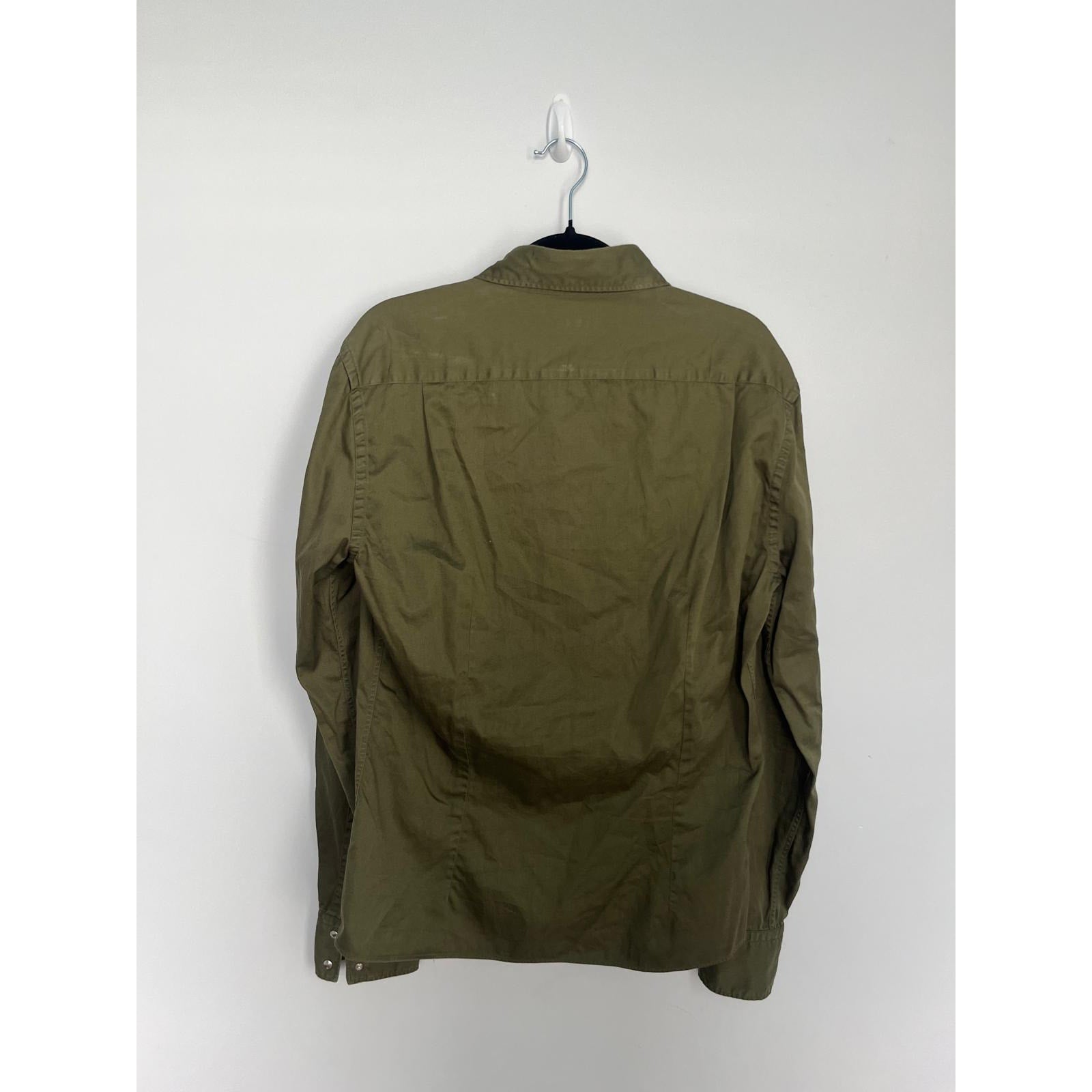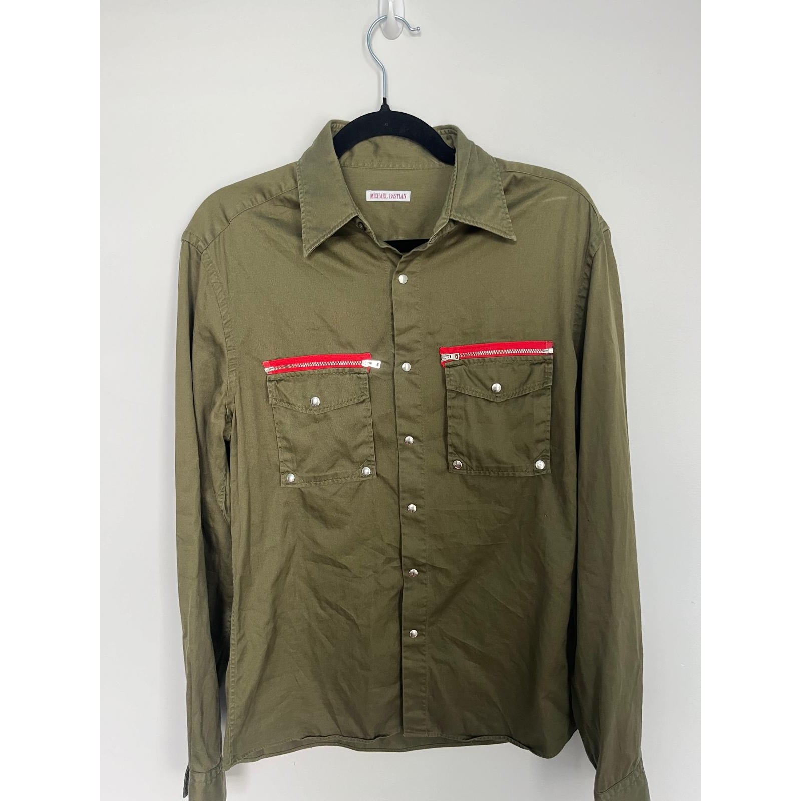 Michael Bastian Button Shirt Men 15.5 Green Cotton Red Zipper Pocket Long Sleeve