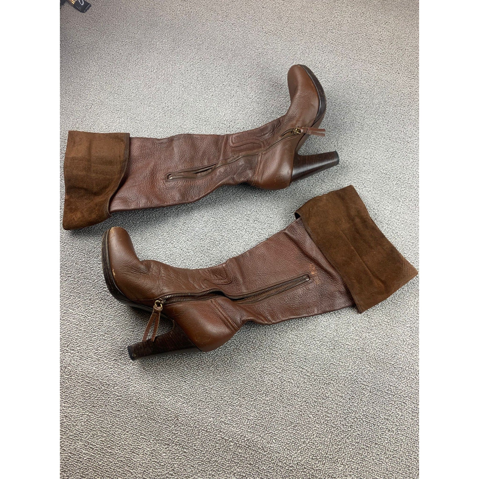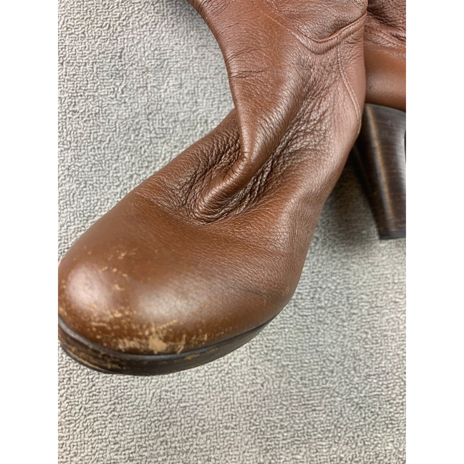 Miu Miu Women's 37.5 Brown Leather Knee High Boots