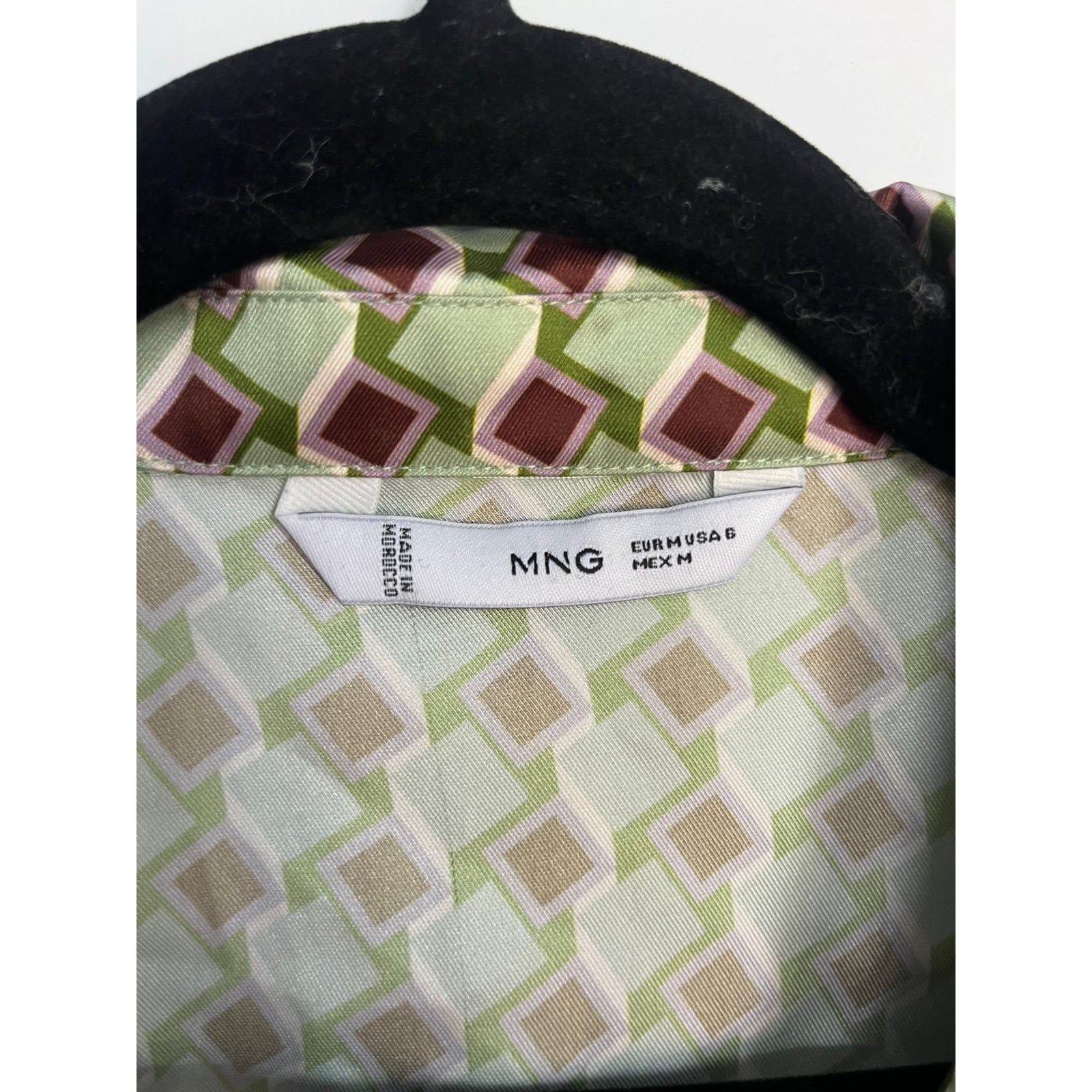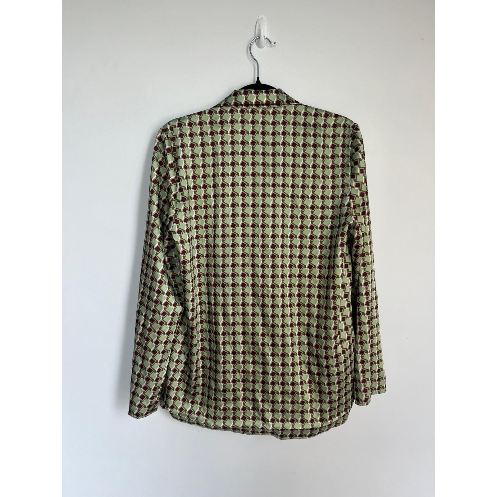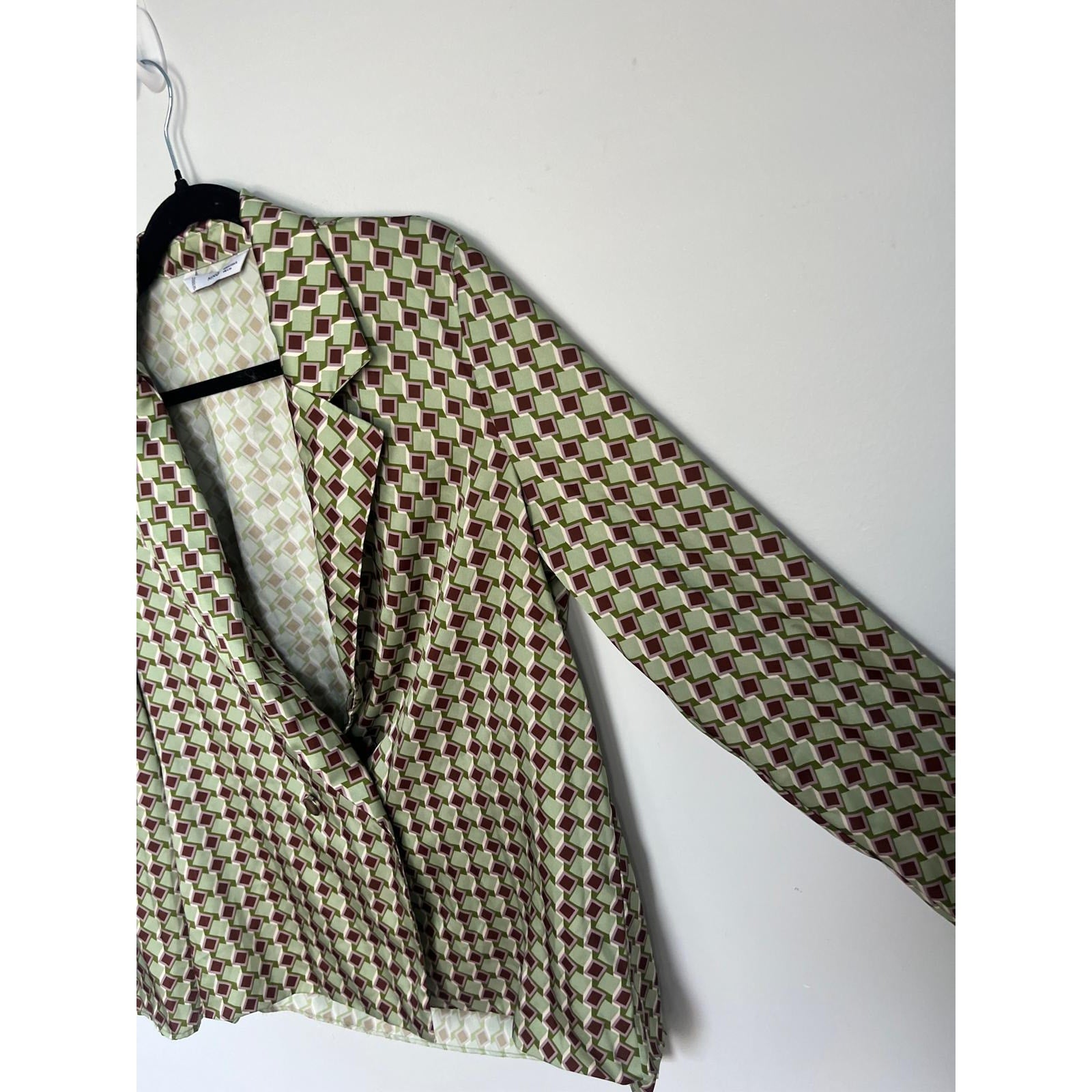 MNG Geometric Blazer Women M Green Brown Satin Diamond Print Lightweight Retro