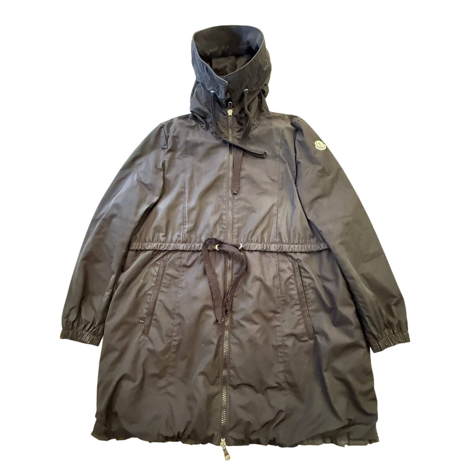Moncler Size 3 Hooded Full Zip Jacket Black Rain Coat
