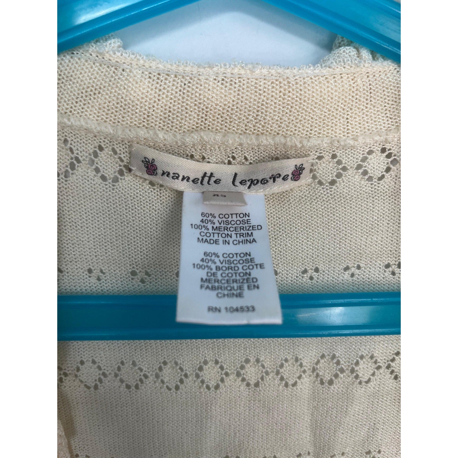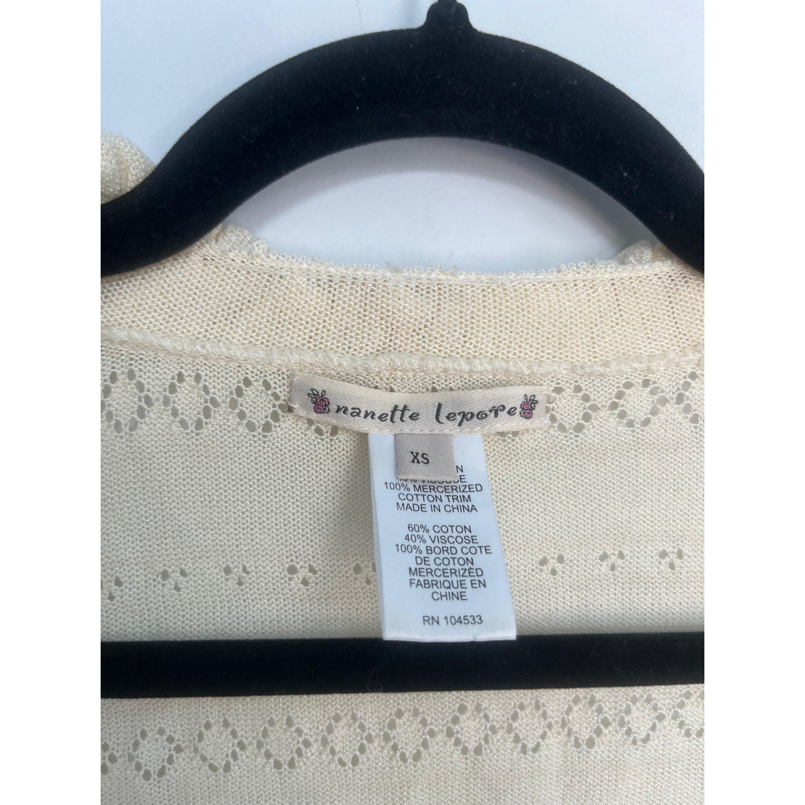 Nanette Lepore Ruffle Knit Shrug Cardigan Women XS Cream Eyelet Cropped Boho