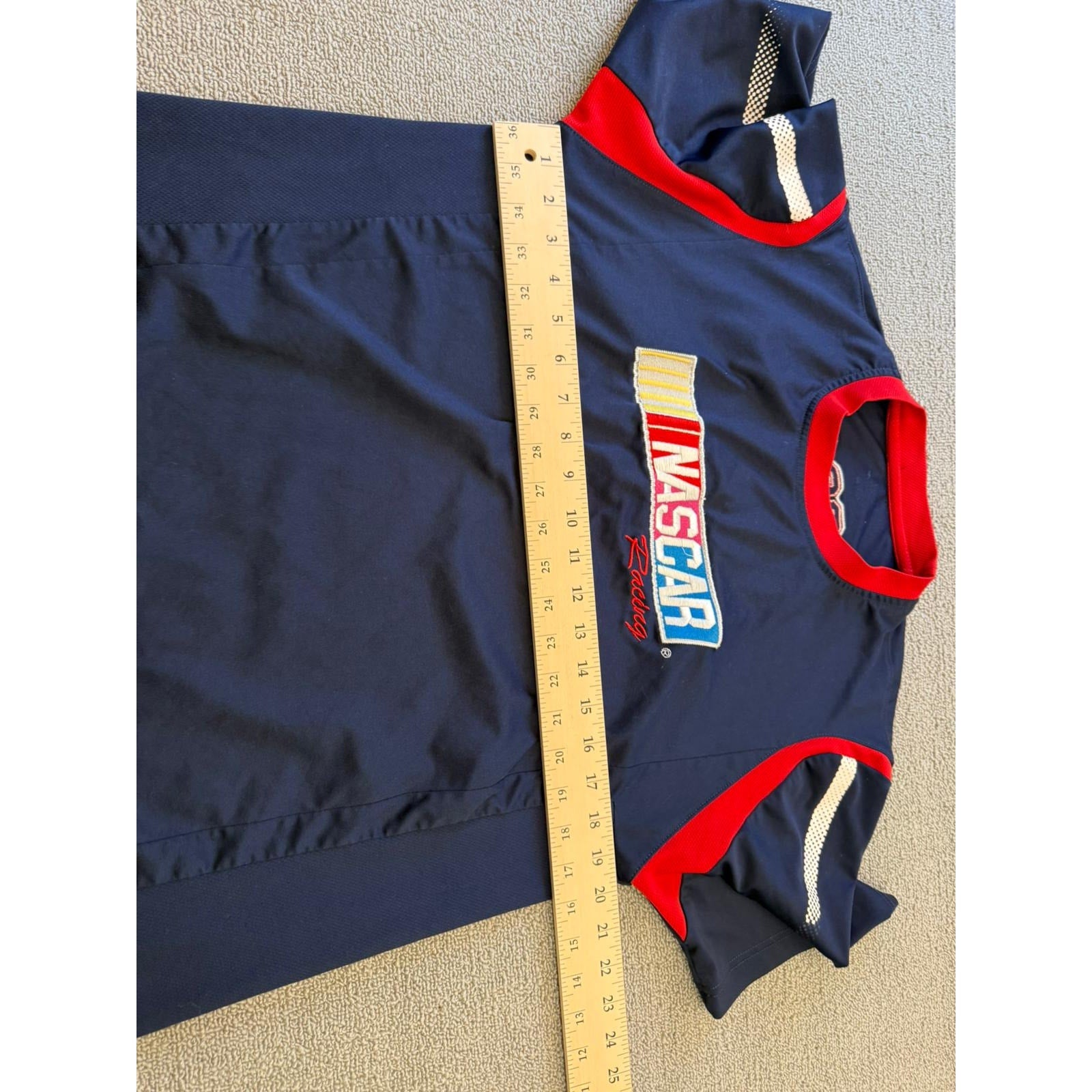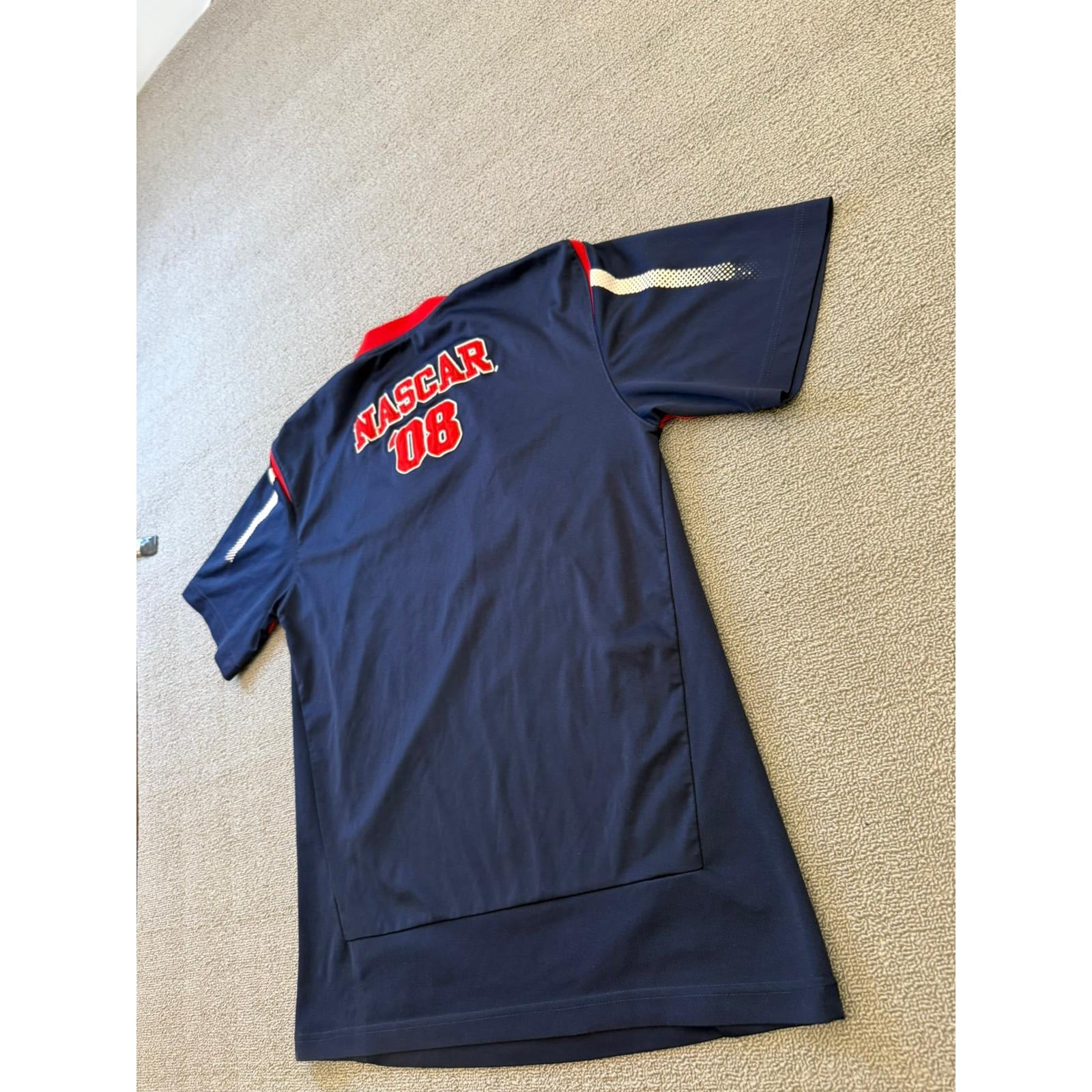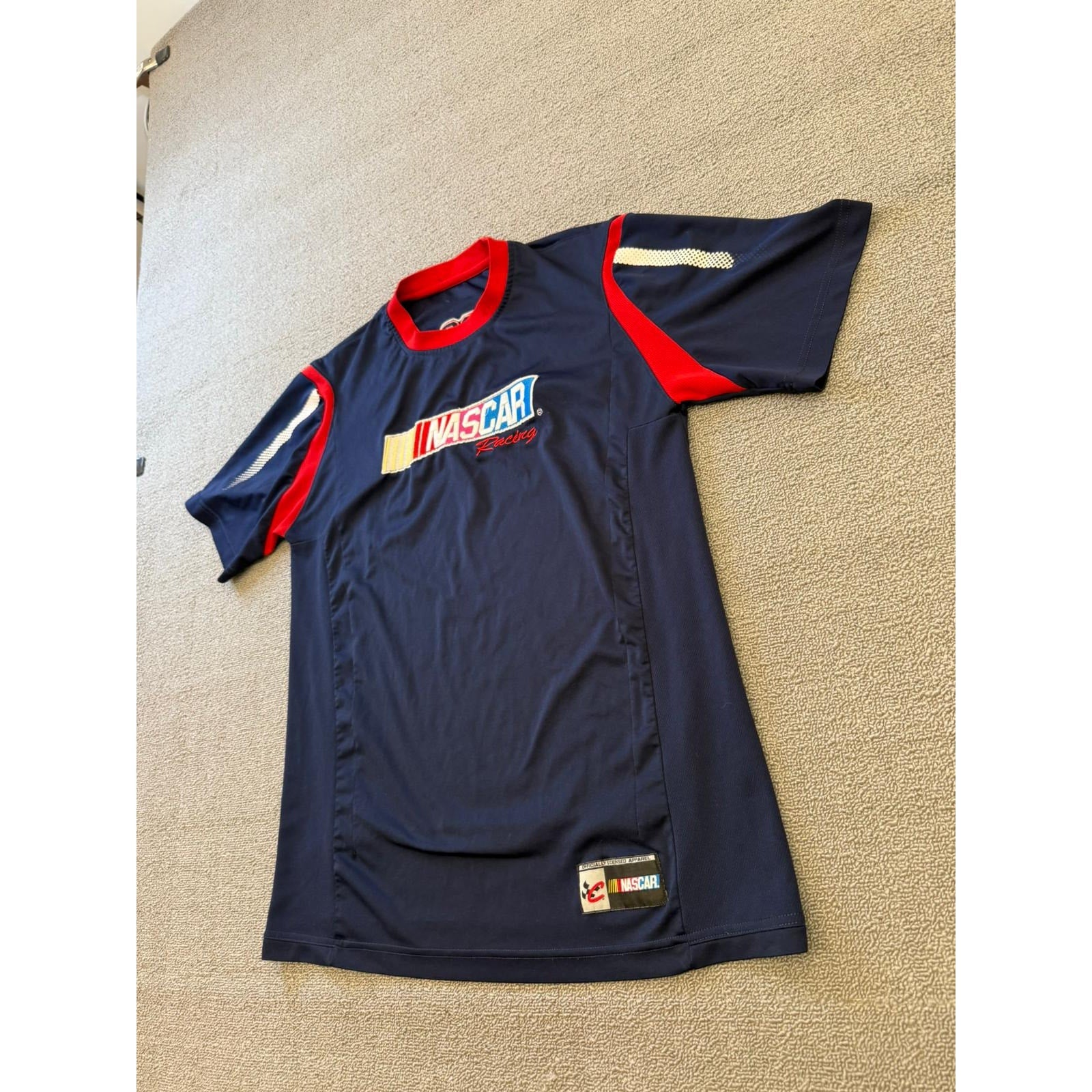Officially licensed NASCAR Racing short sleeve shirt in navy blue with red accents and embroidered logo. Features a breathable performance fabric ideal for casual wear or sporting events.