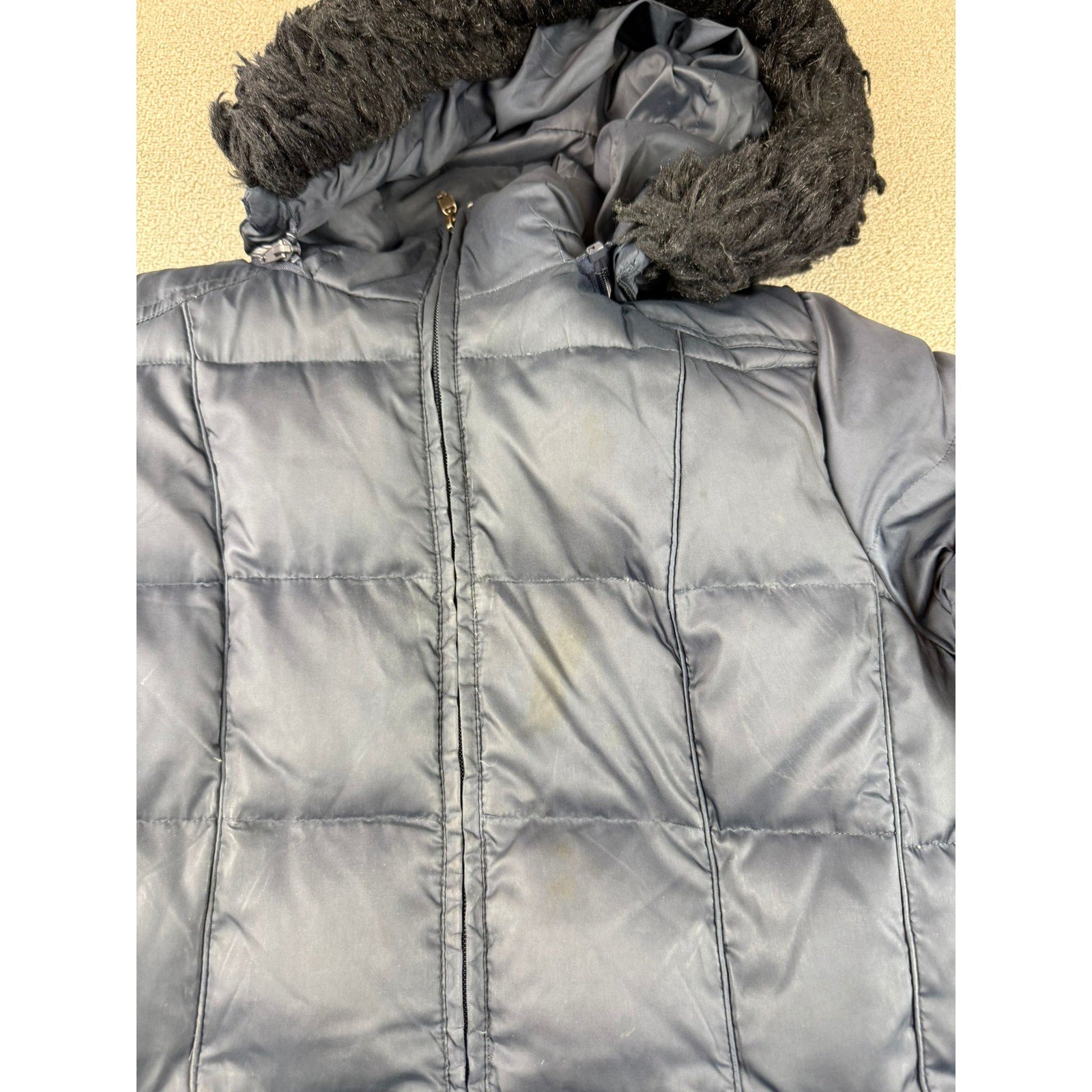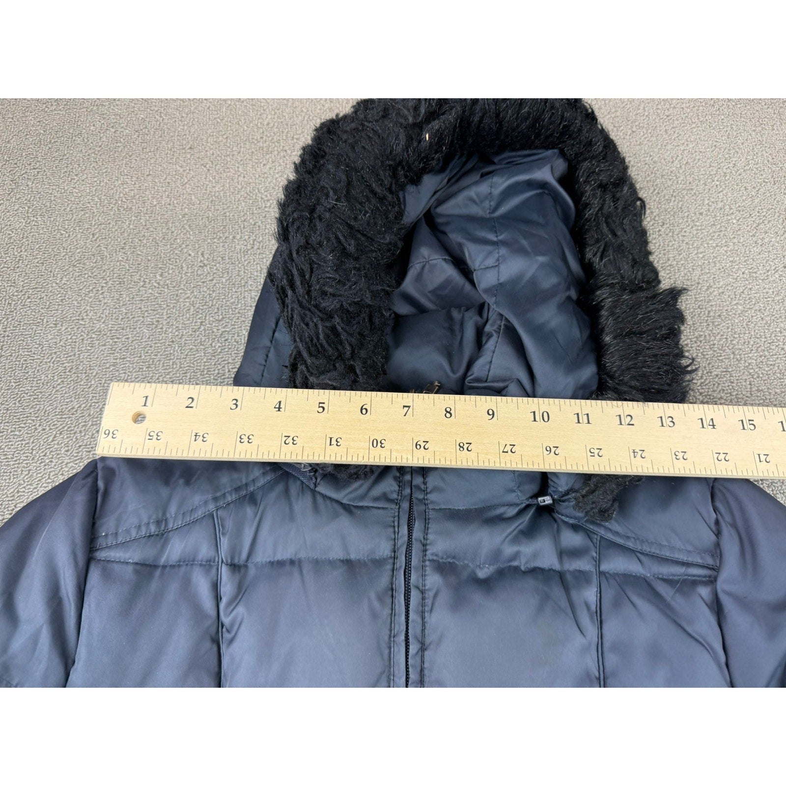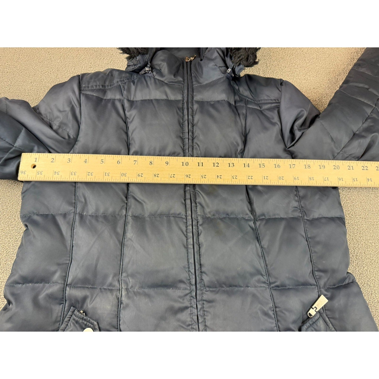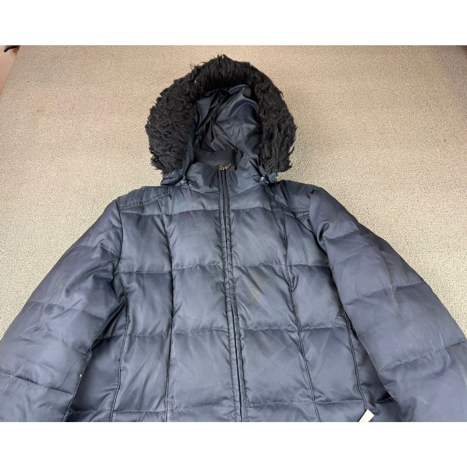 Nautica Women's Medium Navy Blue Hooded Fur Trim Puffer Coat