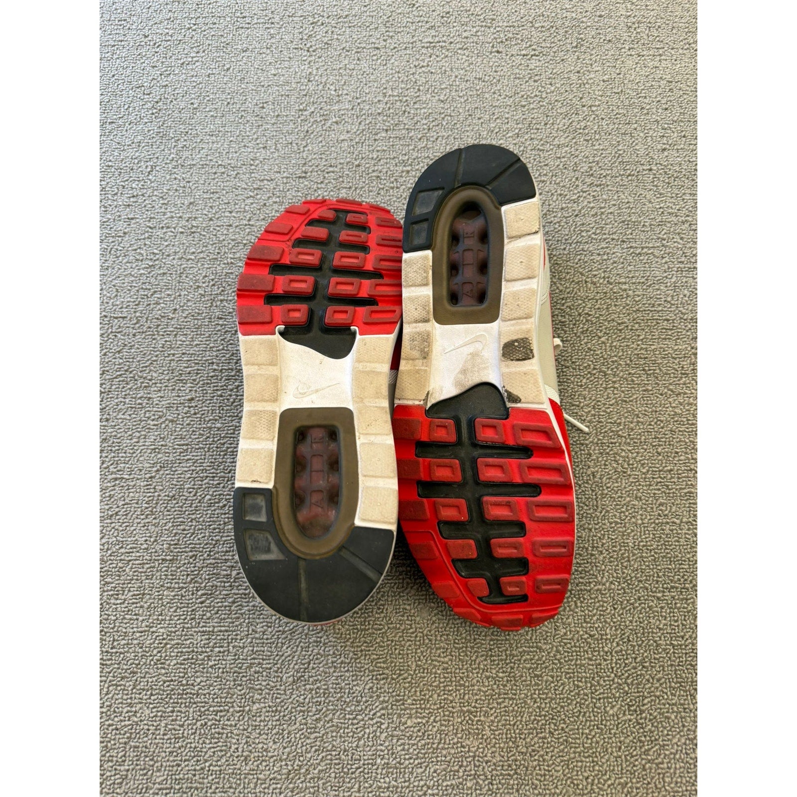 A clean, retro-styled pair of Nike Air Max 90 sneakers in crisp white mesh with striking red overlays and “3.26” branded tongues—a nod to Air Max Day, celebrating the March 26, 1987 release of the original Air Max 1. Classic Air Max cushioning, lace-up design, and visible Air unit offer both comfort and heritage styling. Men’s US 7.5 / Women’s US 9, gently worn with light signs of use, especially on soles and red accents.